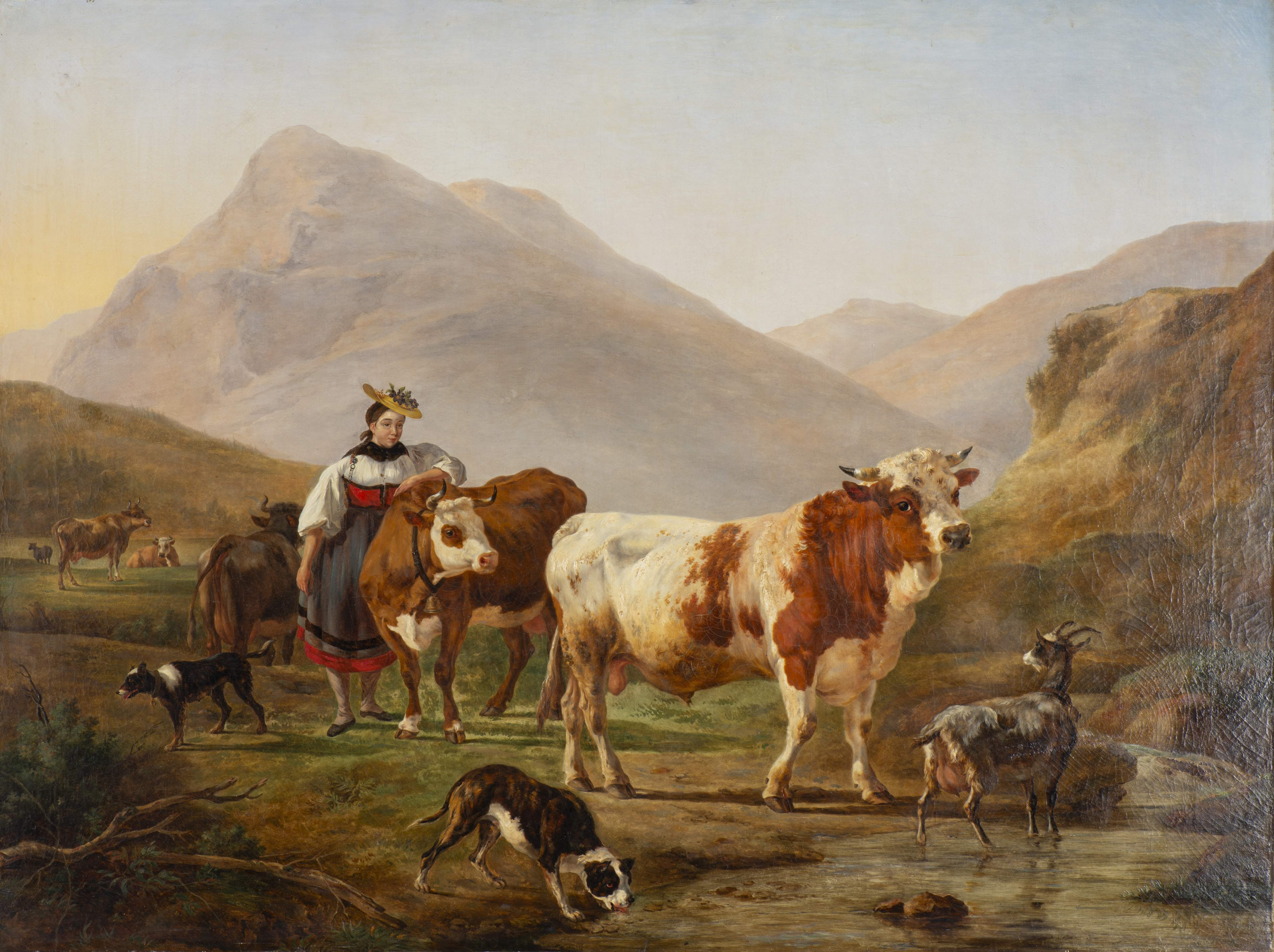 Henri DELATTRE (1801-1876), 'Vaches au pré', huile