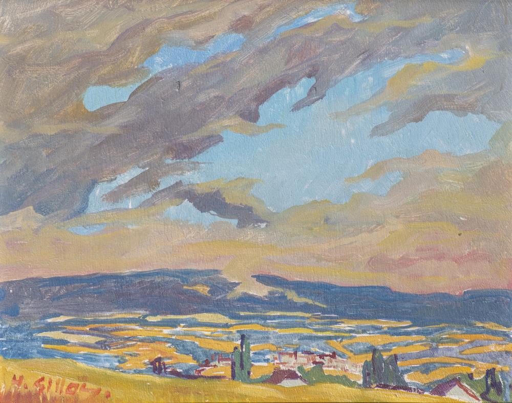 Henri Vincent Gillard (1902-1980) "Paysage de campagne", huile sur isorel, sbg en rouge.