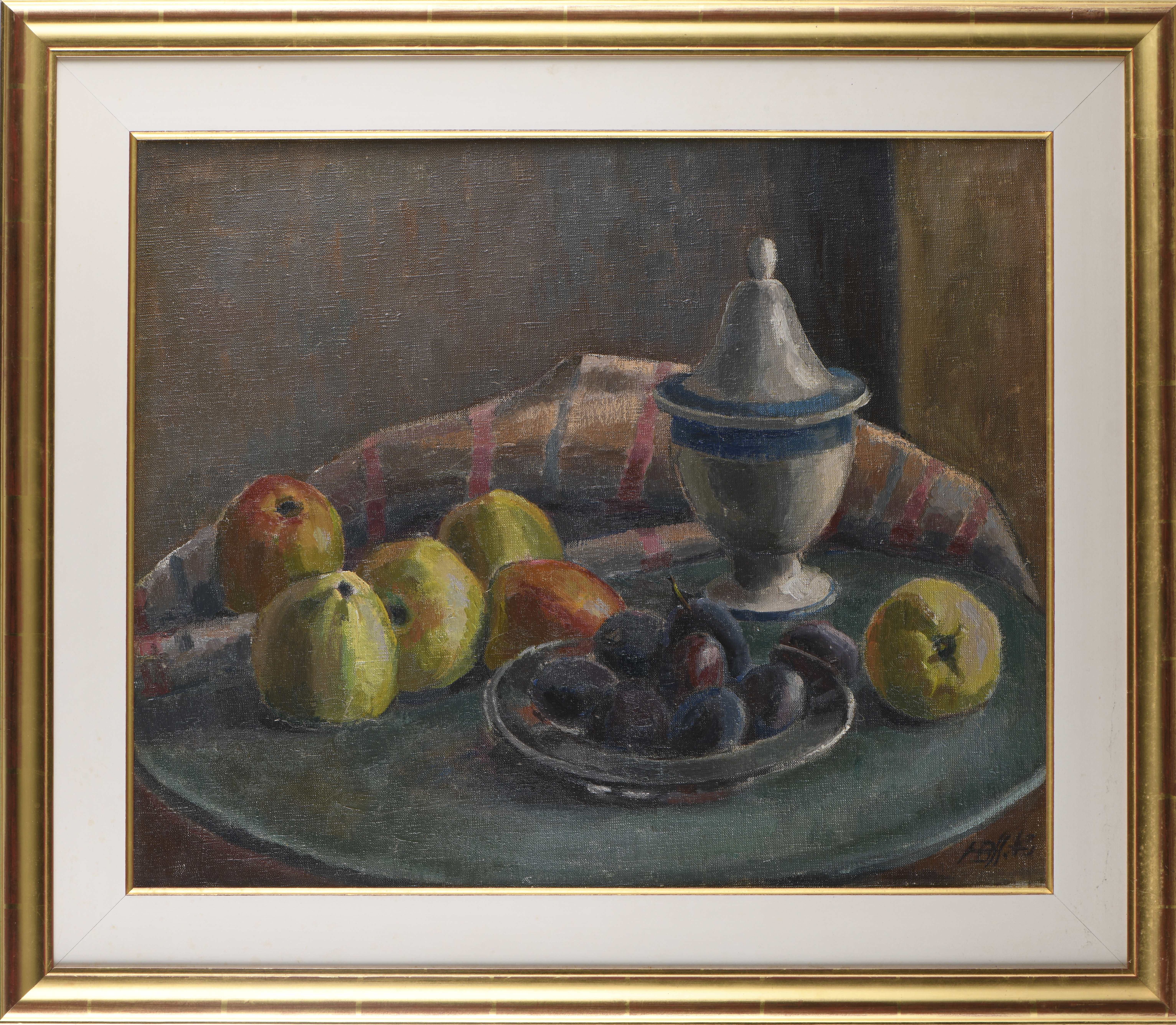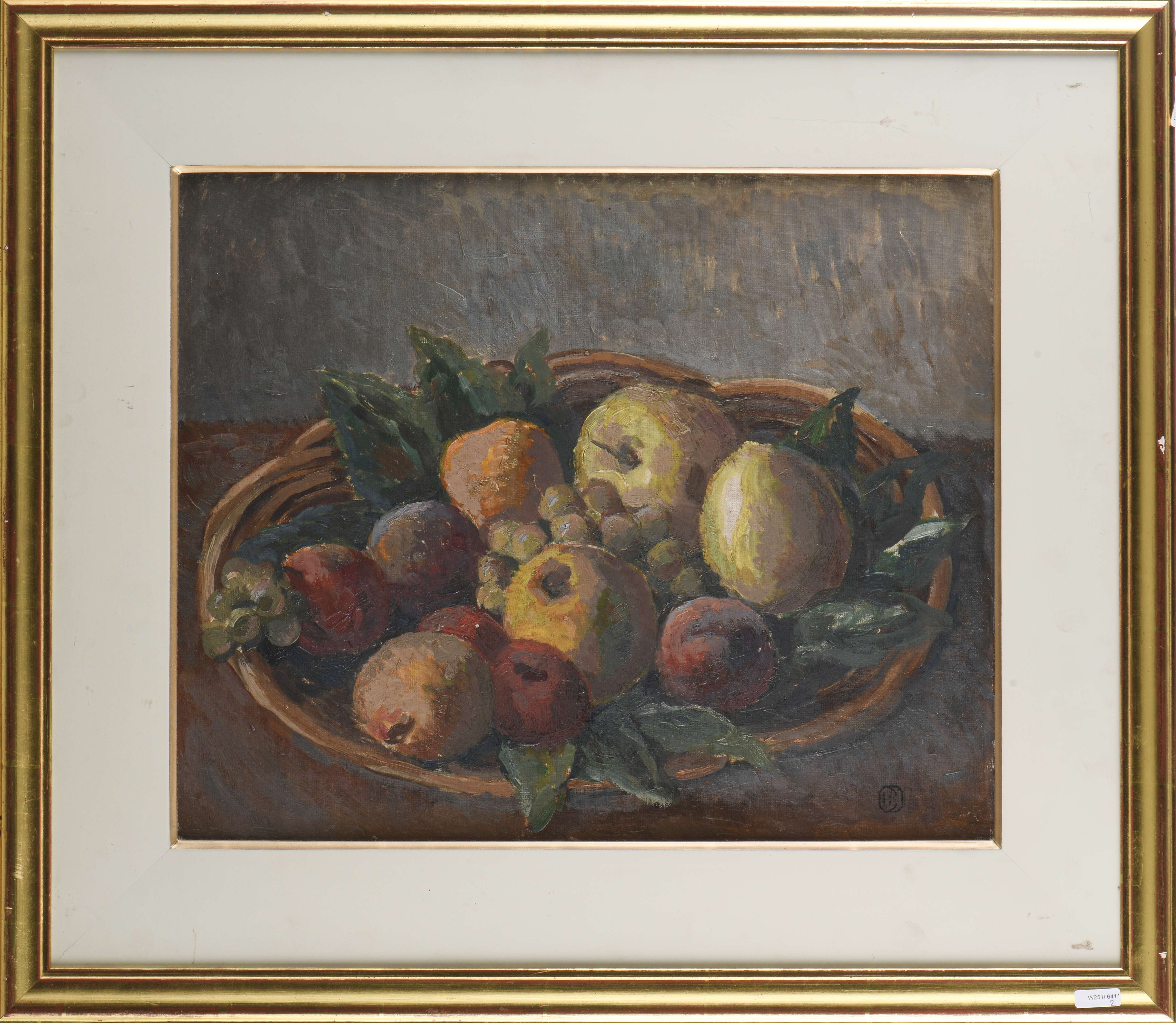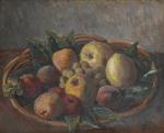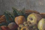 - "Corbeille de pommes), 1945, mon. au tampon en bas à droite et au dos.