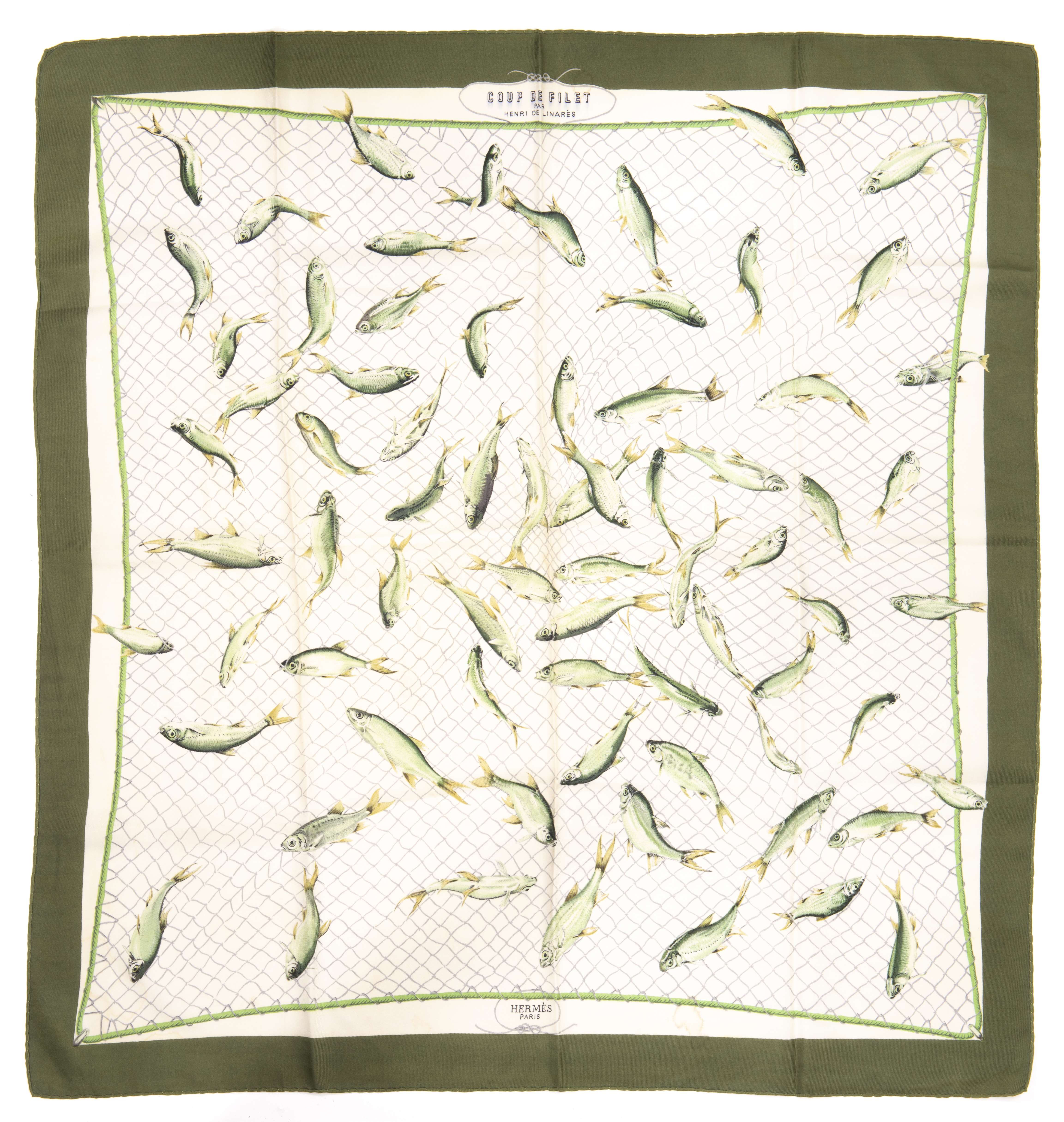 HERMES Paris, carré en soie "Coup de filet" par Henri de Linarès, permière édition datant de 1956.