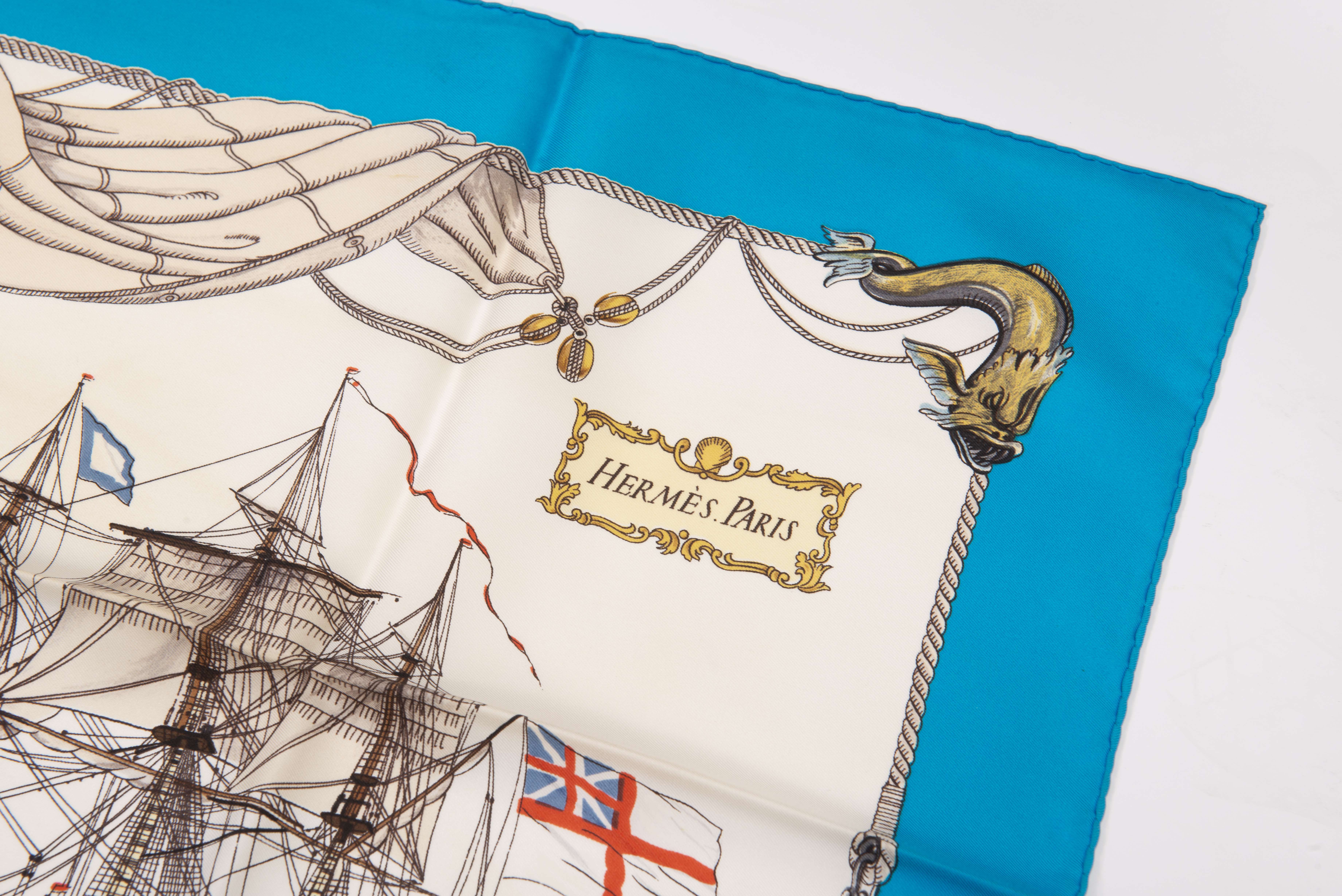 Hermès Paris, carré en soie "Vaisseaux et frégates" par Philippe Ledoux, première édition datant de 1964.