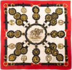 Hermès Paris, carré en twill de soie "Cuivreries" par Françoise de la Perrière à bordure rouge