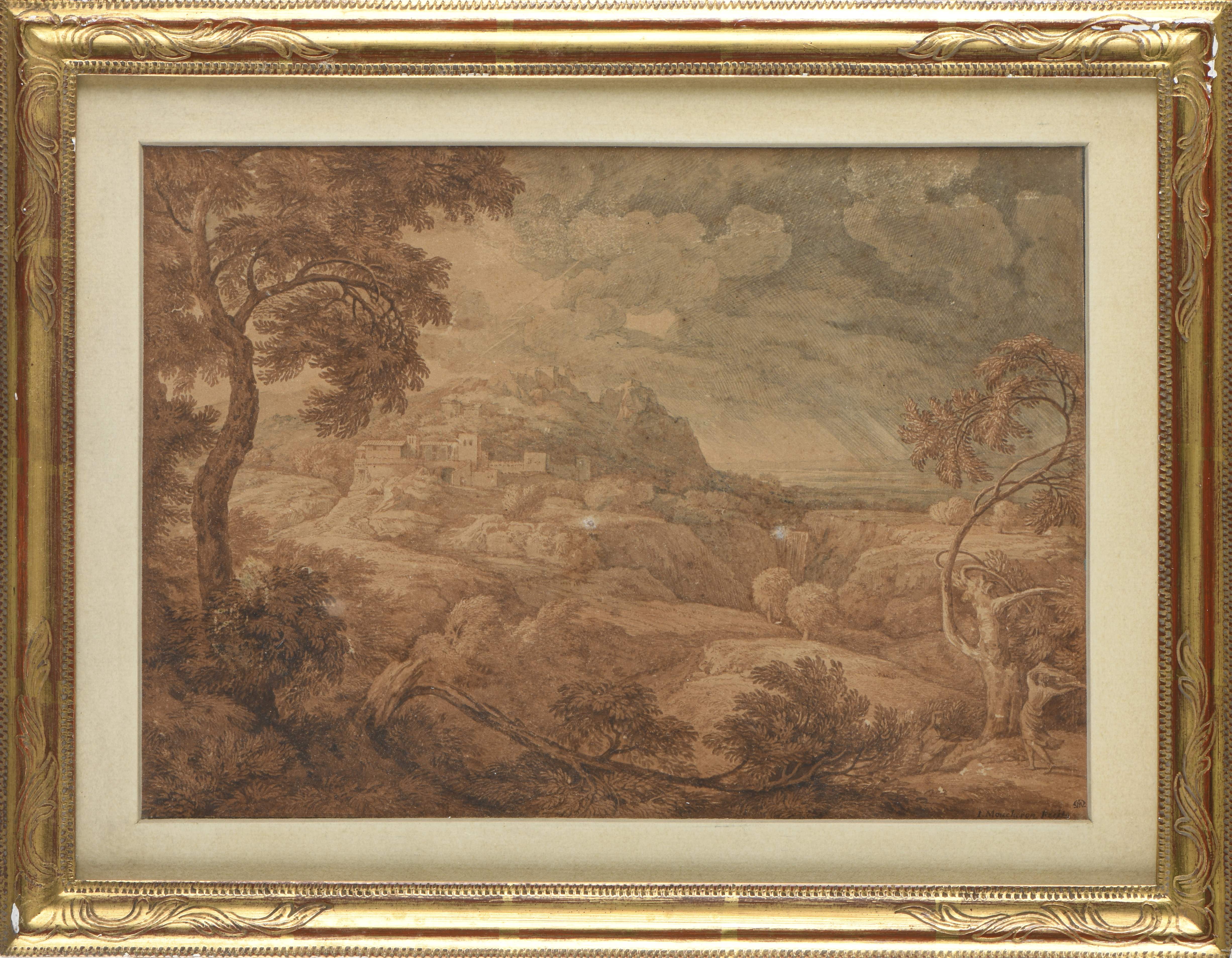 Issac De MOUCHERON (1667 - 1744), "Orage", encre et lavis sur papier, signé I. Moucheron fecit avec cachet en bas à droite