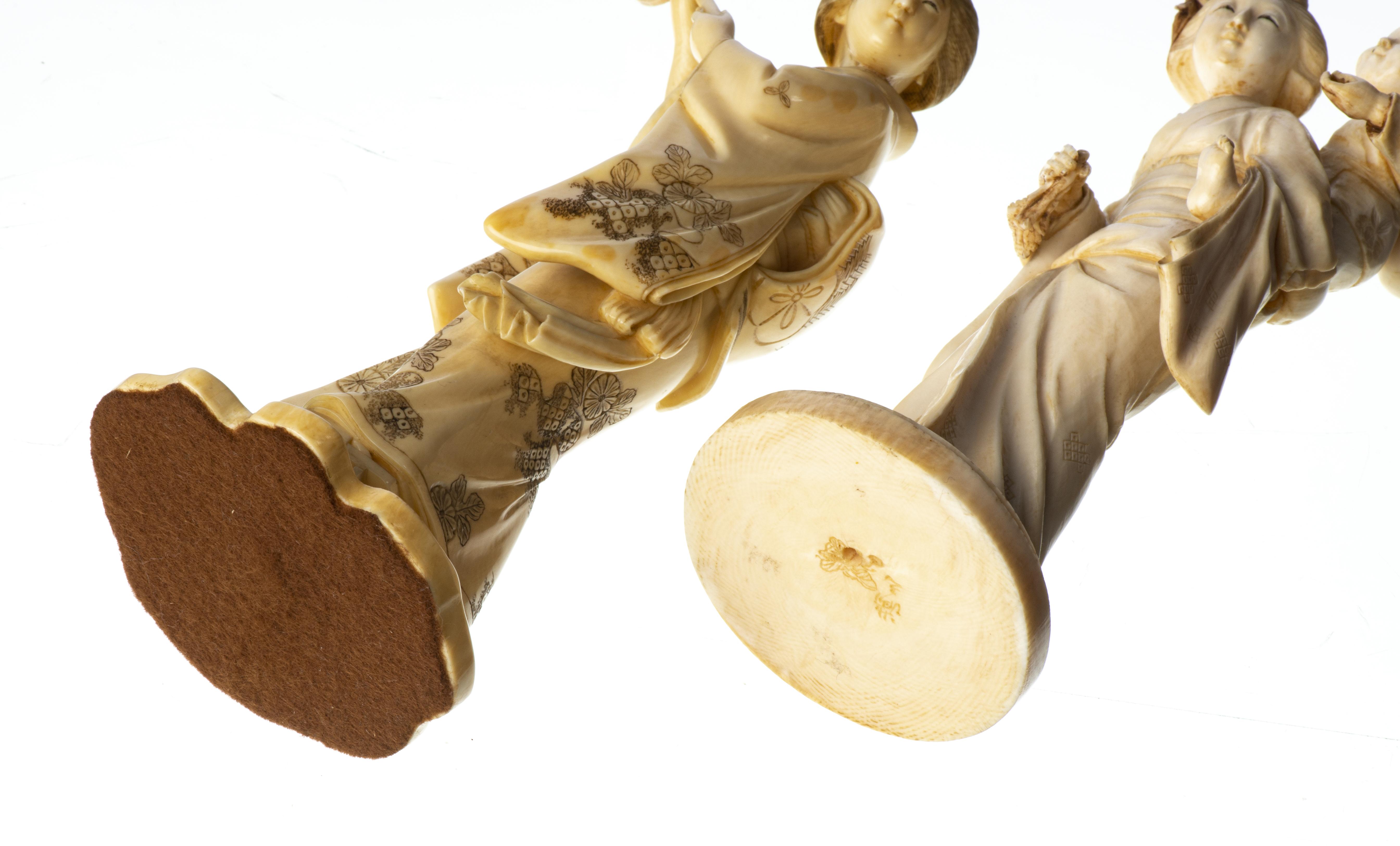 JAPON, deux okimomo en ivoire représentant chacun une jeune femme