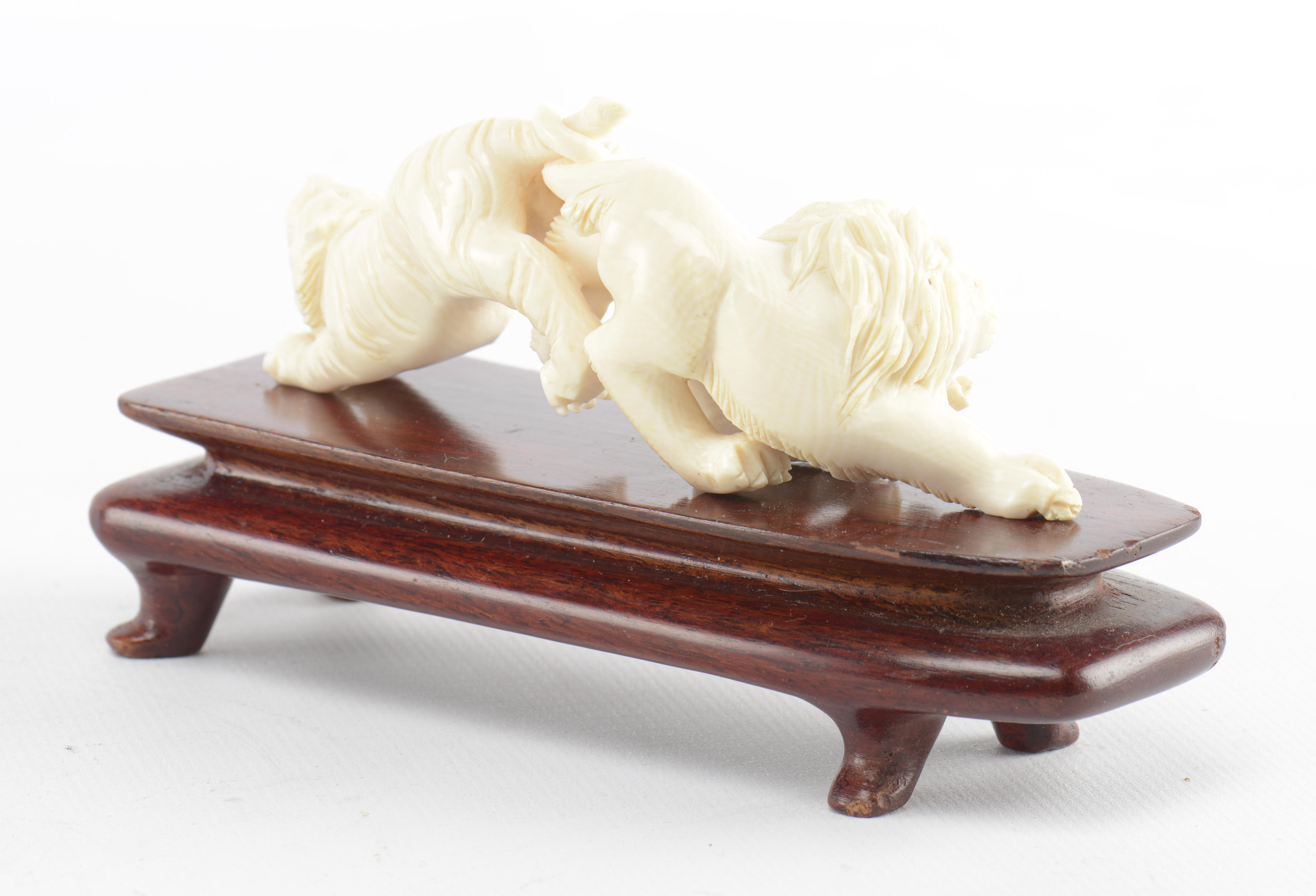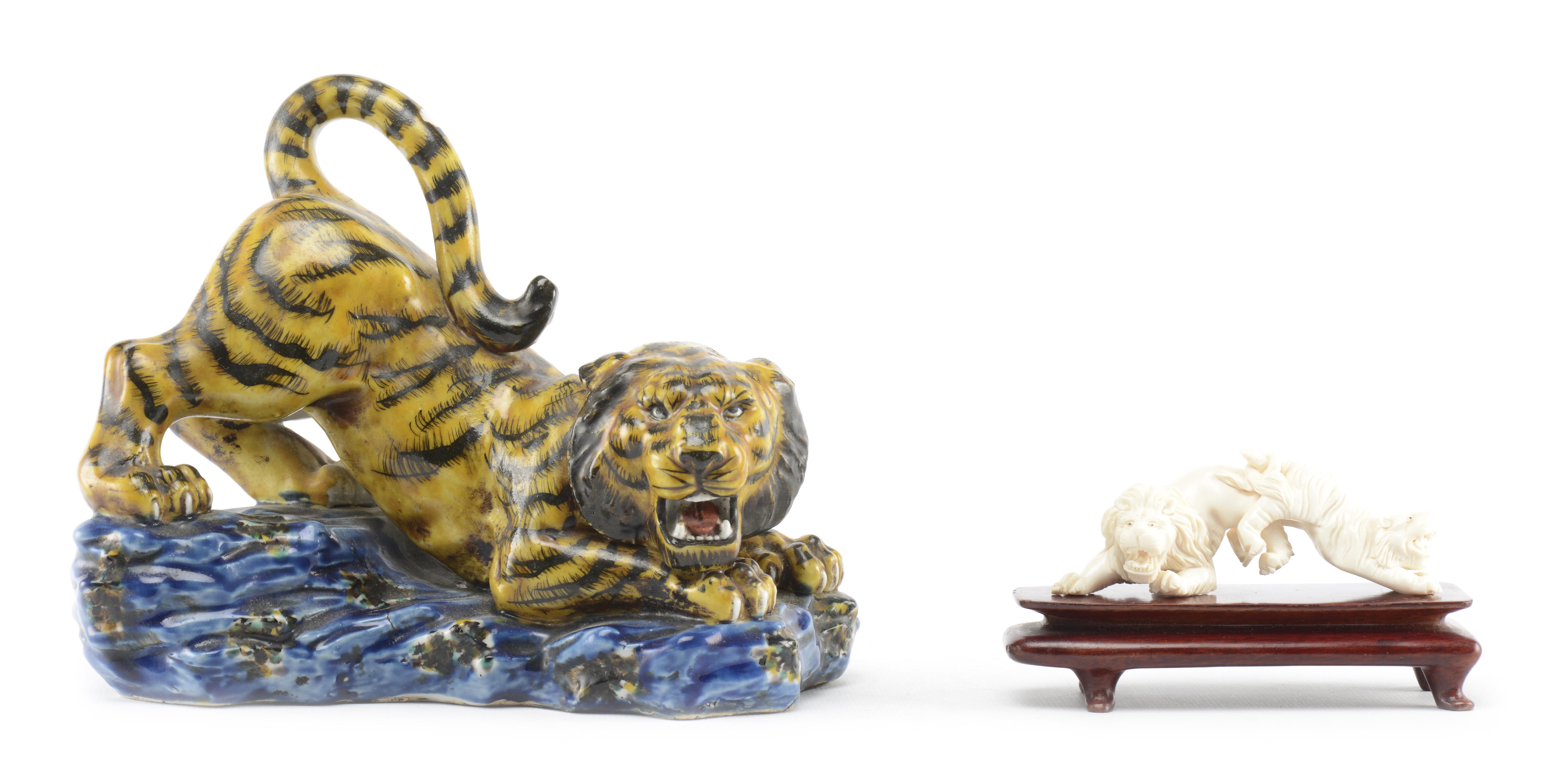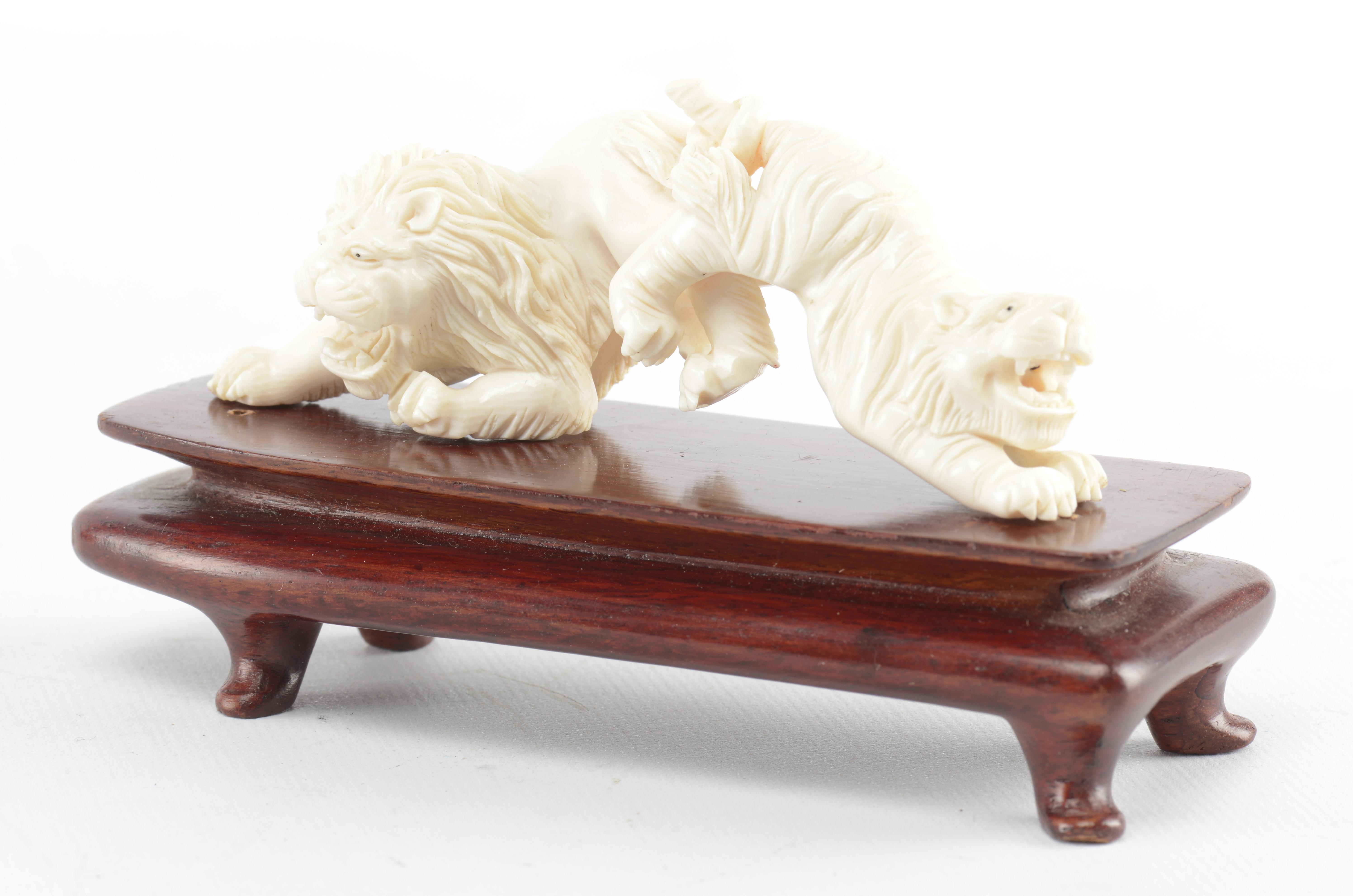 On y joint une sculpture en ivoire d'un lion et d'un tigre la queue nouée.