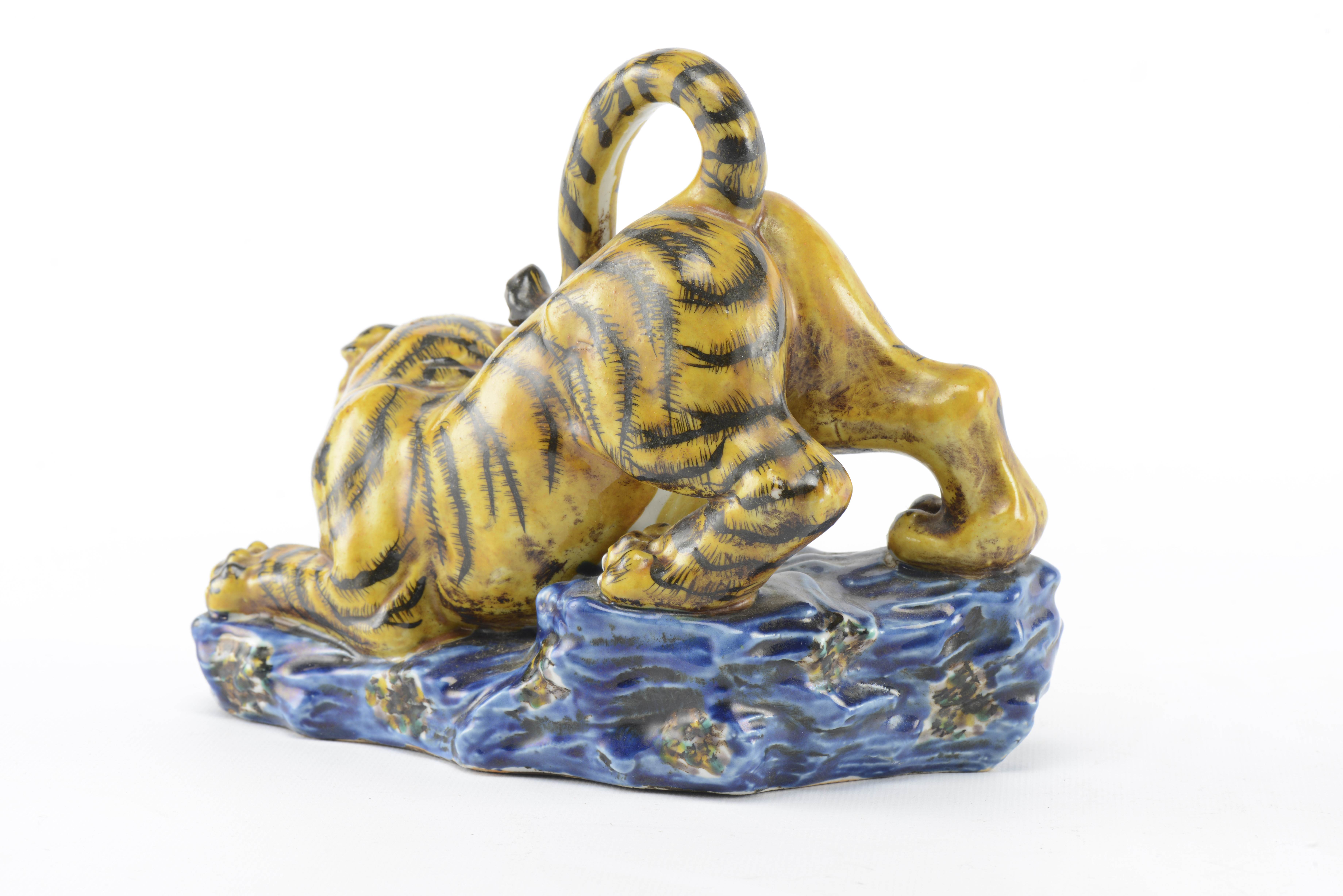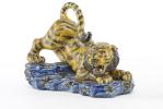 Tigre en porcelaine du Japon Hirado, marchant dans un cours d'eau. Japon Epoque Meiji