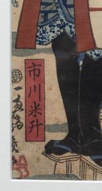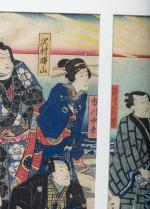 JAPON, Estampe japonaise en triptyque "Discussion dans un parc à la pointe du jour"