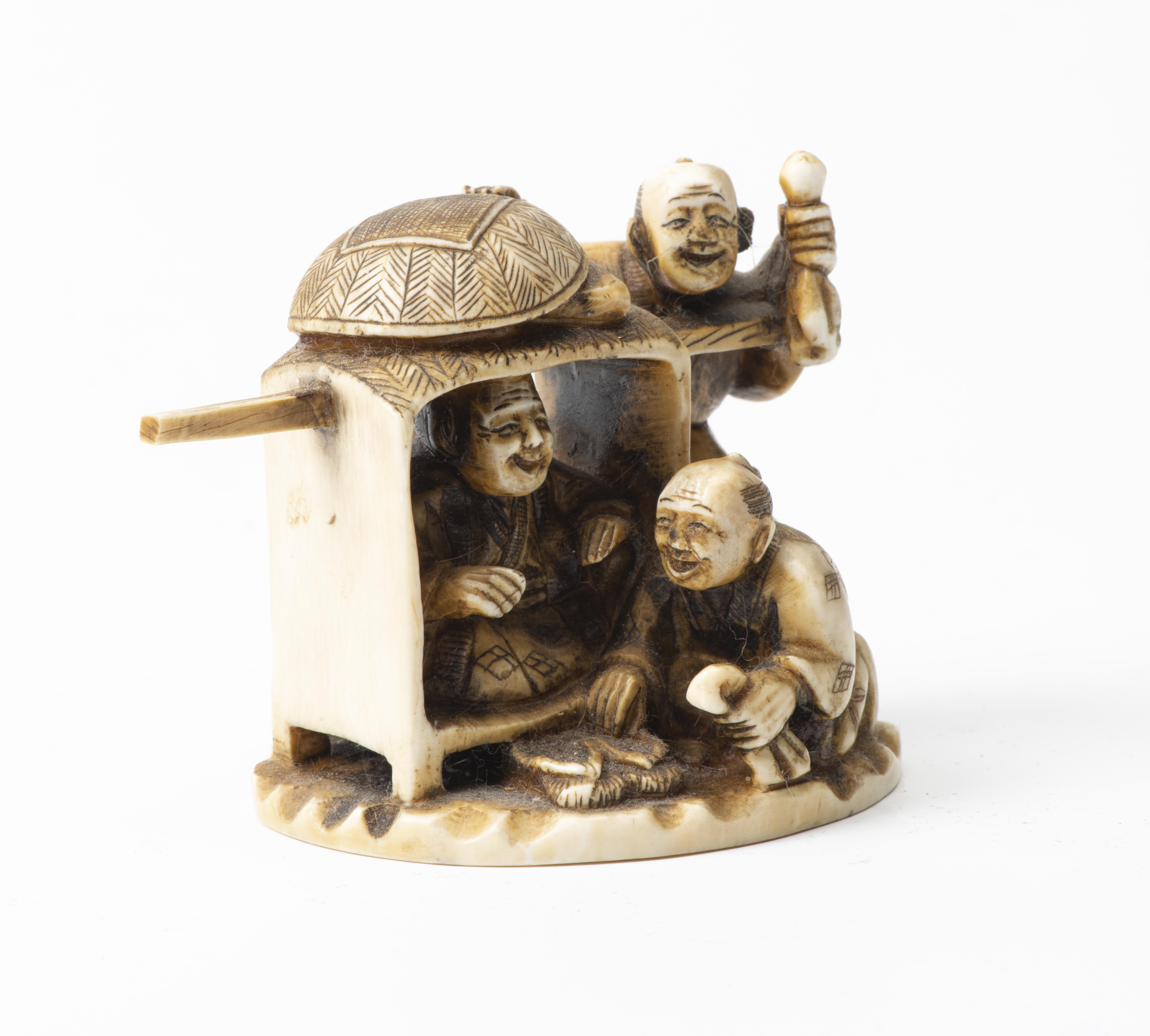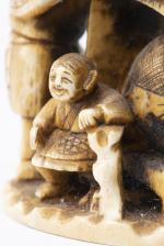 JAPON, Okimono en ivoire figurant une scène de repos, ère Meiji