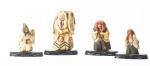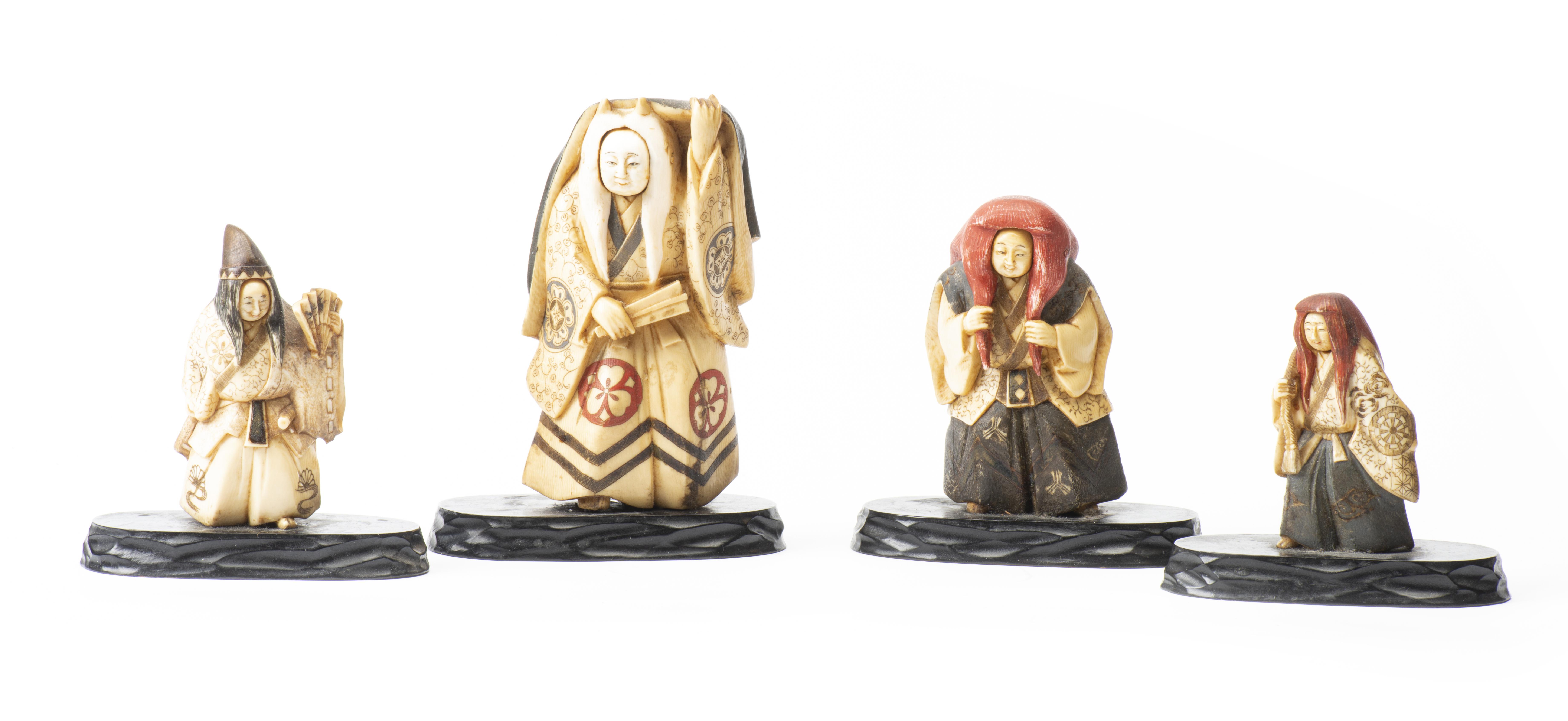 JAPON, Quatre sculptures en ivoire de femmes à tête à pivot et chevelure rouge, ère Meiji