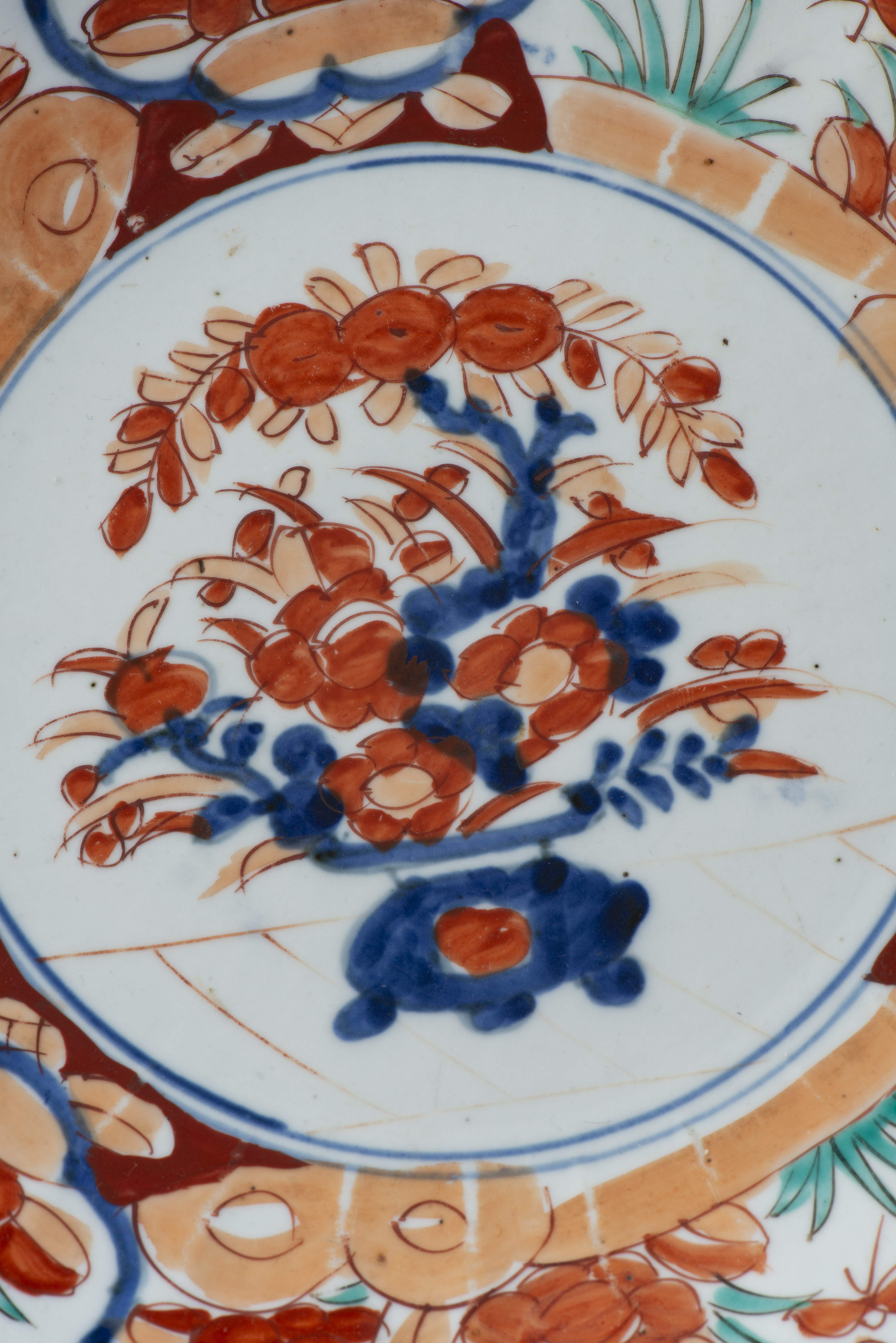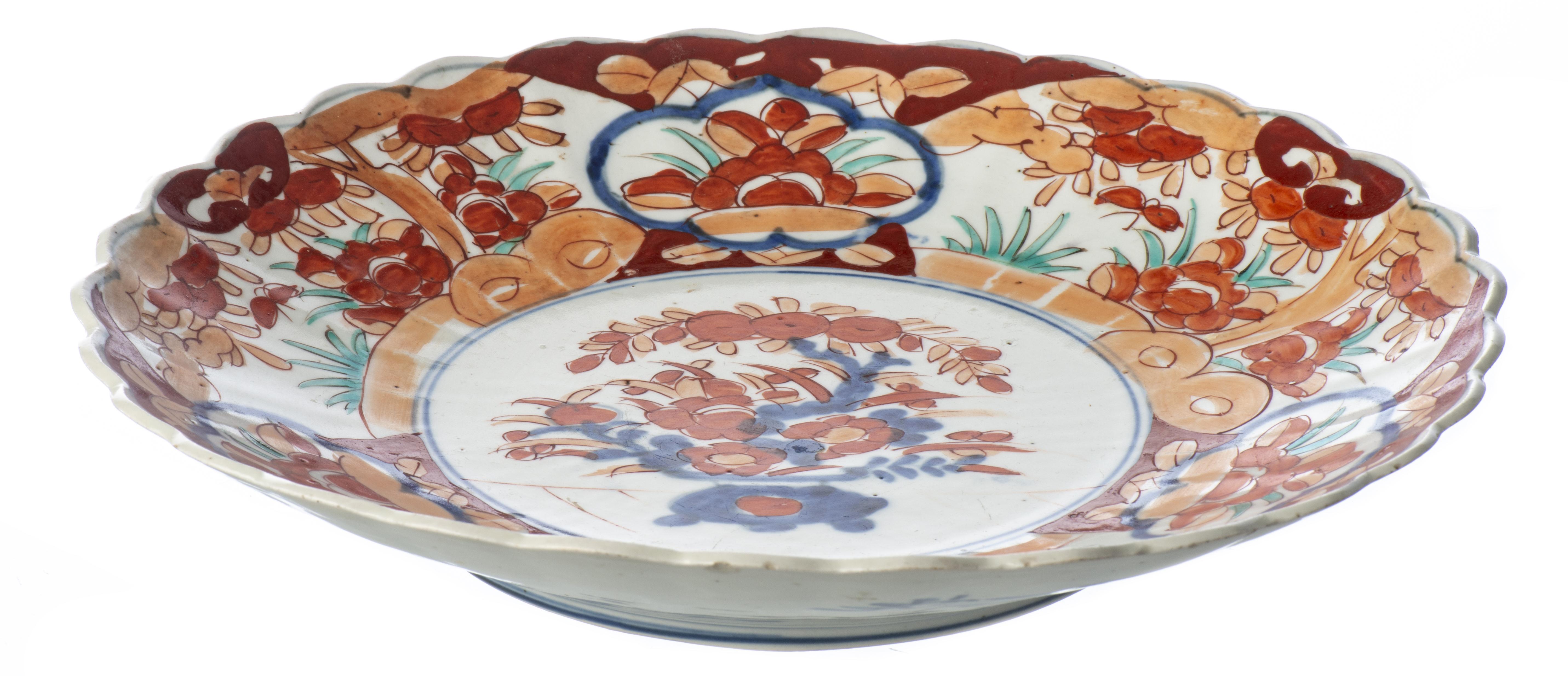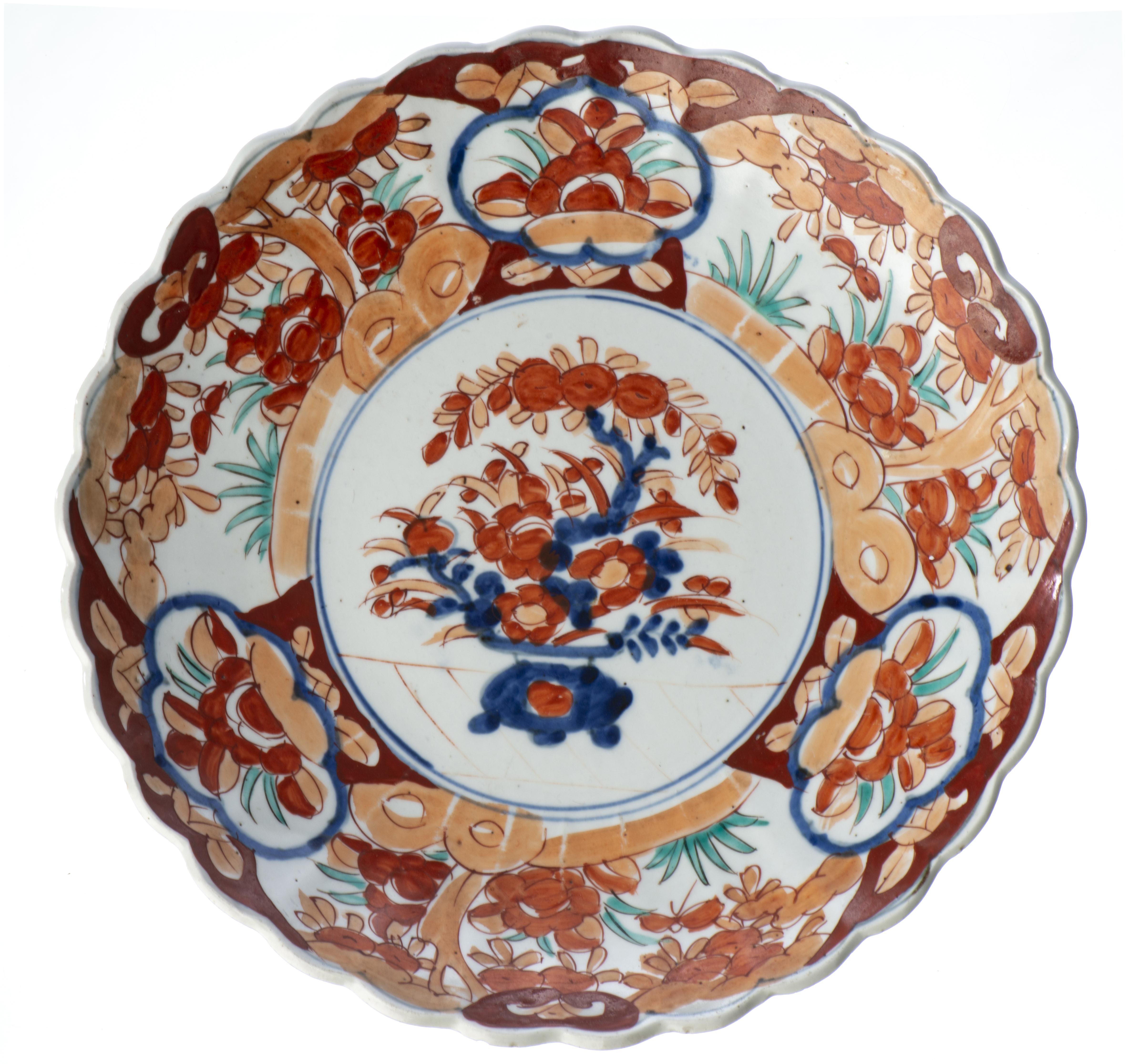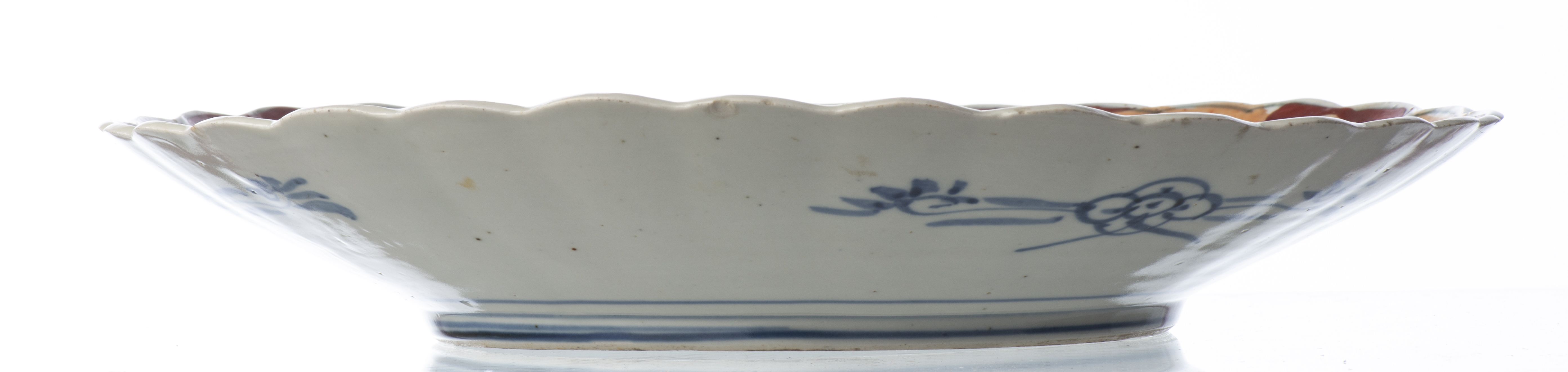 JAPON, Ère Meji, Plat en porcelaine de forme chrysanthème à décor Imari verte