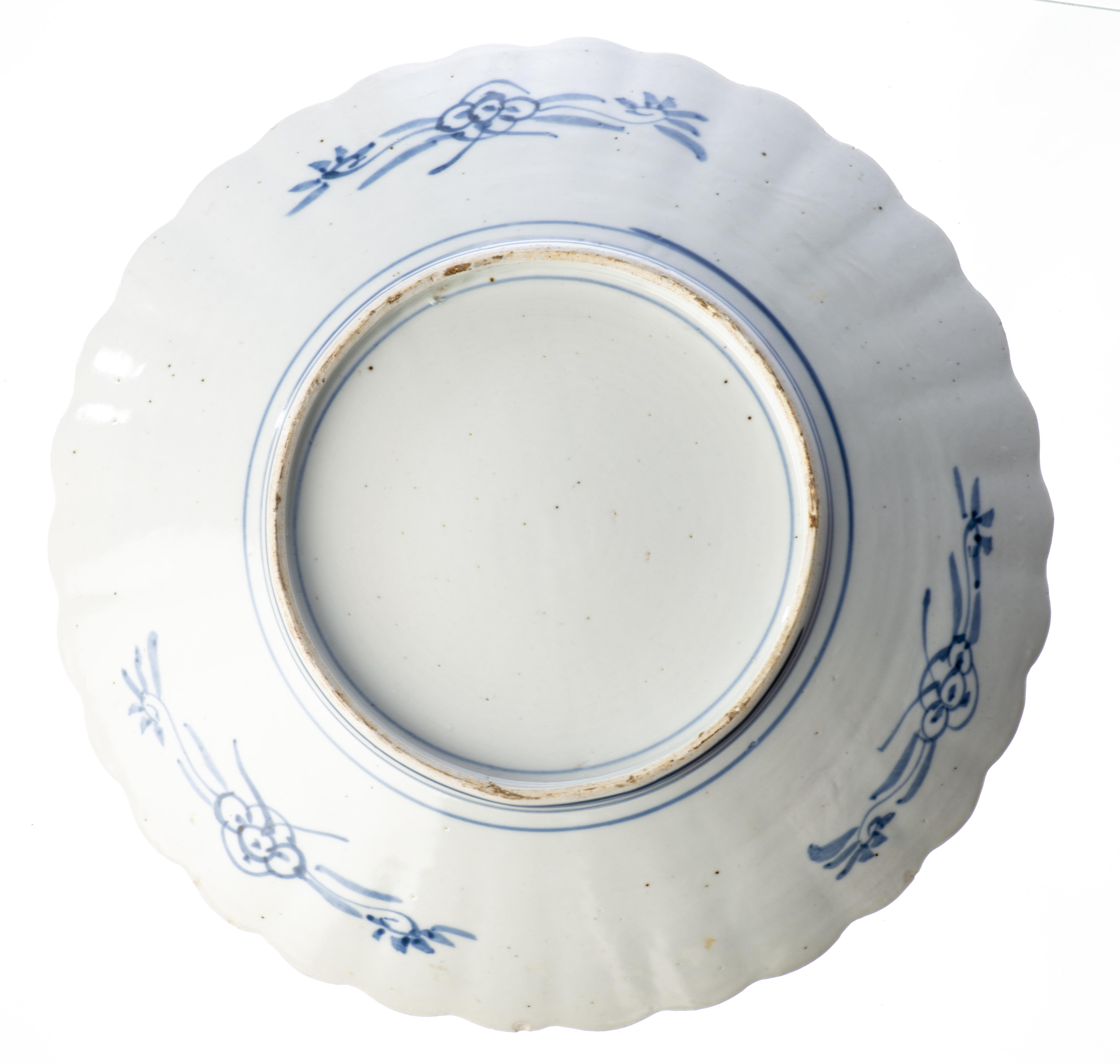 JAPON, Ère Meji, Plat en porcelaine de forme chrysanthème