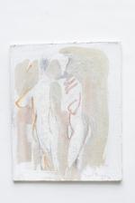 Jaques BERGER (1902-1977), "Couple", 1976, peinture à la colle sur carton, signé en bas à droite au crayon, étiquette de la galerie Paul VALLOTTON au dos.