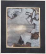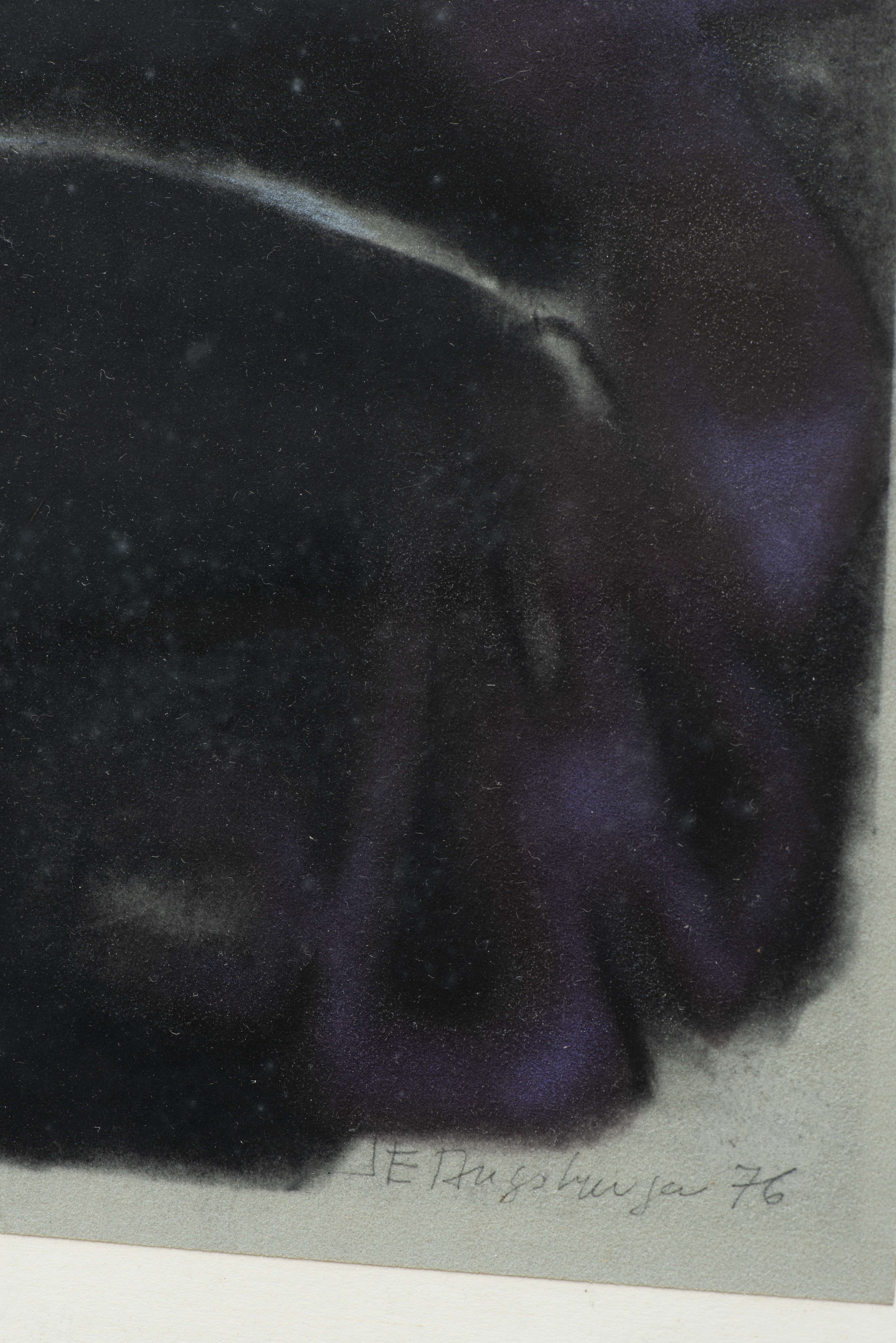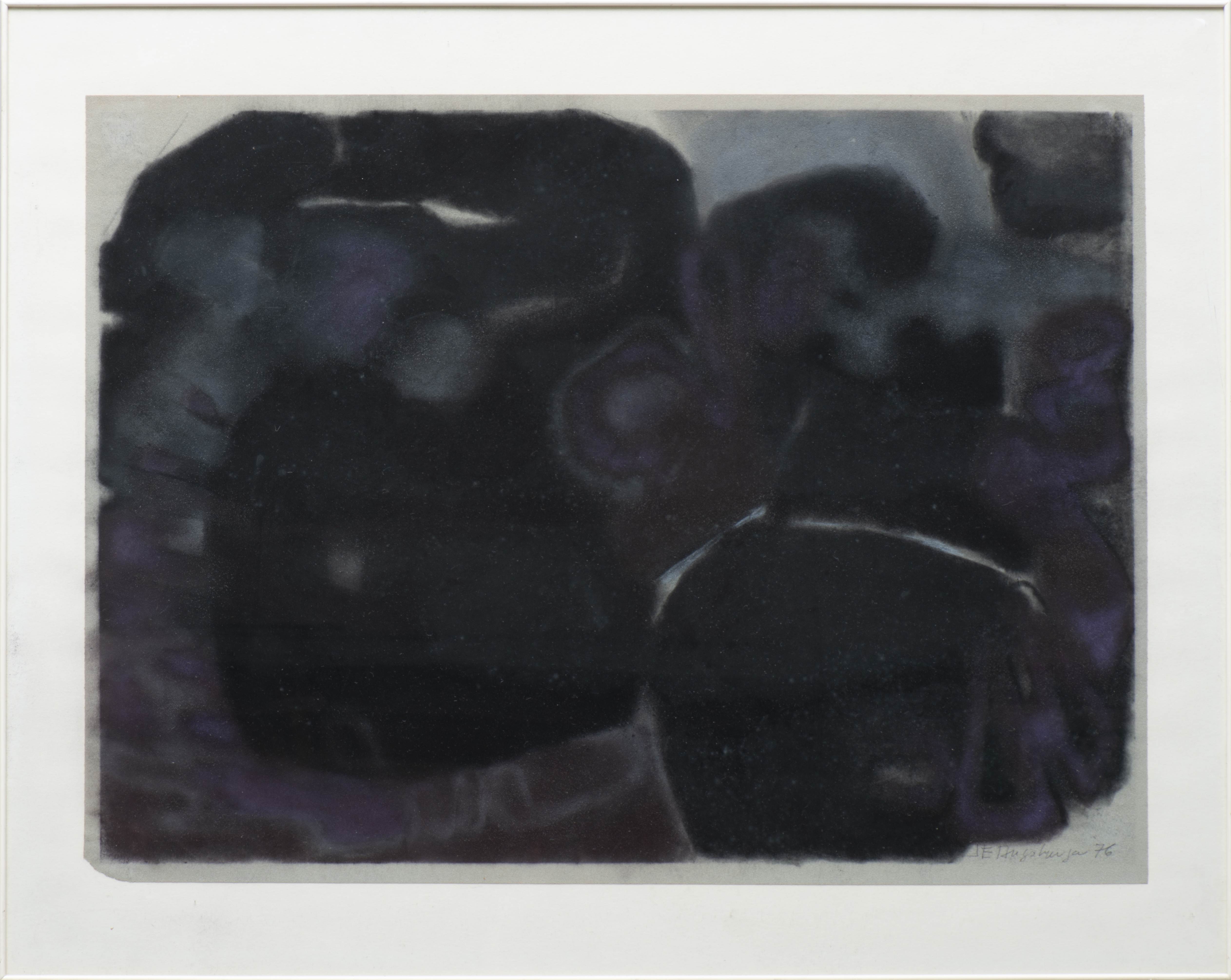 - "Composition en noir et violet". Technique mixte sur papier sbd et daté 76.