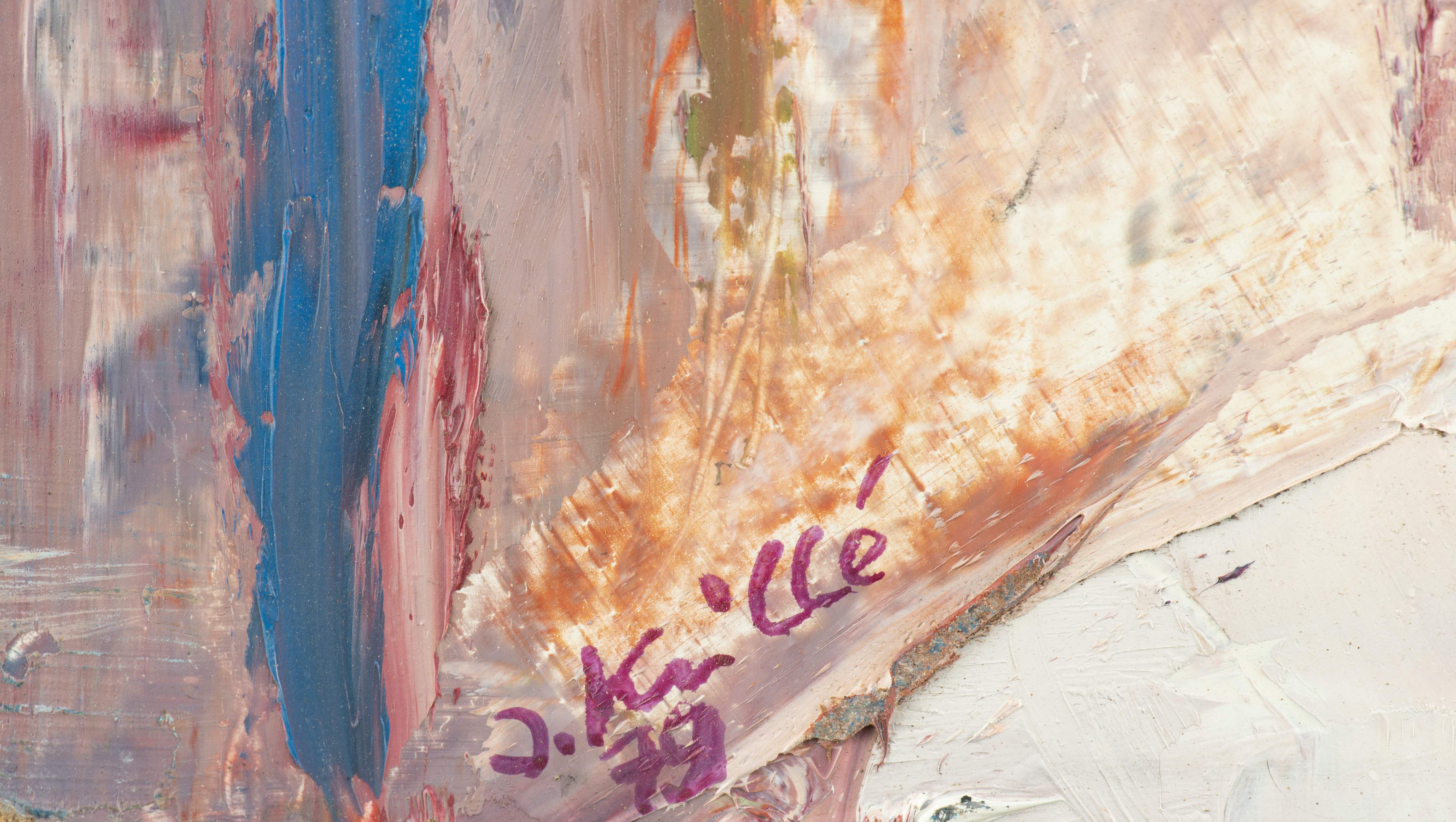 Jean KRILLÉ (1923-1991), "Composition aux fleurs", huile sur toile sur isorel, signé et daté en bas à gauche 79 et contre-signé au dos.