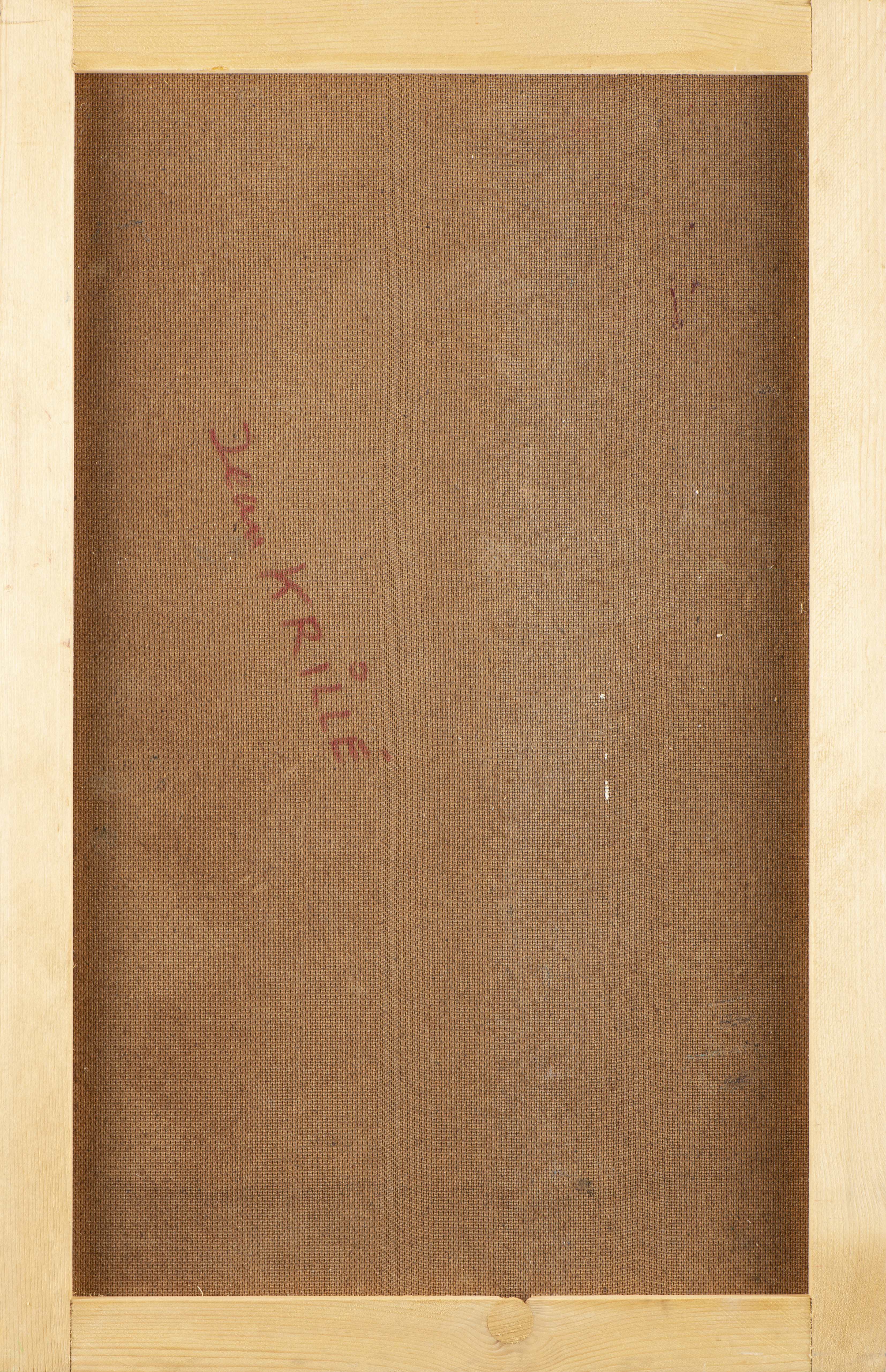 Jean KRILLÉ (1923-1991), "Composition aux fleurs rouges", huile sur isorel, signé en bas à gauche, contre-signé au dos.