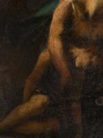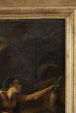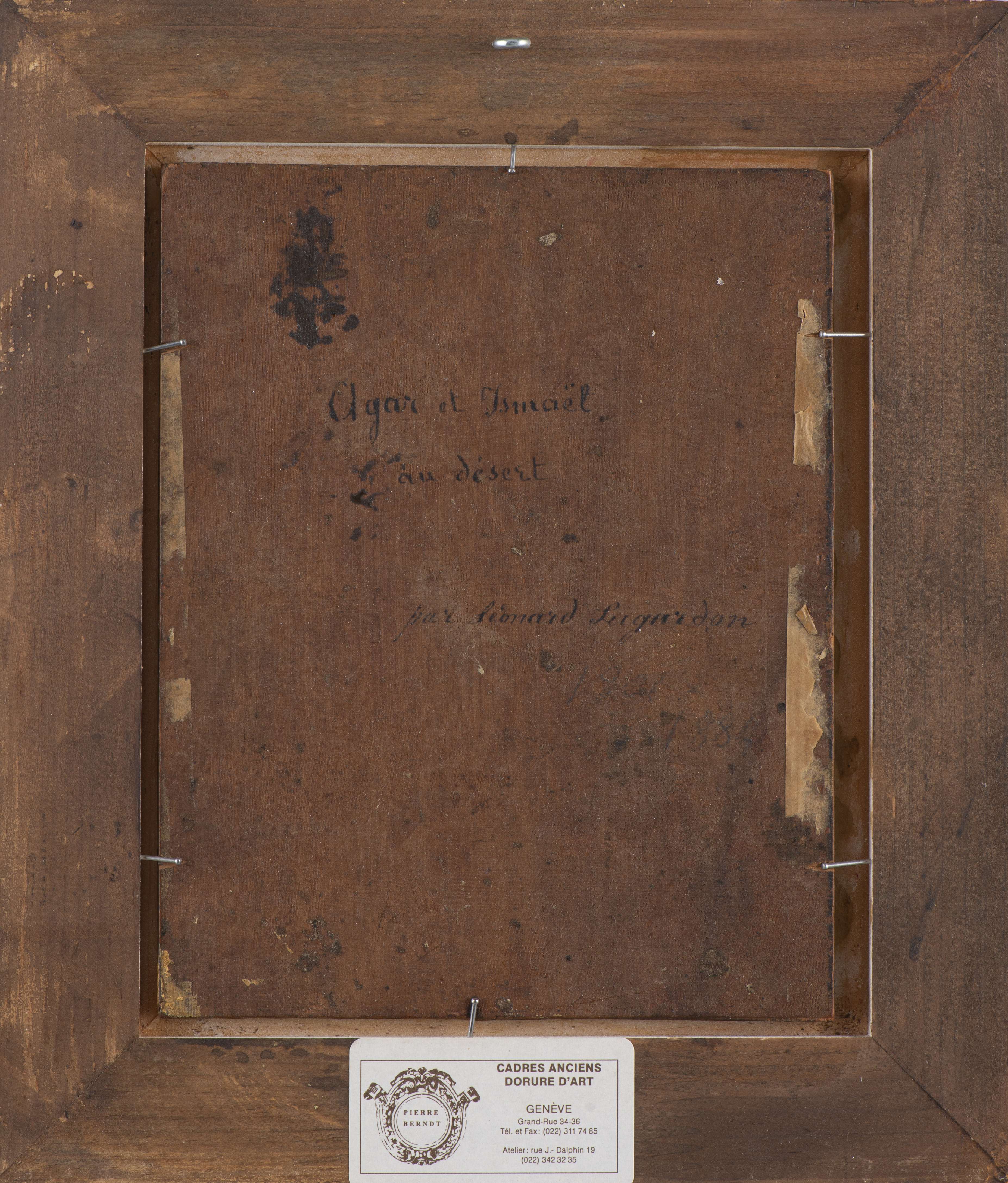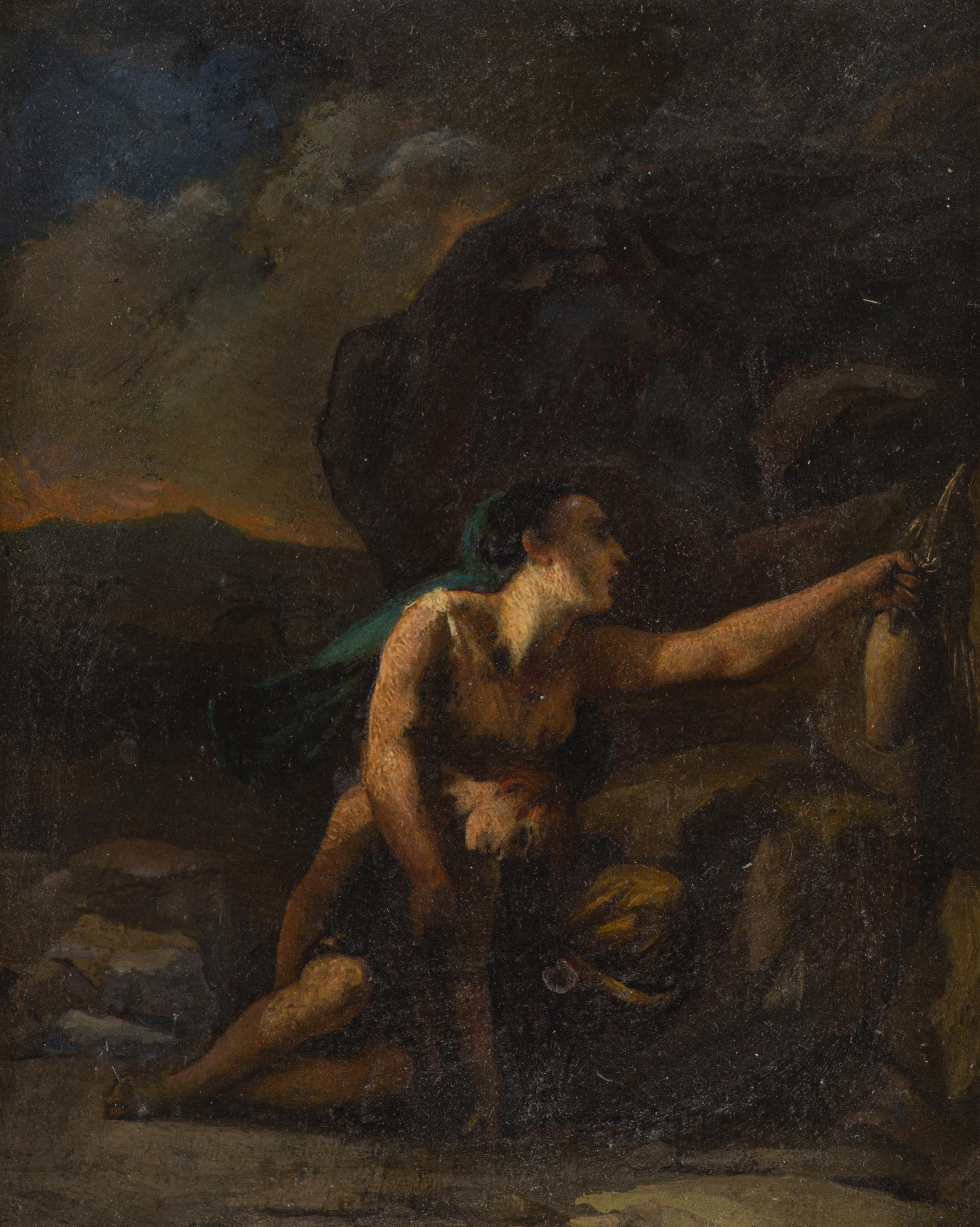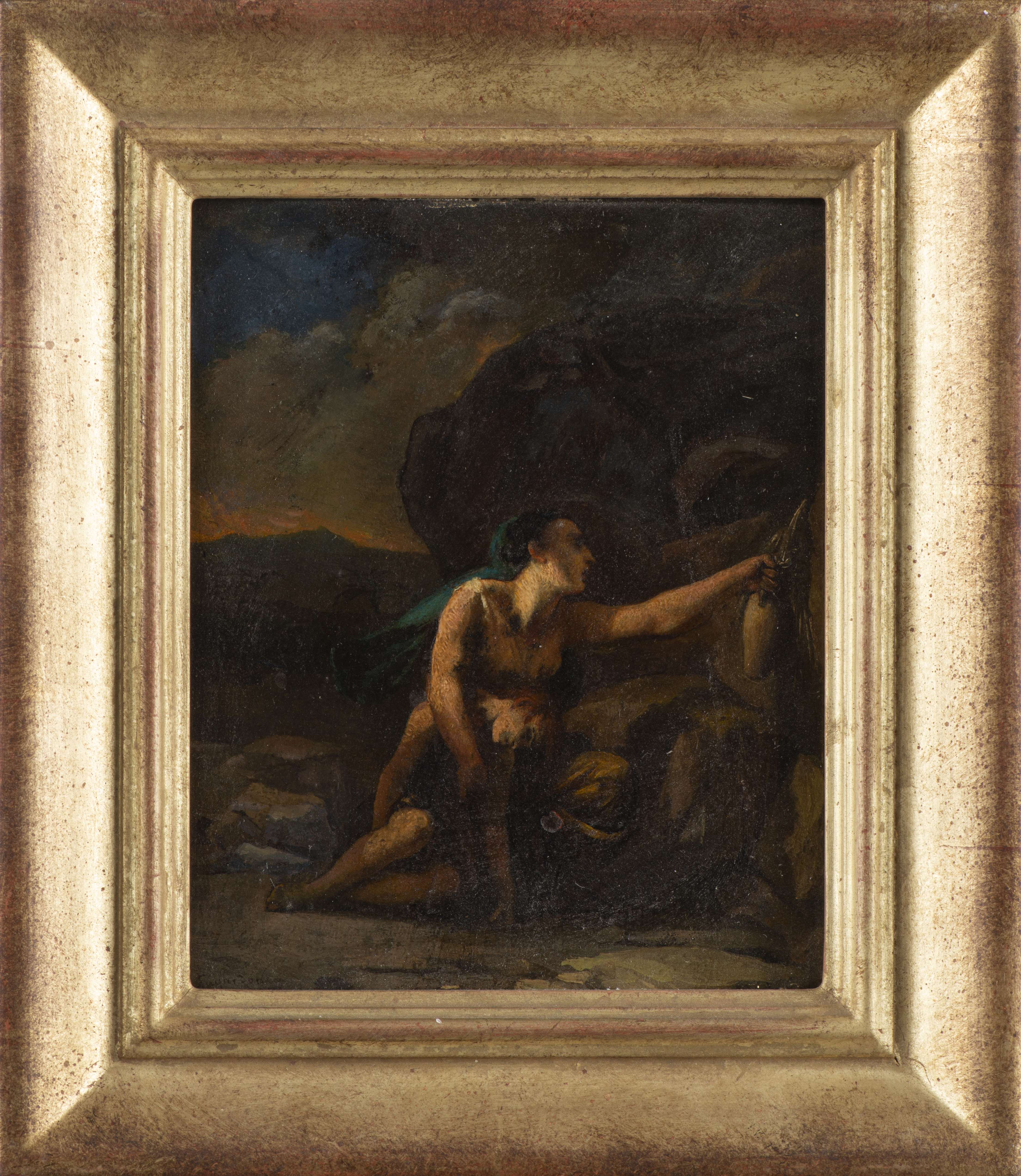 Jean-Léonard LUGARDON (1801-1884) "Agar et Ismaël au désert" vers 1884, huile sur bois, signé en bas à gauche.
