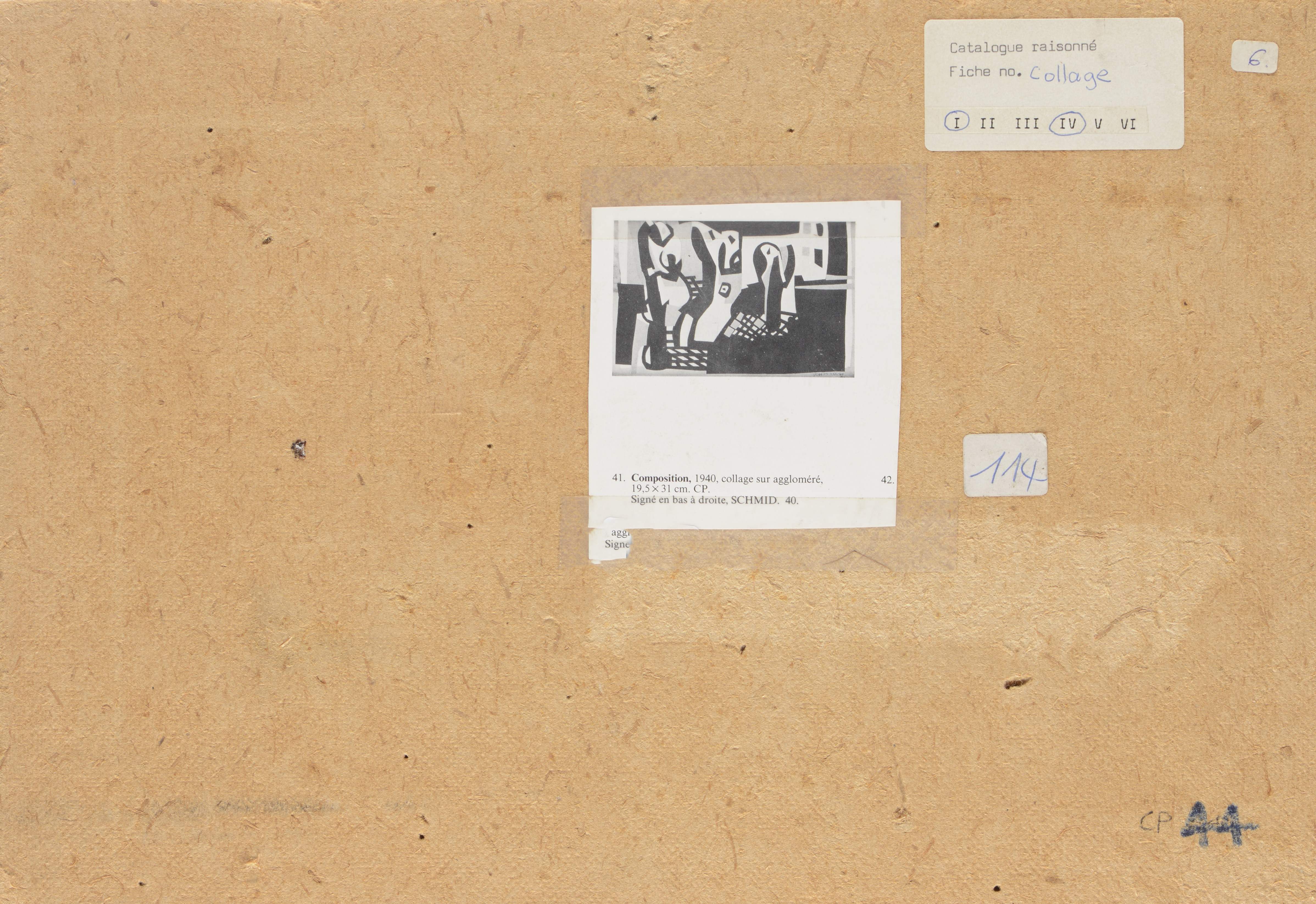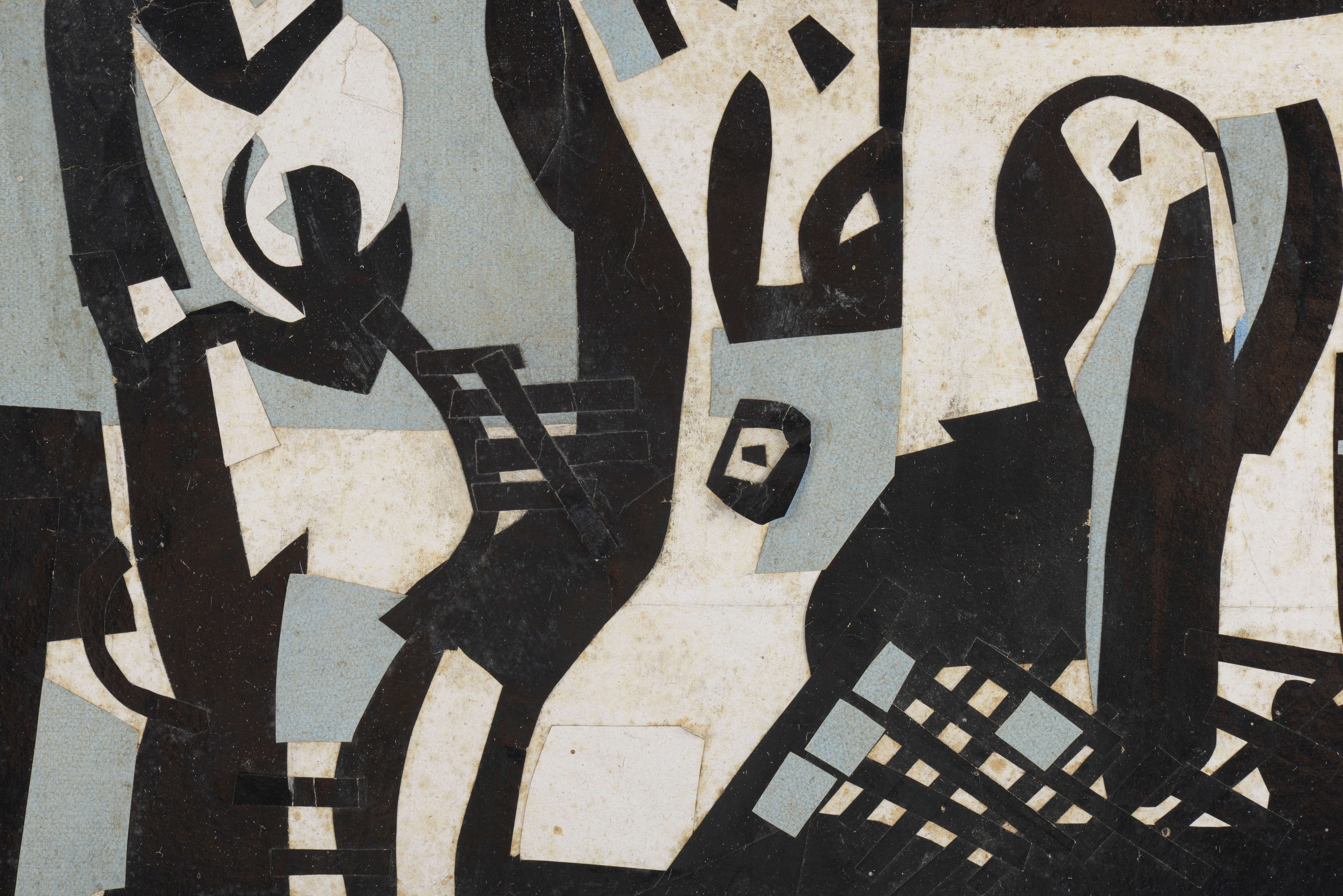 "Composition", collage sur aggloméré, signé en bas à droite, 1940