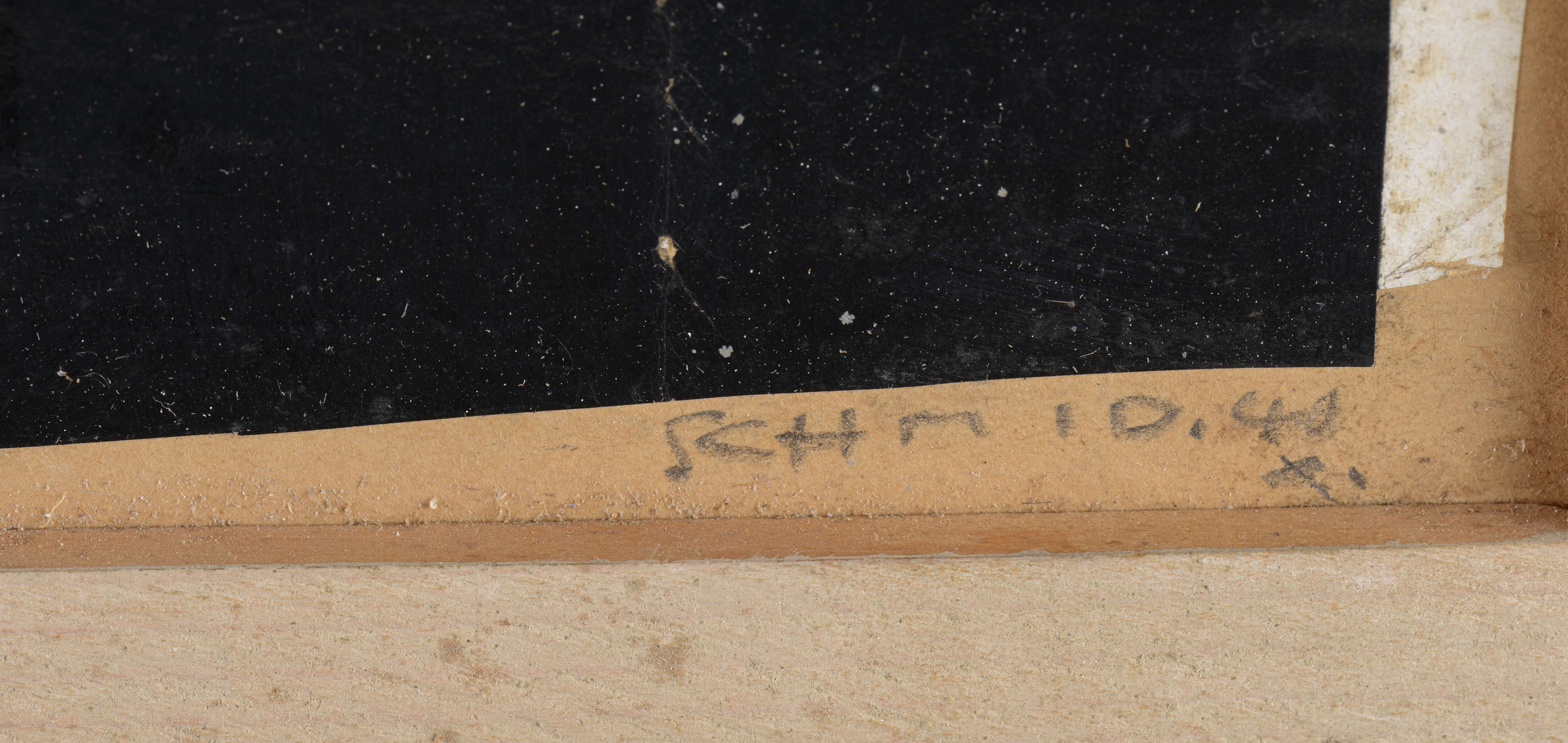 Jean-Pierre SCHMID dit LERMITE (1920-1977), "Composition", étude, crayon sur papier collé sur une plaque de bois aggloméré, signé Schmid en bas à droite, titré, daté 1942, localisé Interlaken et signé J.Schmid au dos