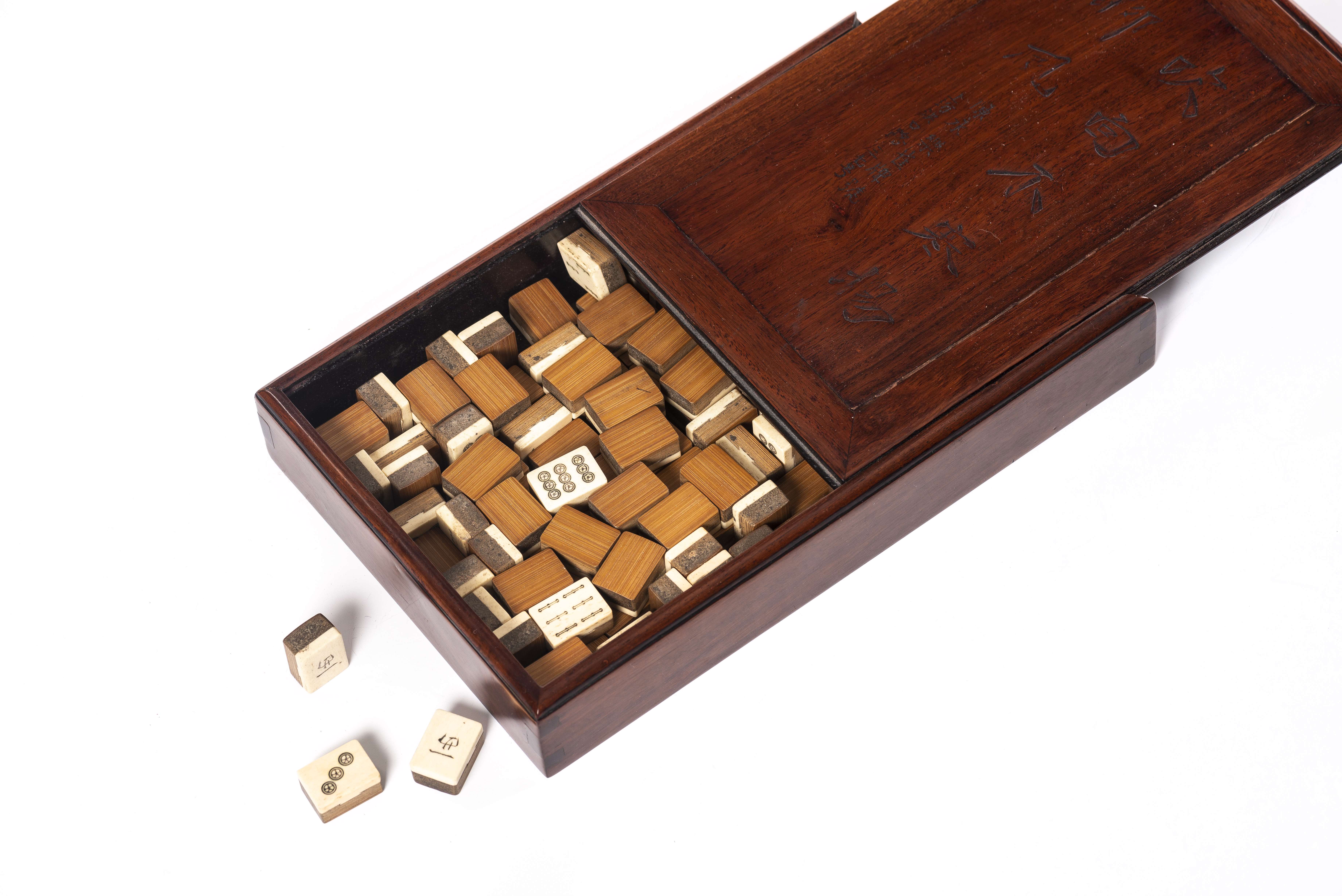 Jeu de Majong 麻将 (Mah-jong) en os et bambou dans une boîte vers 1920.