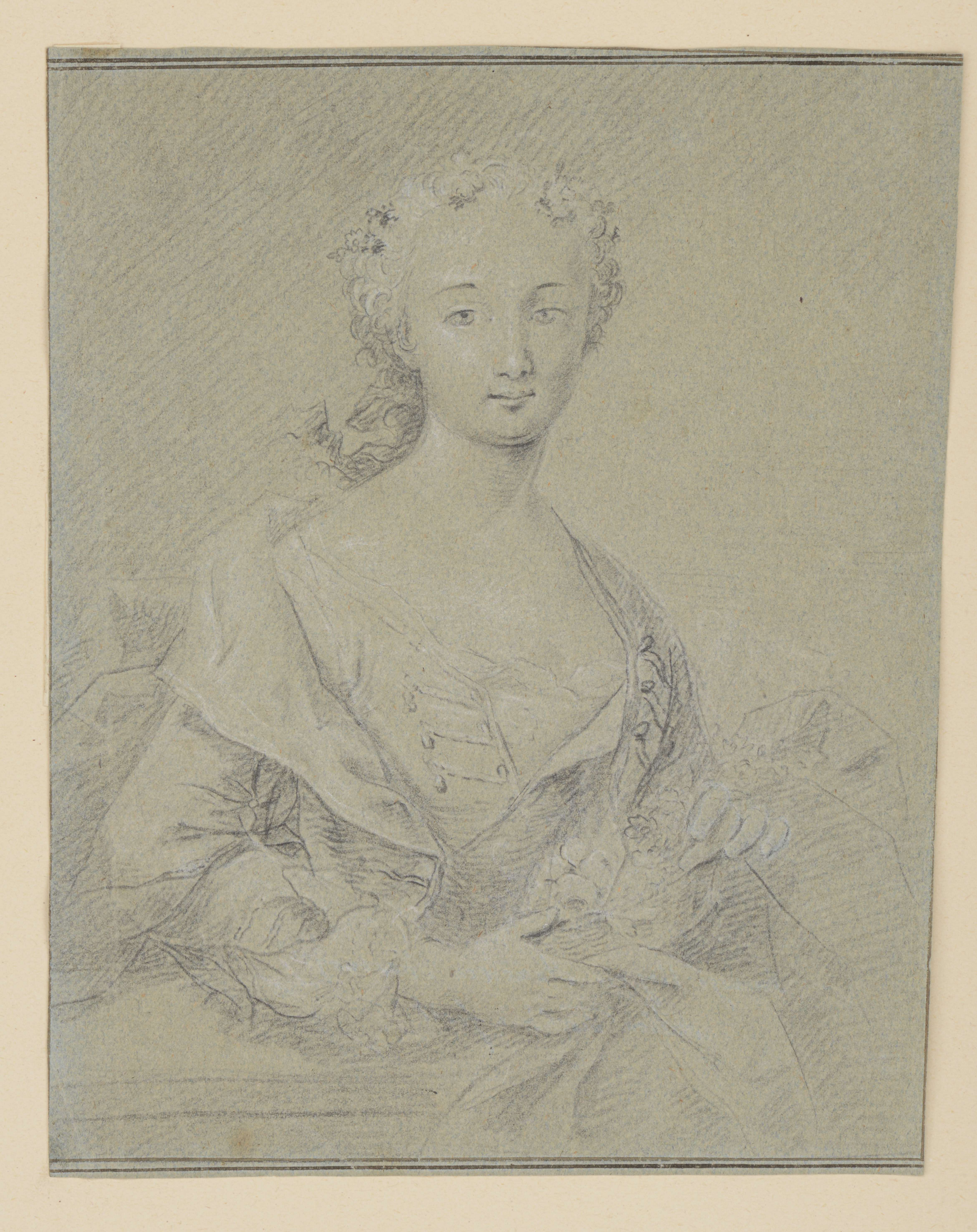 Johann Anton TISCHBEIN(1720 - 1784),"Imago Viginis Hamerern" (Strasbourg), dessin à la mine de plomb et craie blanche, titré et signé au dos.