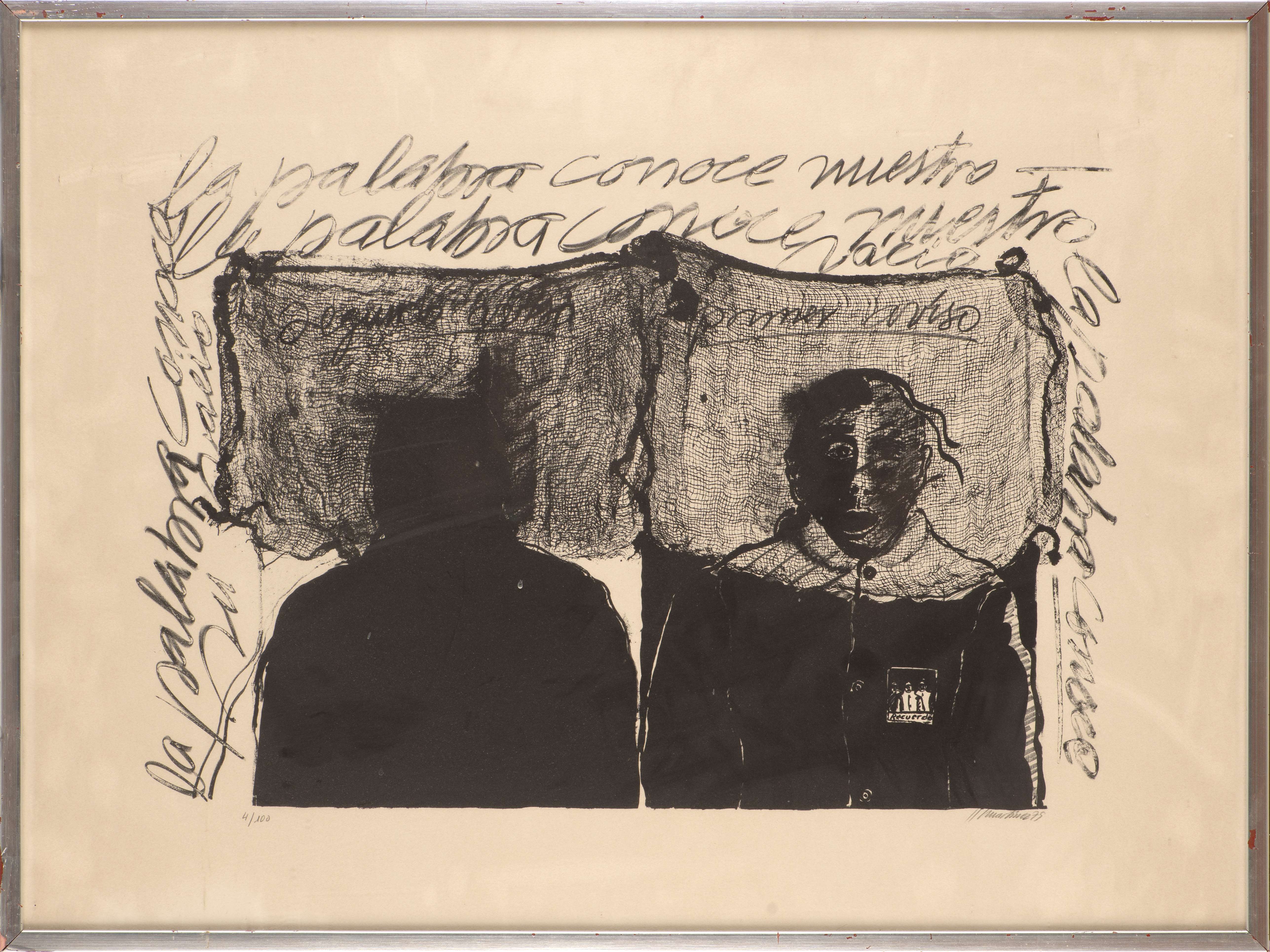 Juan MARTINEZ (1942), "la palabra conoce". Lithographie, sbd et datée 79, tirage 4/100.