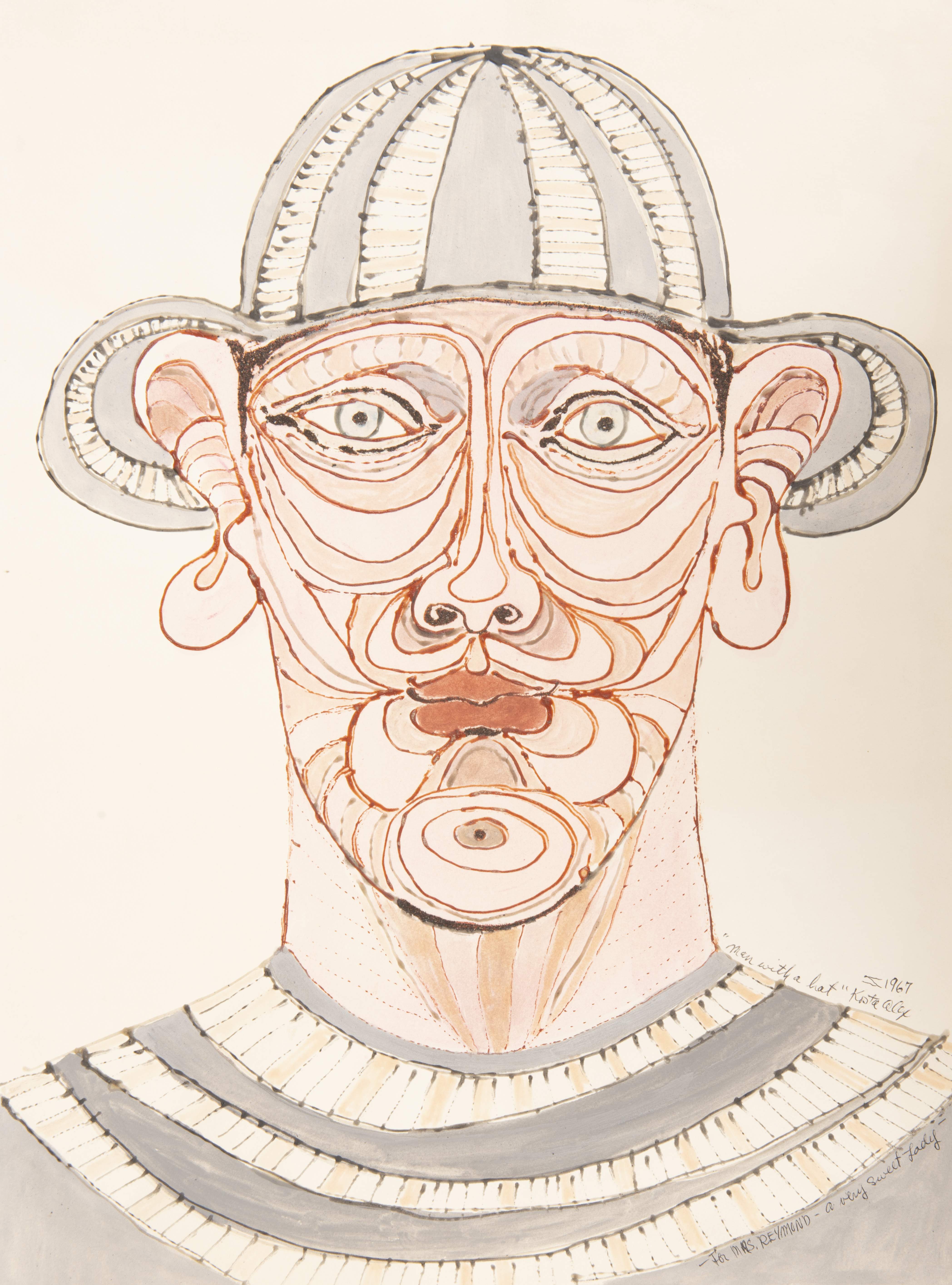 Kosta ALEX (1925-2005) "Man with a hat", technique mixte sur papier, sbd, daté 1967, intitulé et dédicacé.