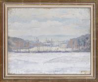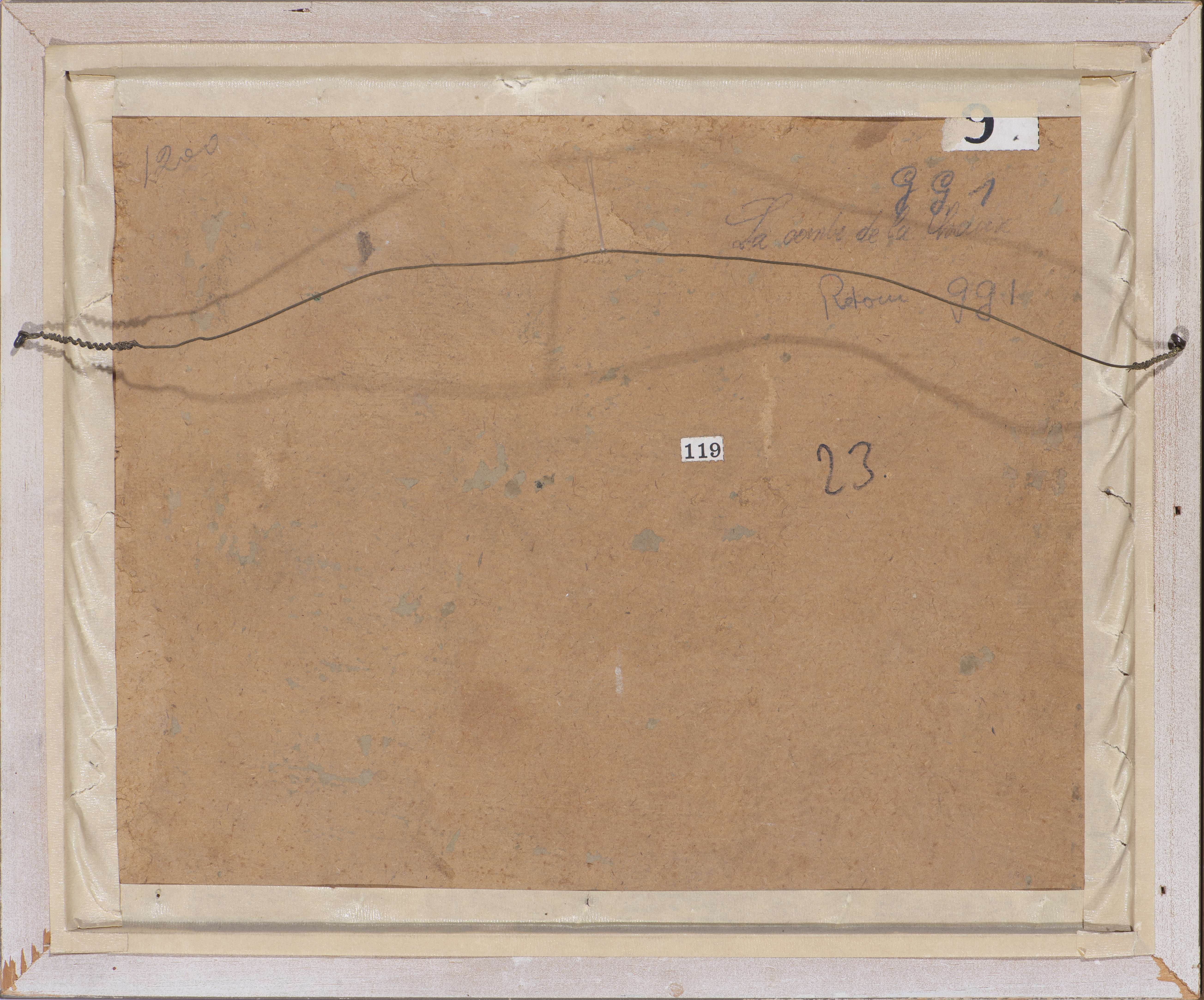 "La combe de la Chaux", huile sur carton, sbd et datée 1975, titre au dos.