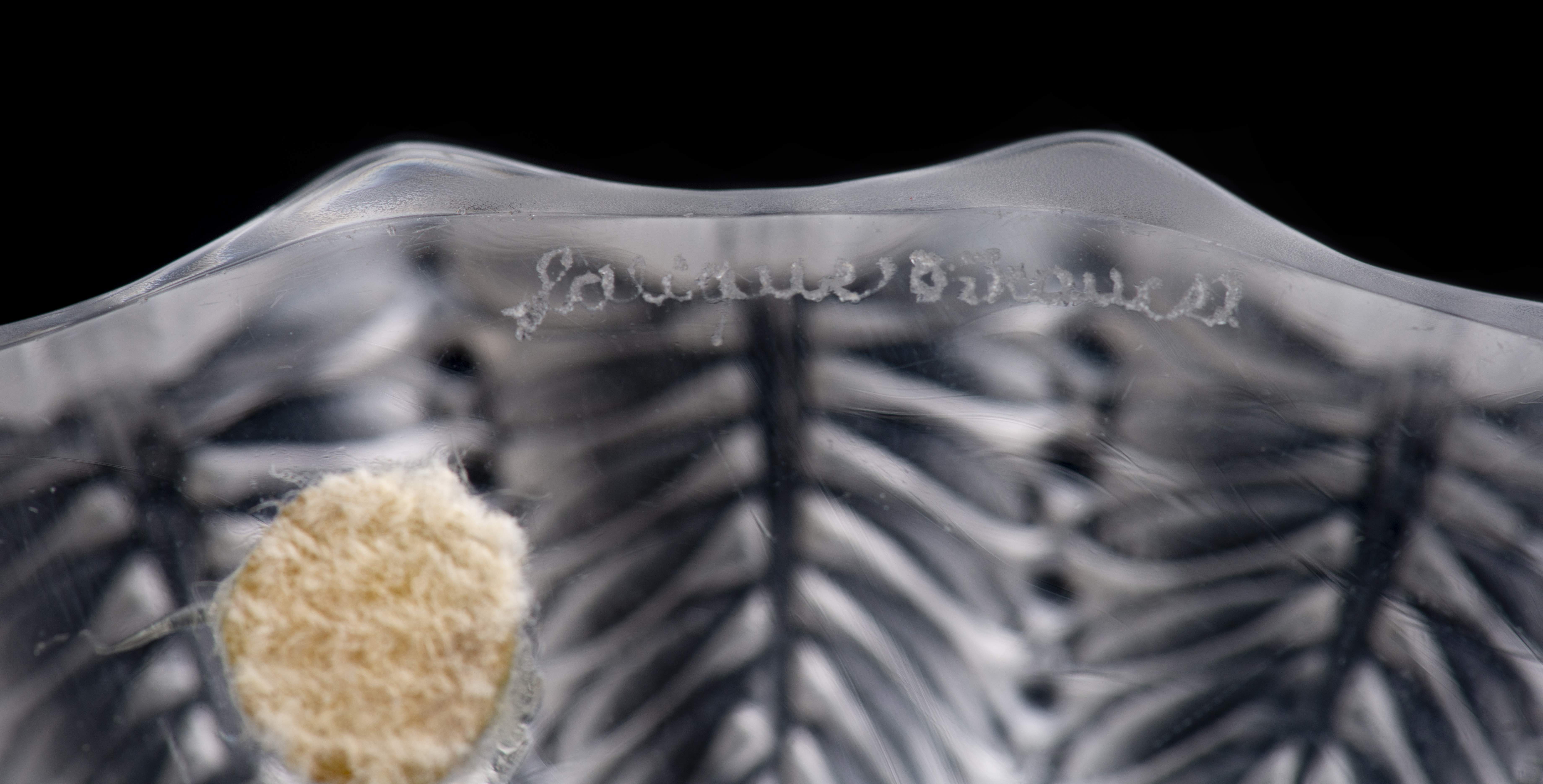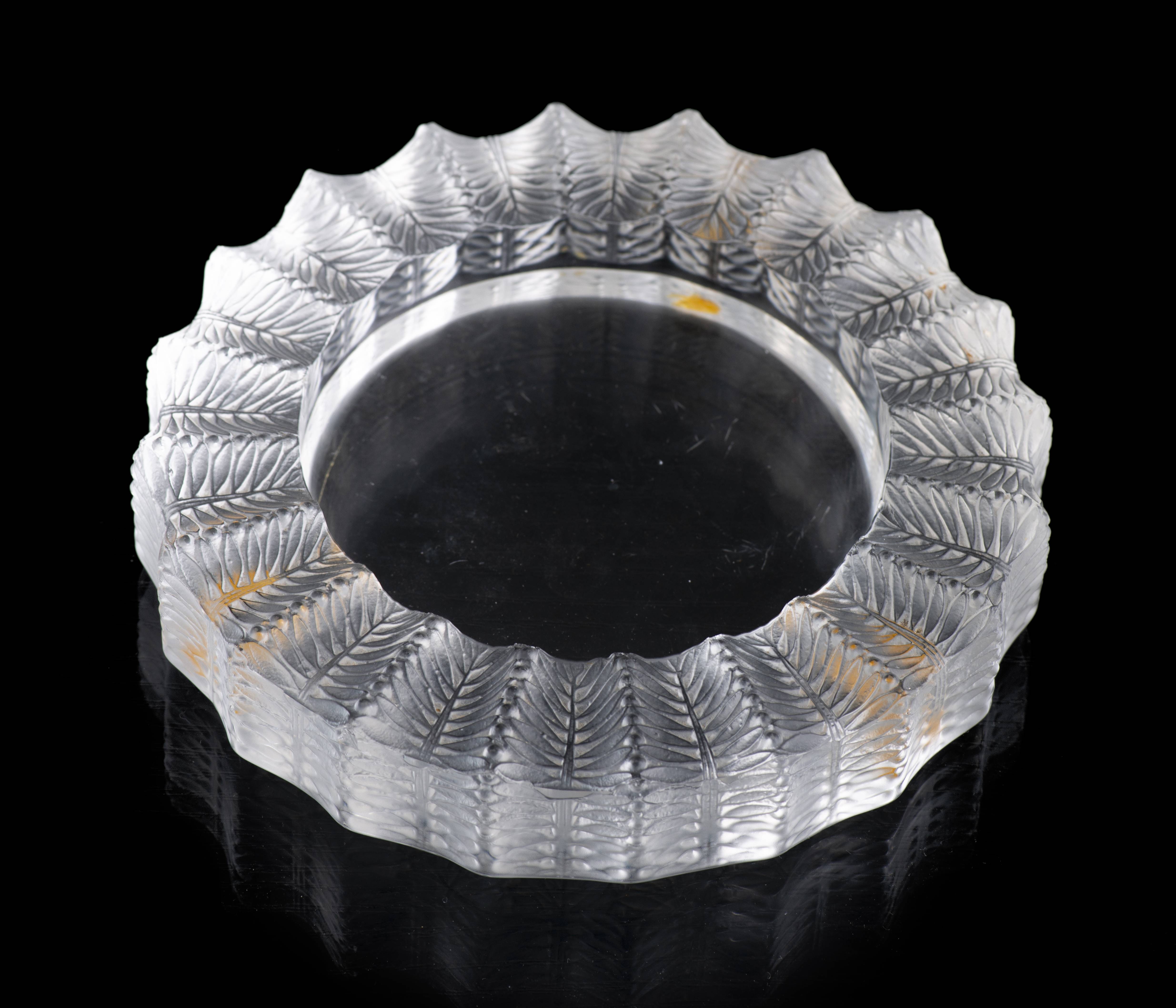 Lalique R. France, cendrier en verre moulé à décor de feuilles stylisées, signé Lalique ® France sous la base, (depuis 1978).