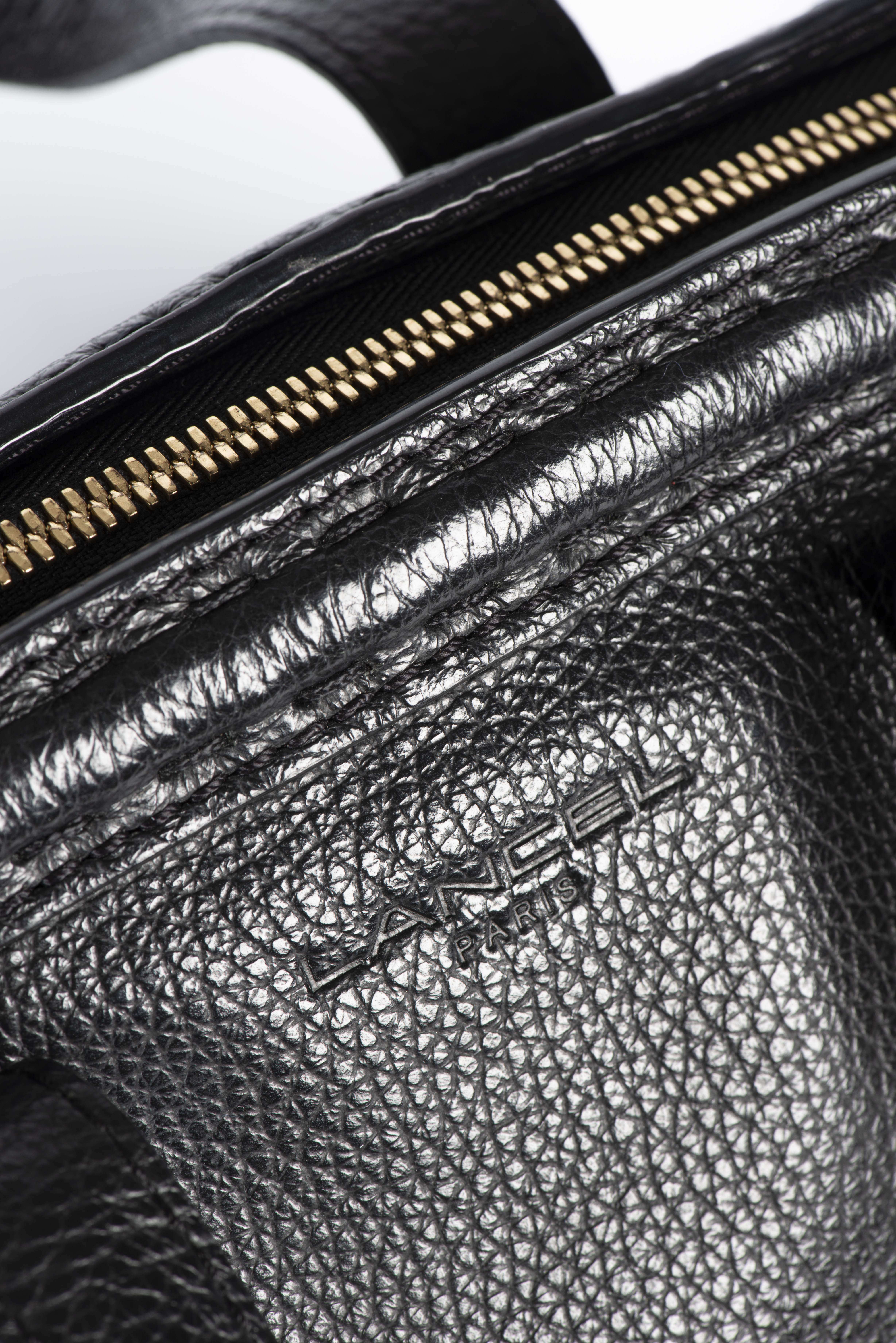 LANCEL, Sac en cuir noir, fermetures éclair, anse bandoulière. Zip à breloques en métal doré.