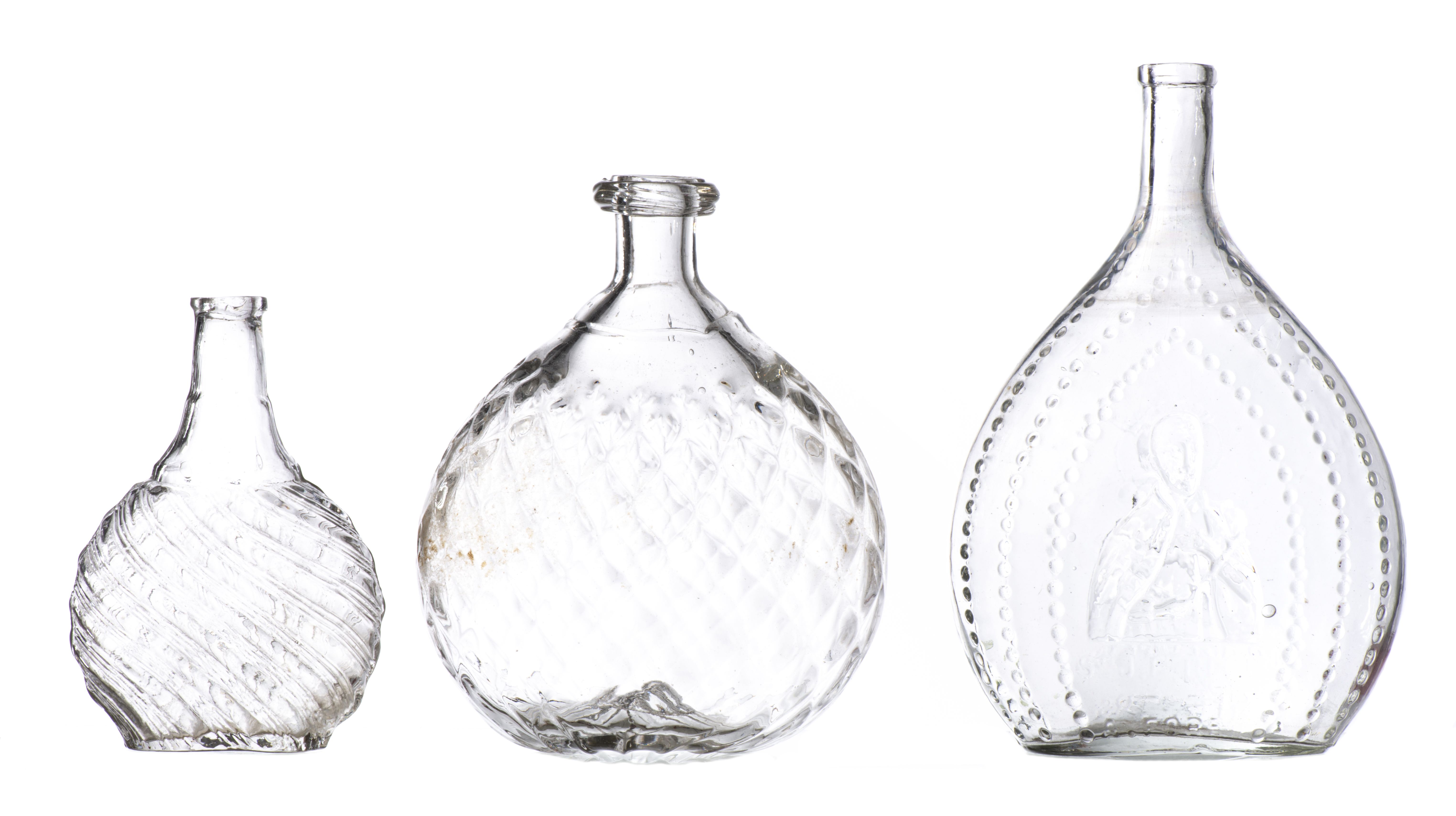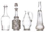 LEGRAS (verrerie et cristallerie de Saint Denis à Clichy), Grand ensemble de 17 bouteilles à sujet en verre transparent dont certains modèles reconnaissables comme:
