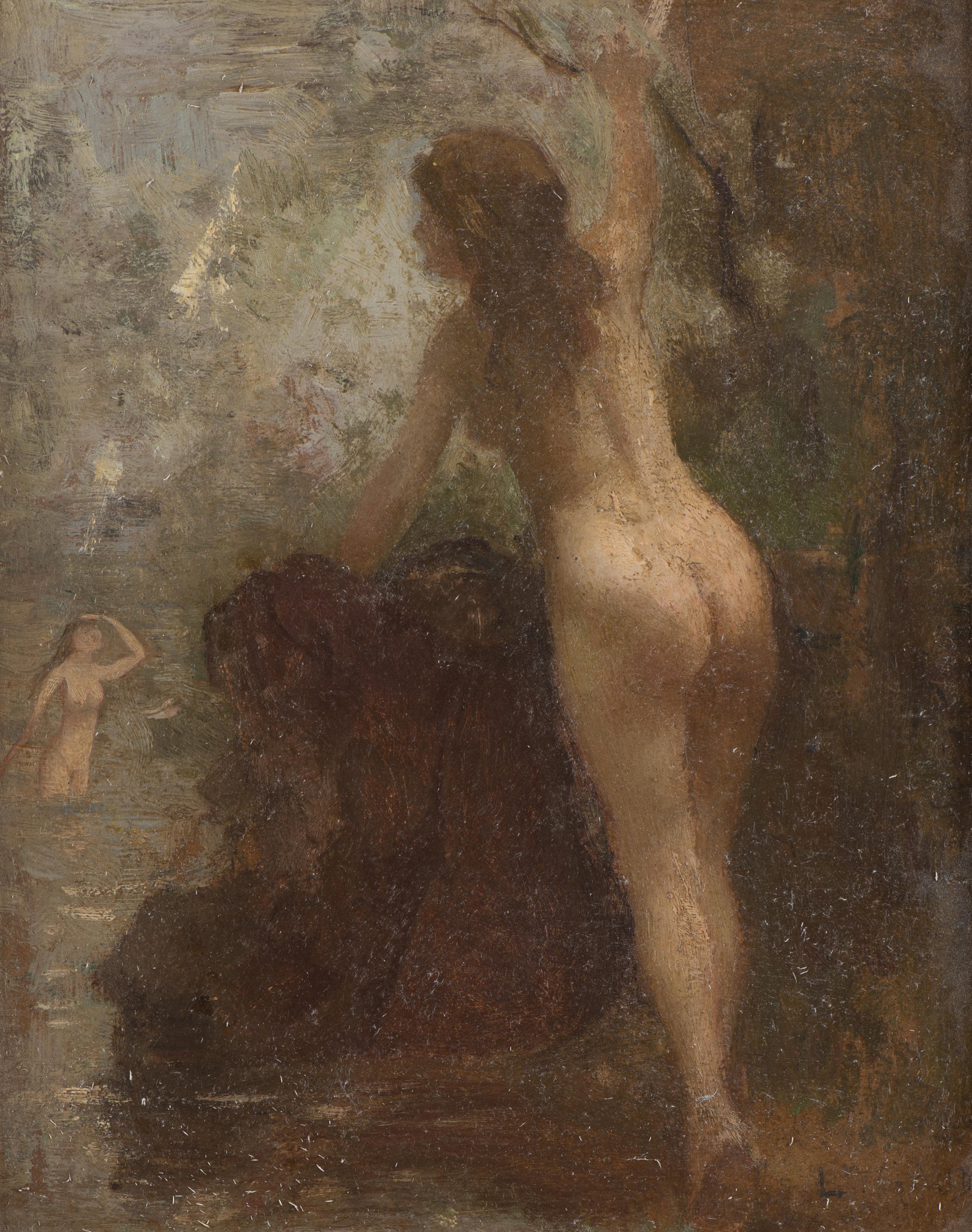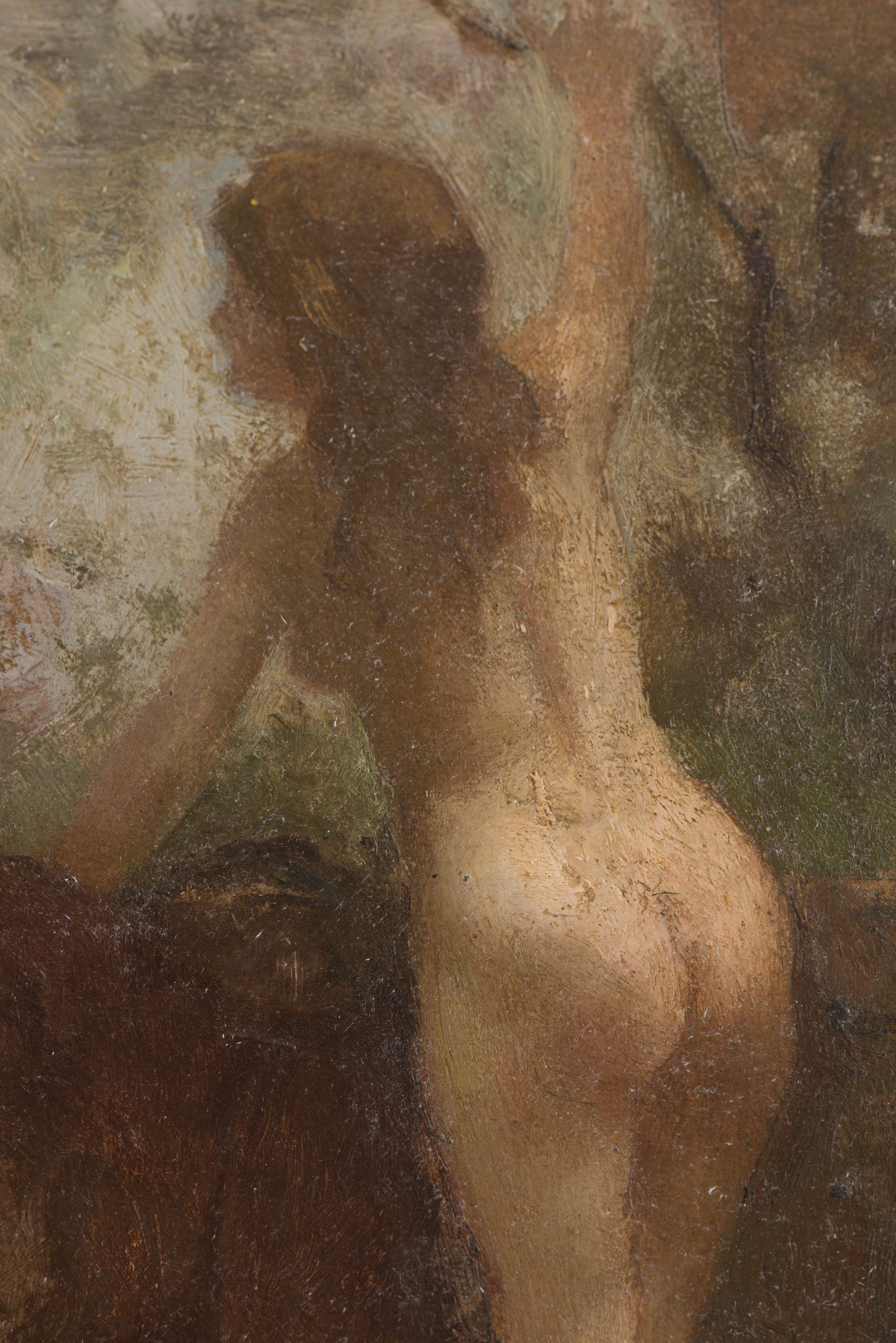 Léon GAUD (1844-1908) "Les nymphes", huile sur carton, signé en bas à droite.