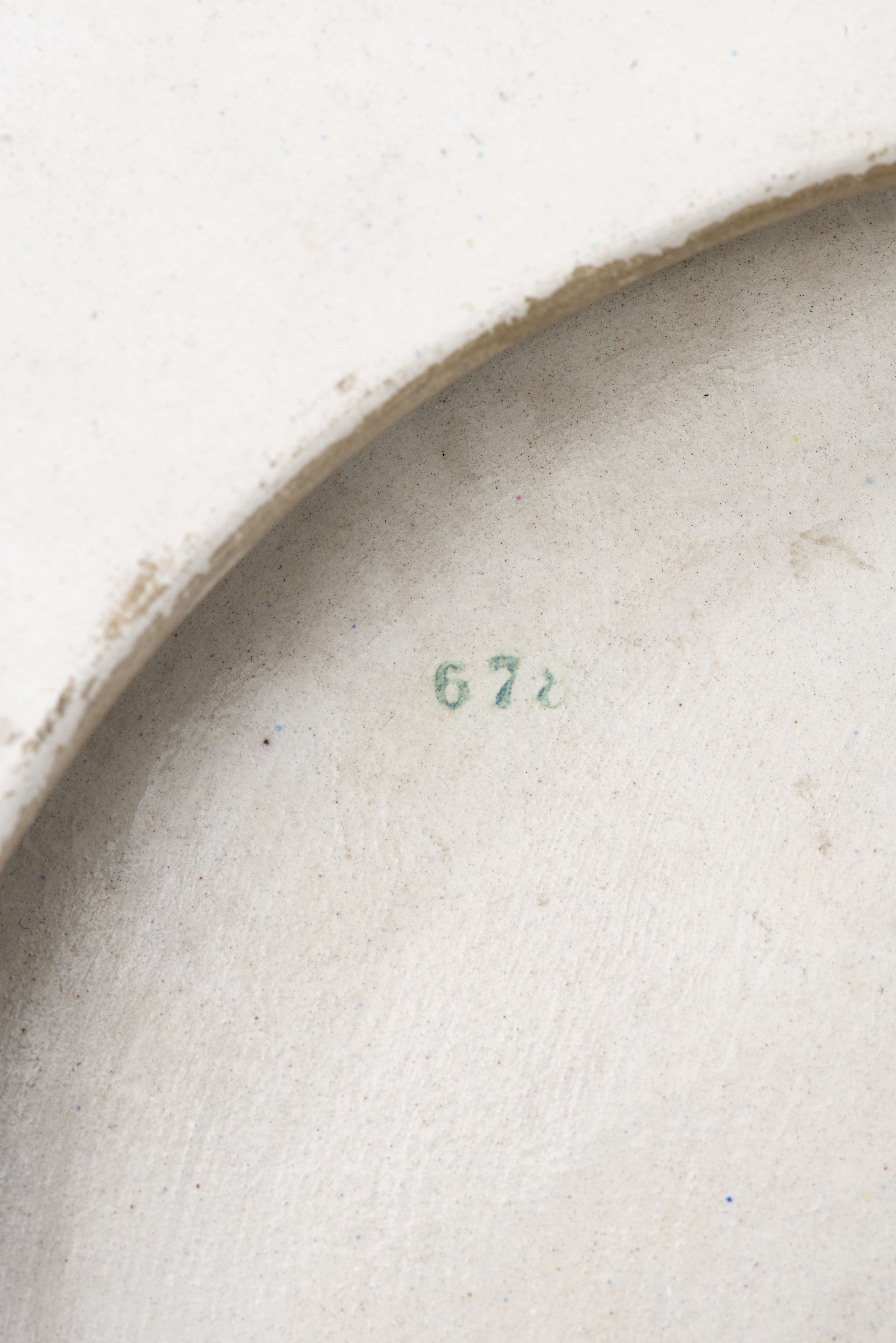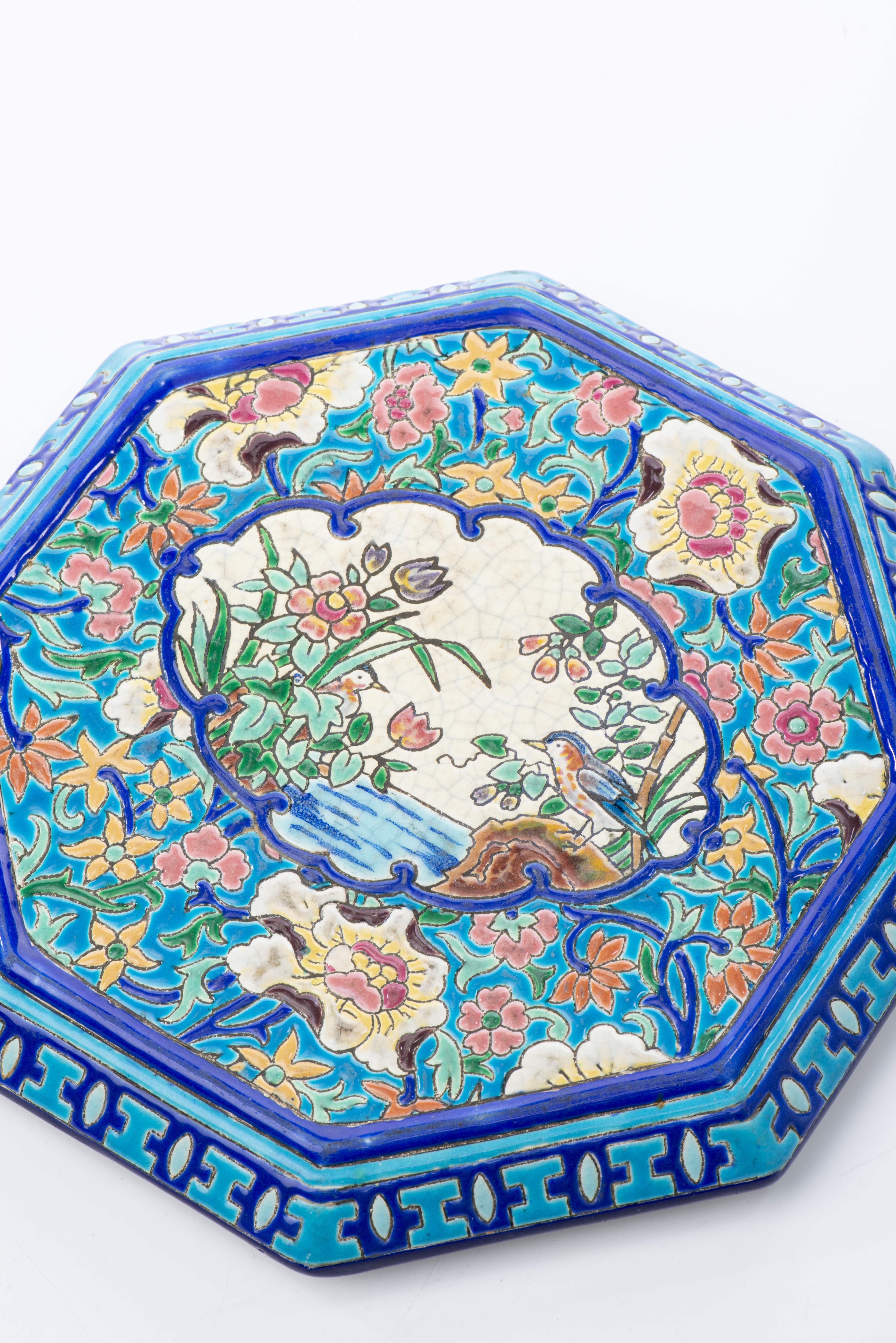 LONGWY (manufacture de), Paire de dessous de plats en céramique de forme octogonale à décor de végétaux et d'oiseaux, signé sous la base du cachet de la manufacture et annoté "rehaussé main, N.F".
