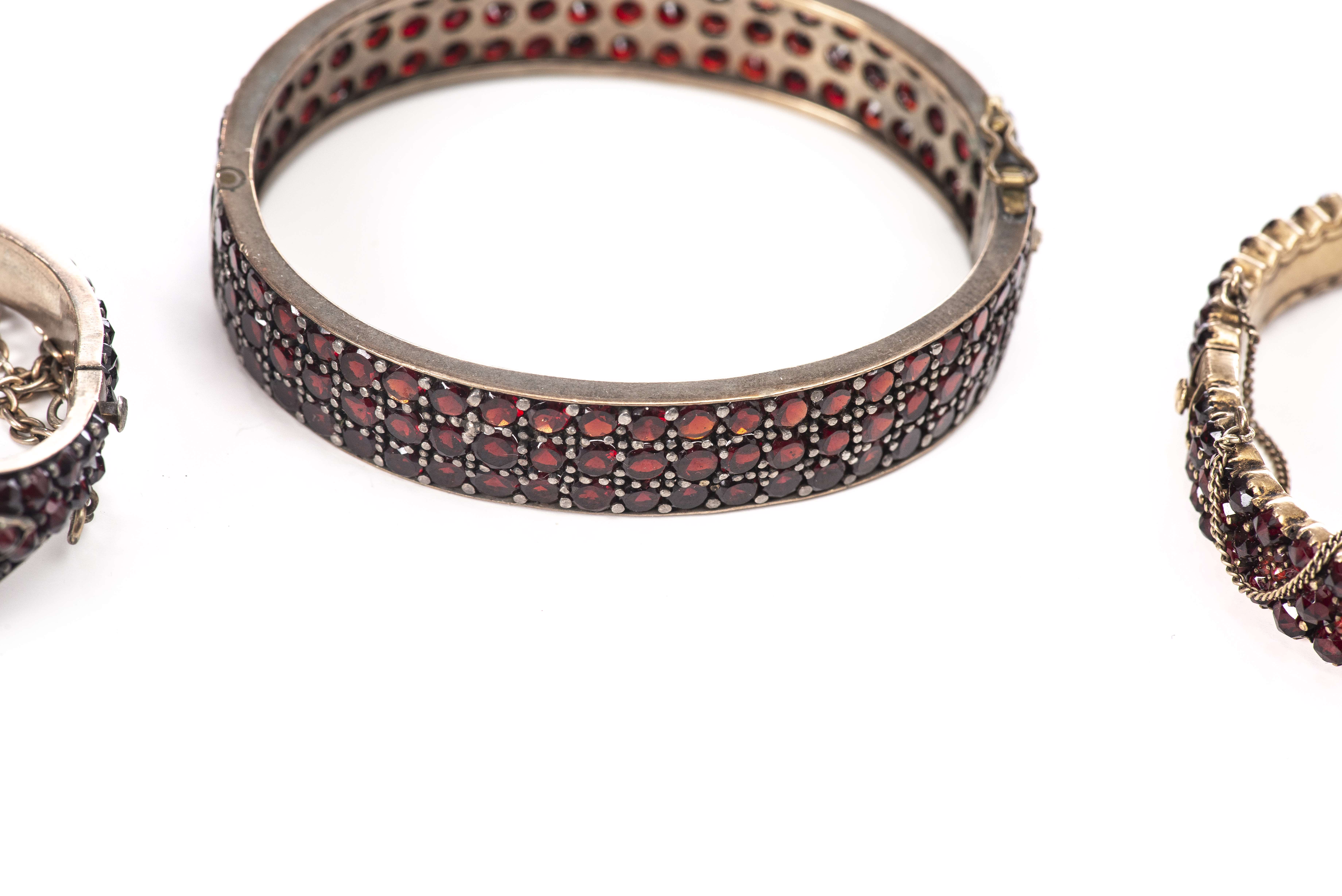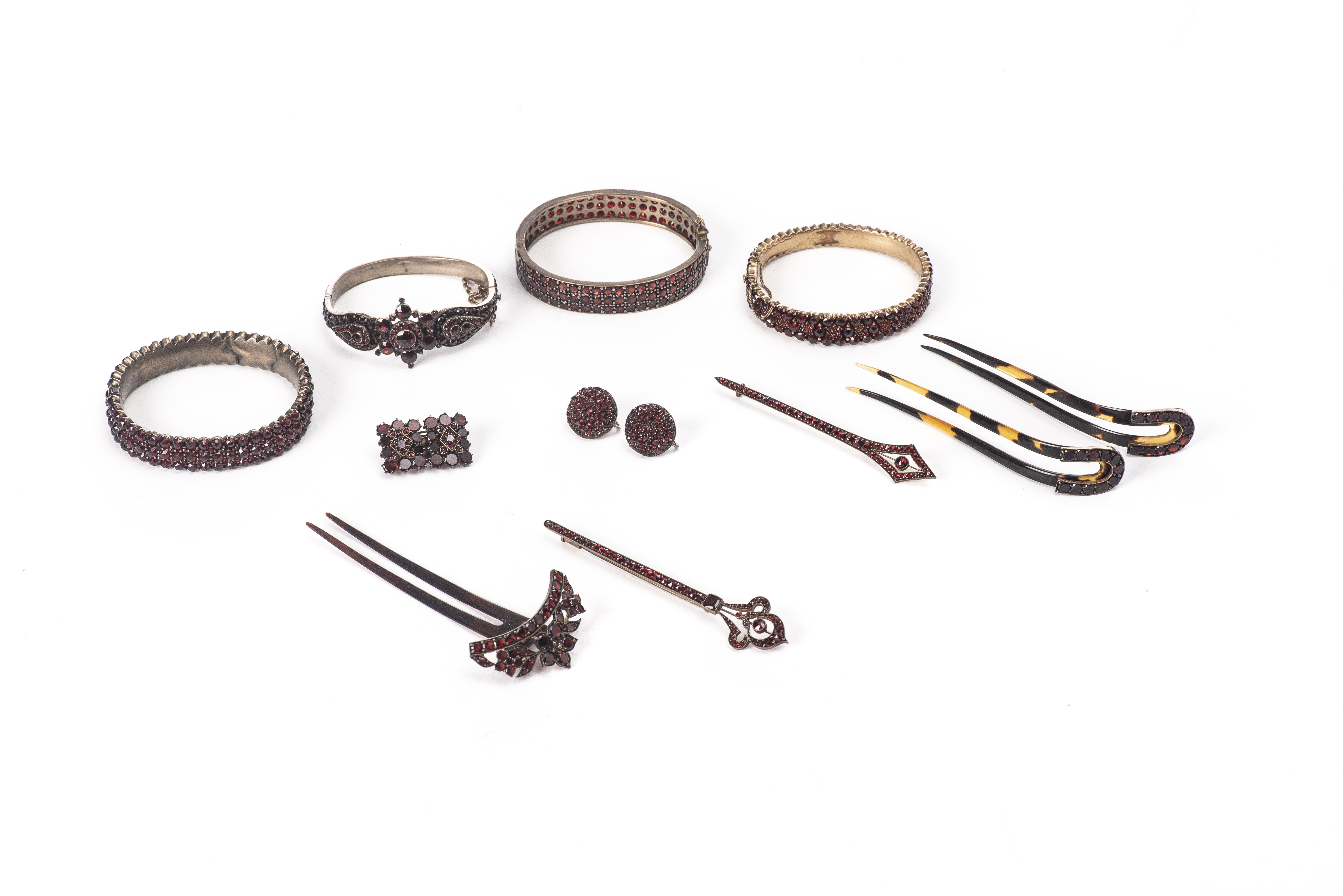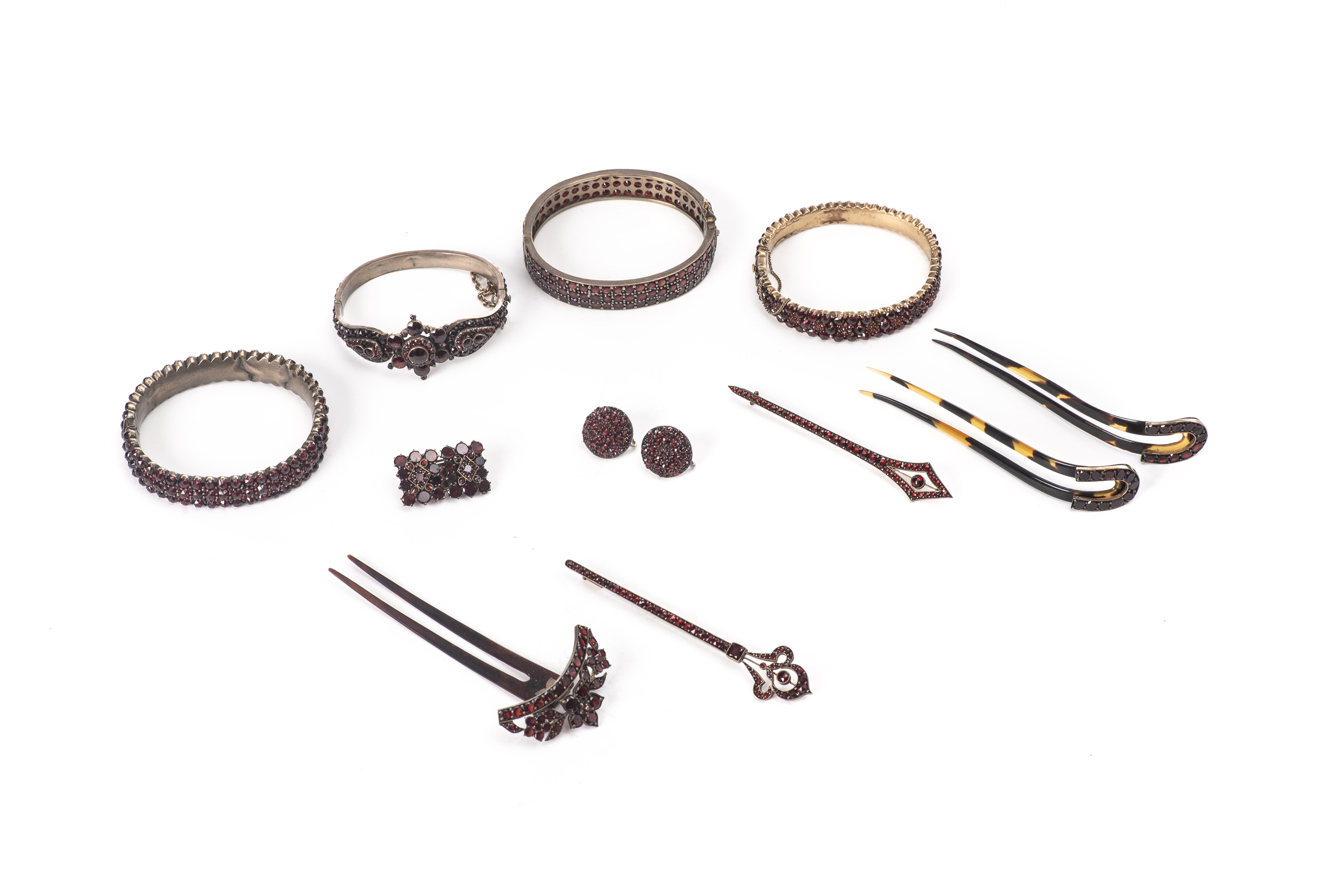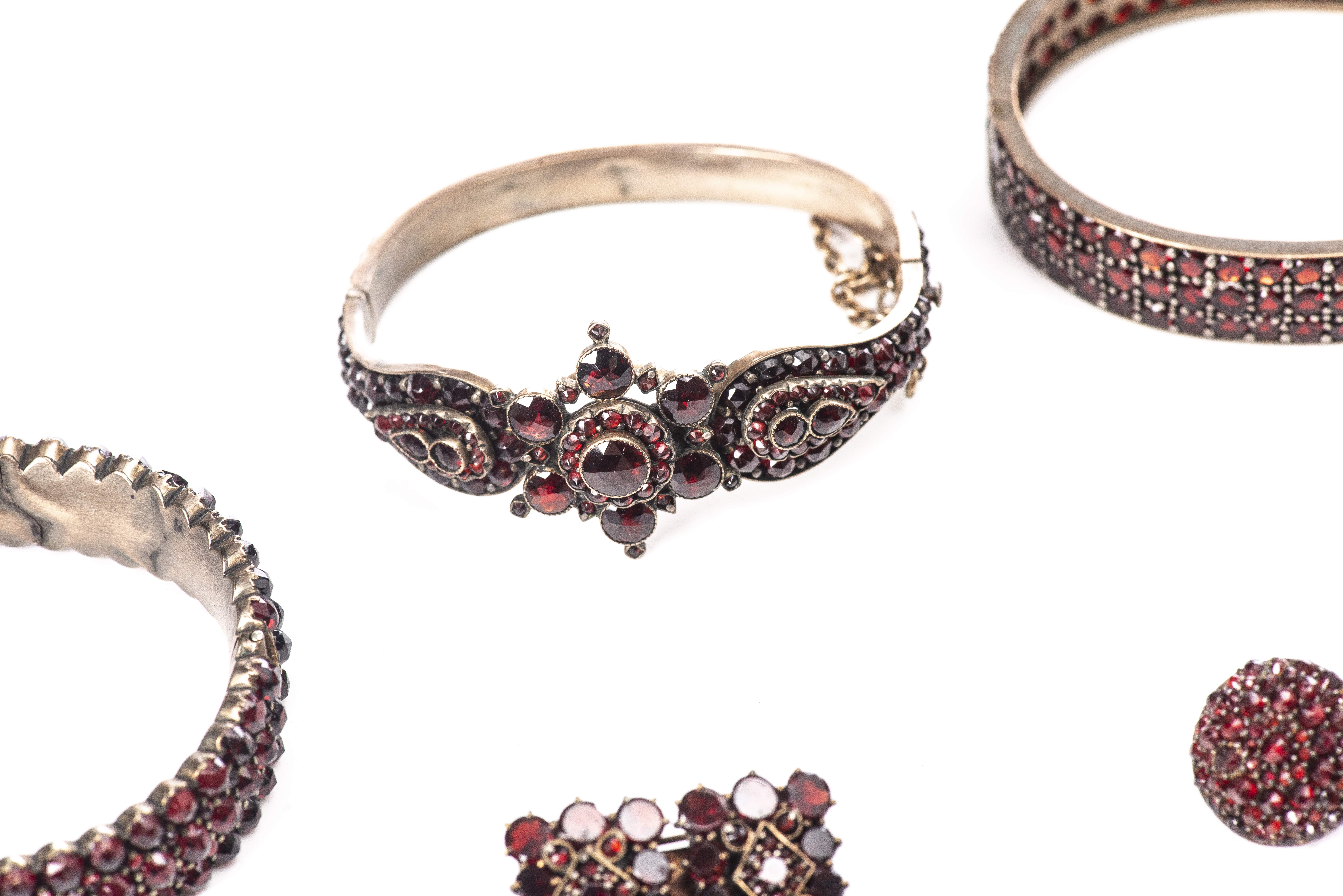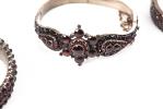 Lot de bijoux en métal argenté serti de nombreux petits grenats, comprenant :