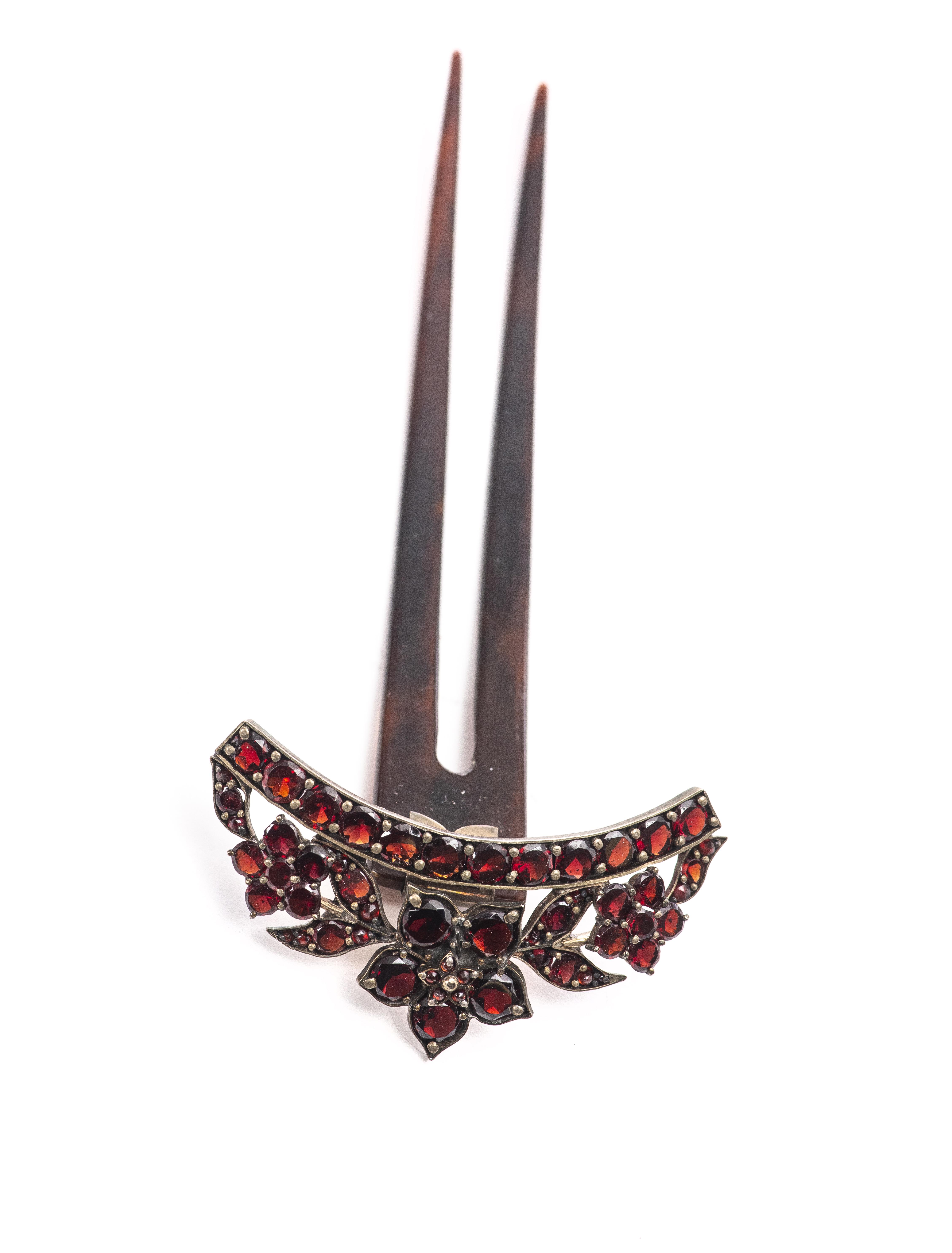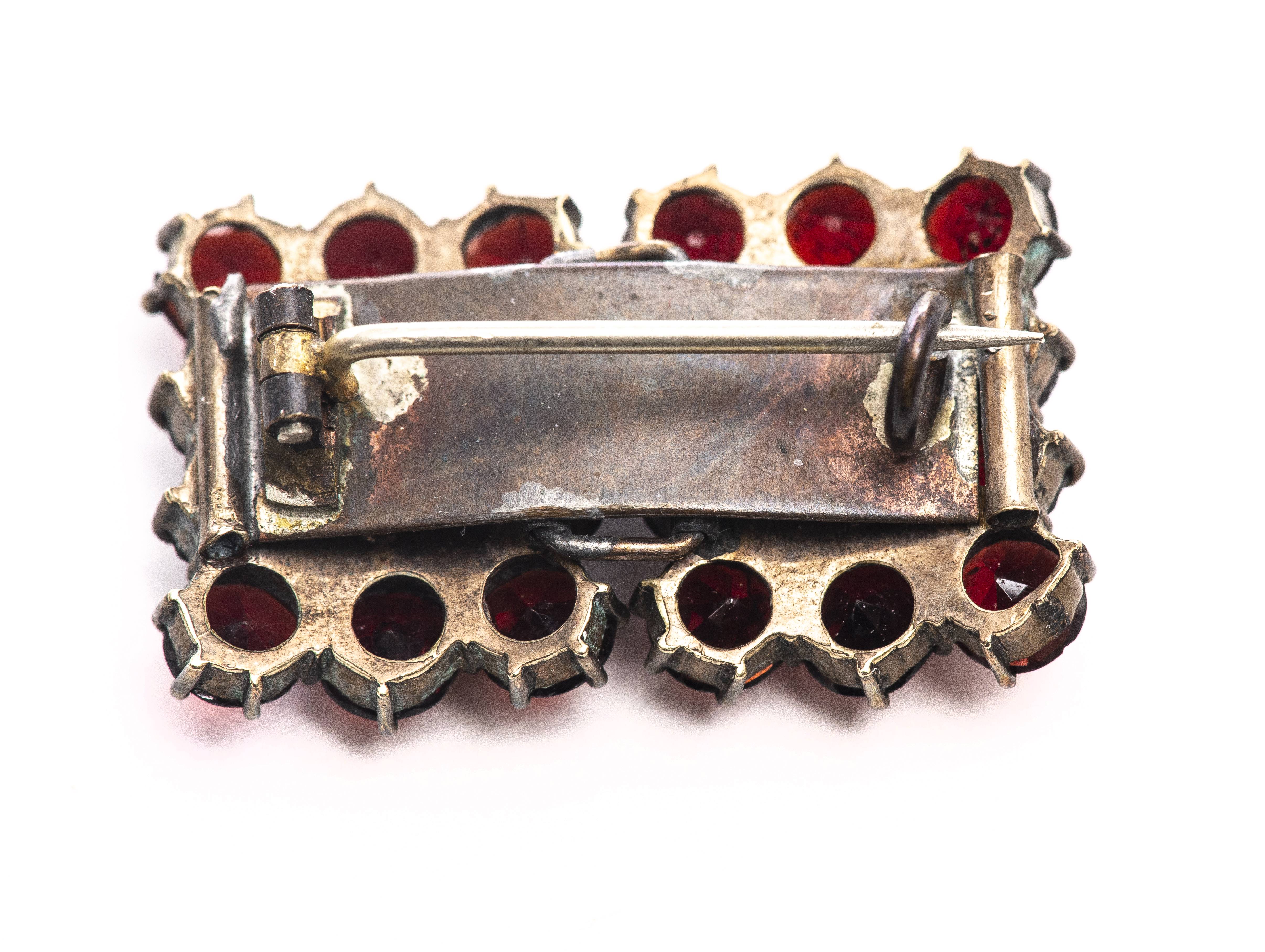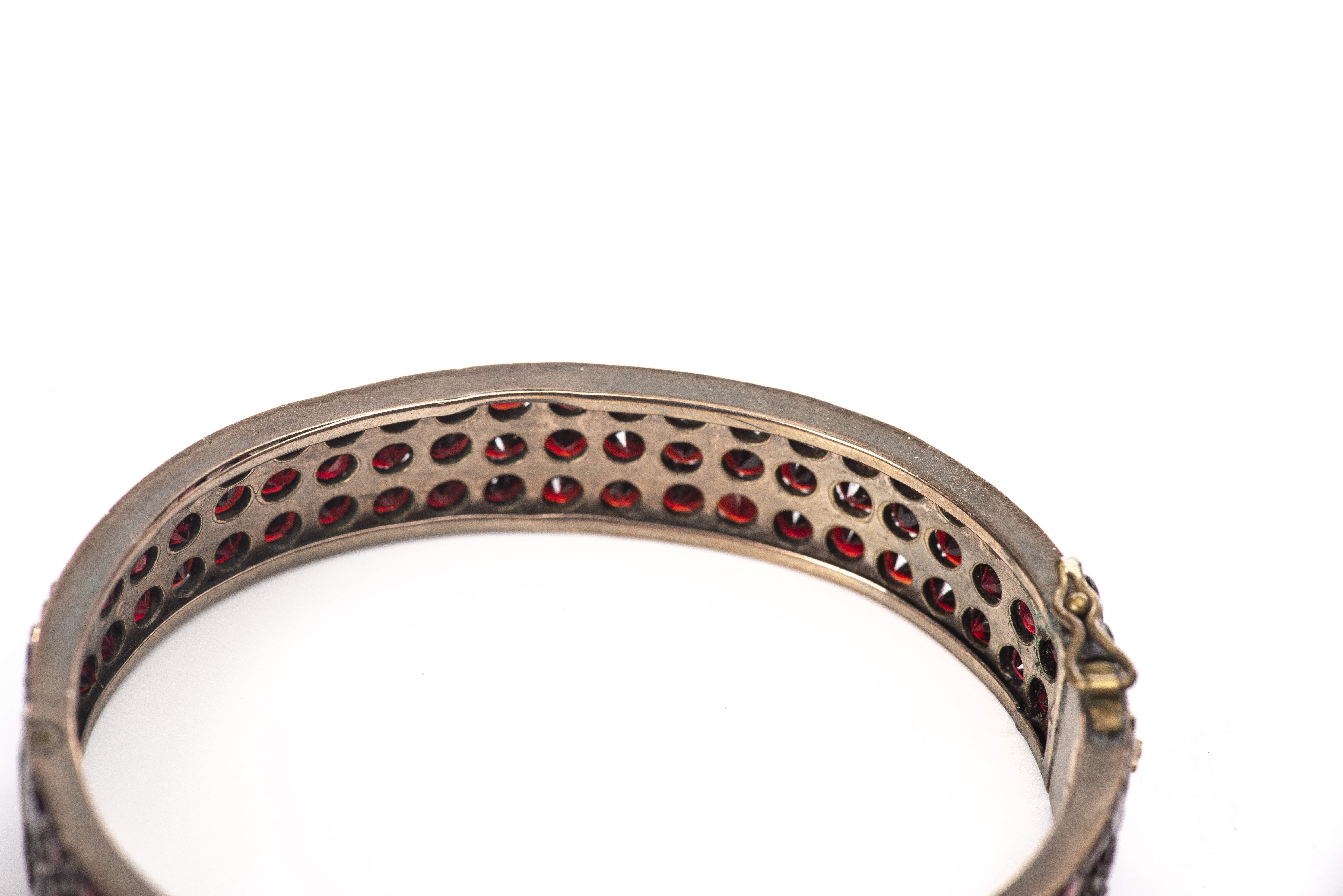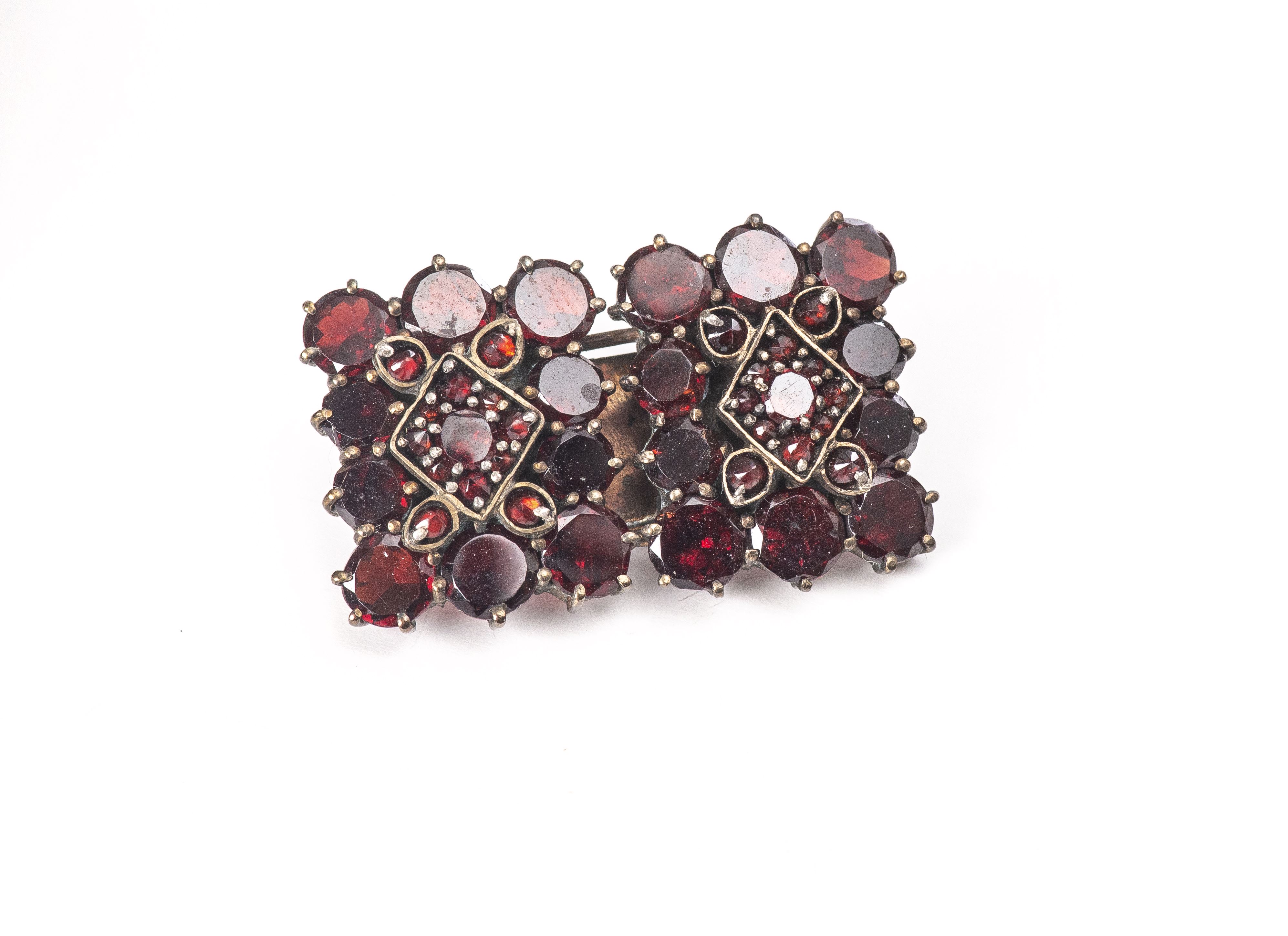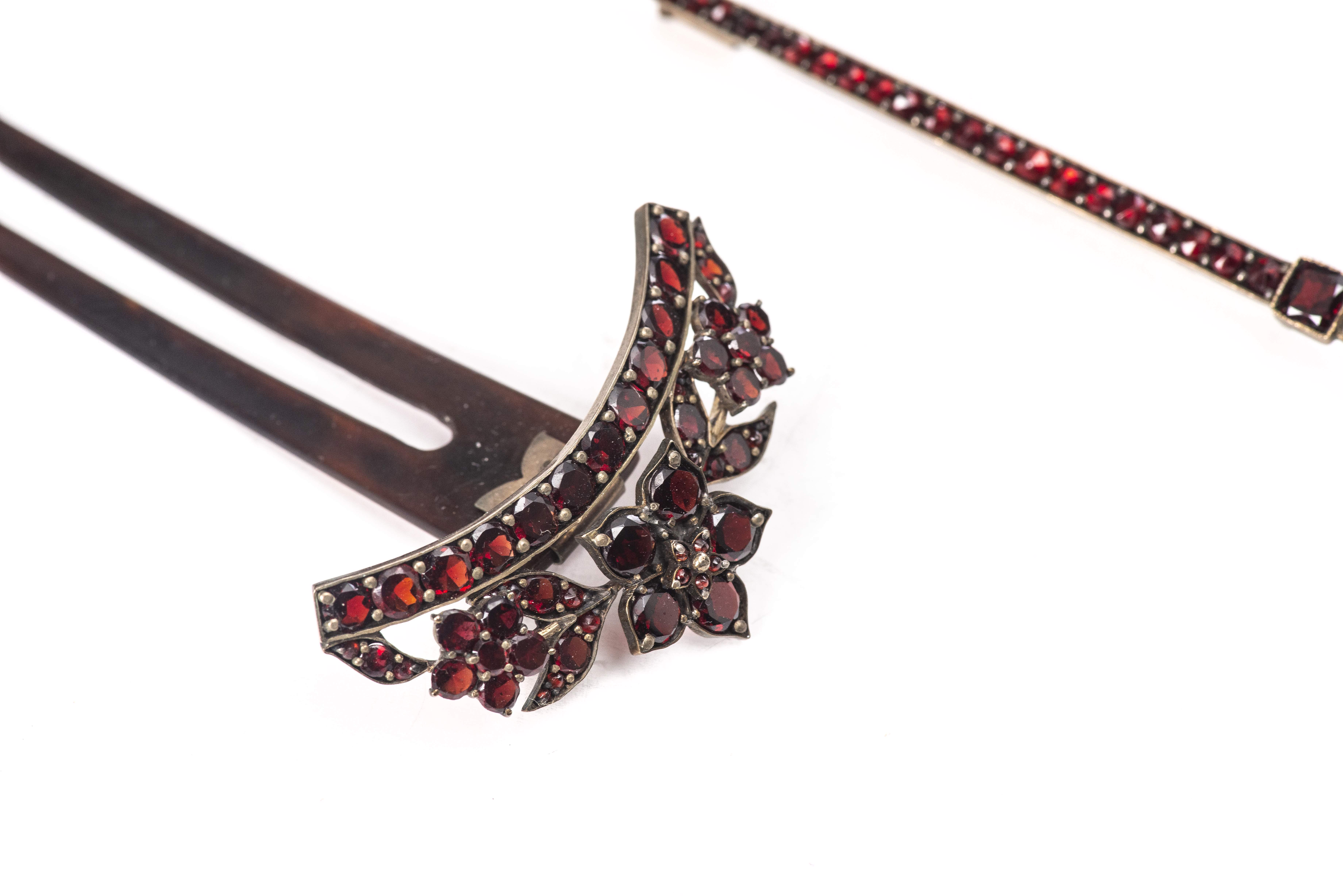 Lot de bijoux en métal argenté serti de nombreux petits grenats, comprenant :
