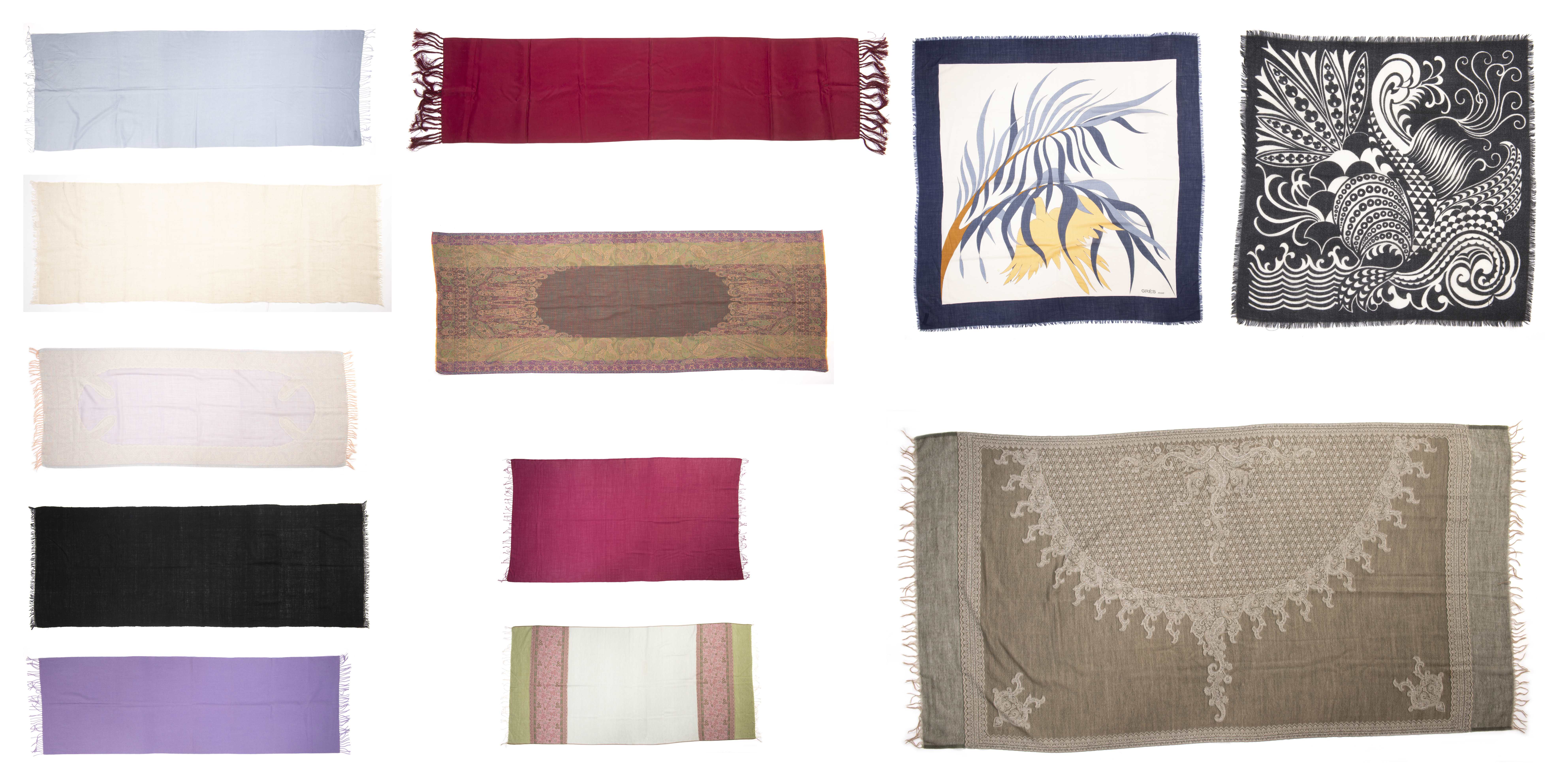 Lot de douze écharpes, dont une signée Grès Paris .