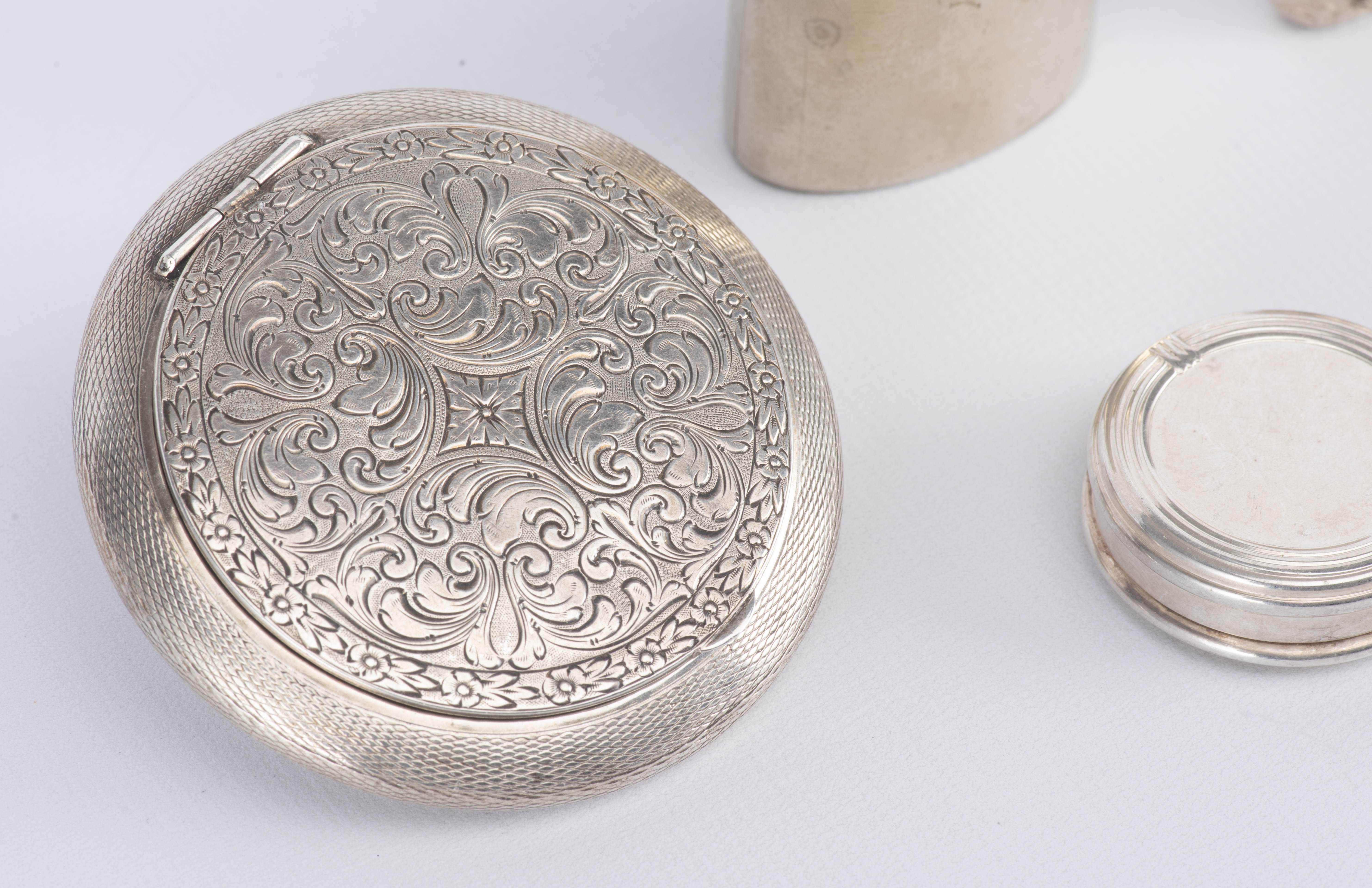 - poudrier rond en argent 925 à décor floral sur le couvercle. H. 1 & D. 7.5 cm