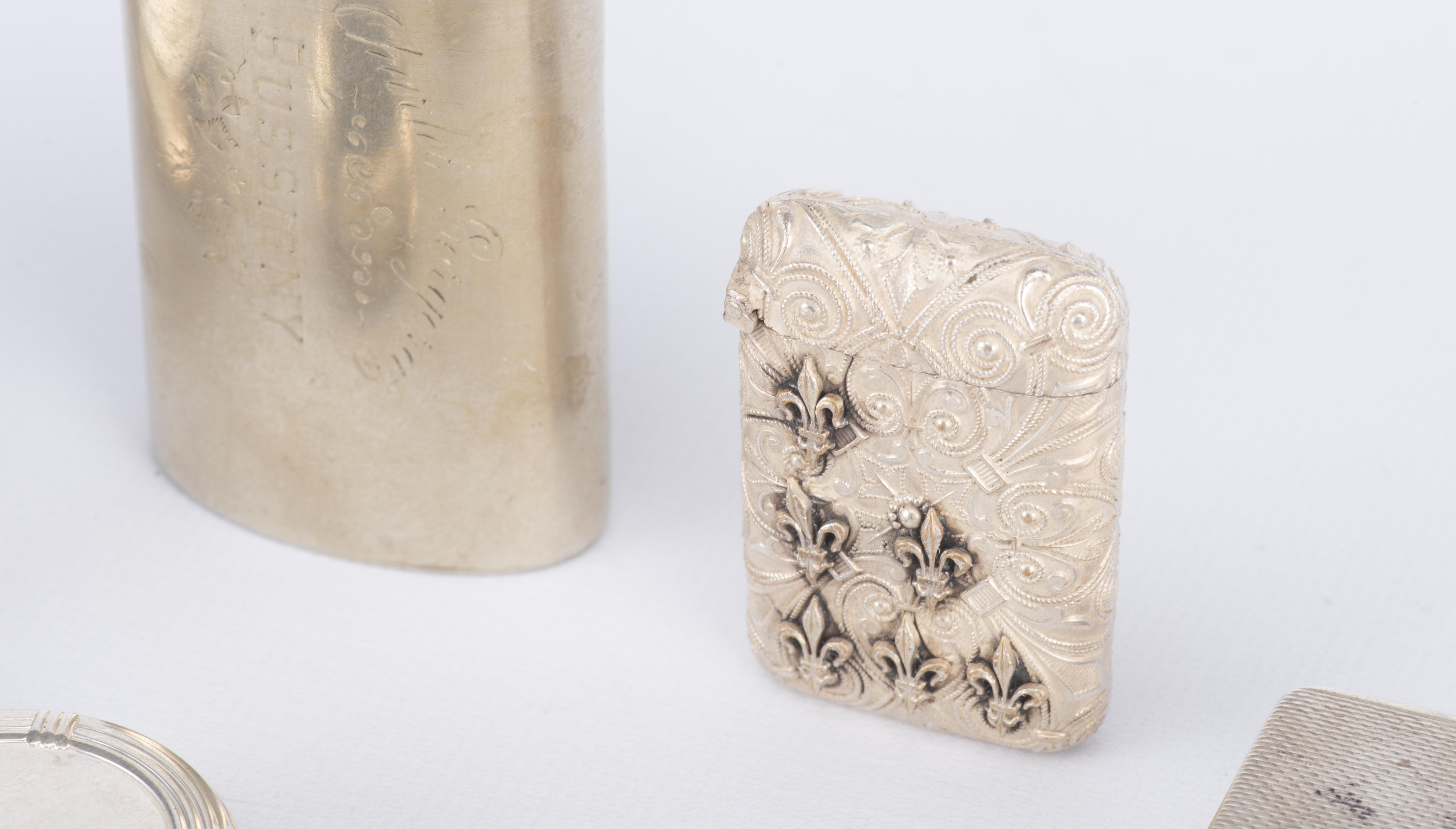 - porte- allumettes en maillechort. H. 6.6x3.7x2 cm