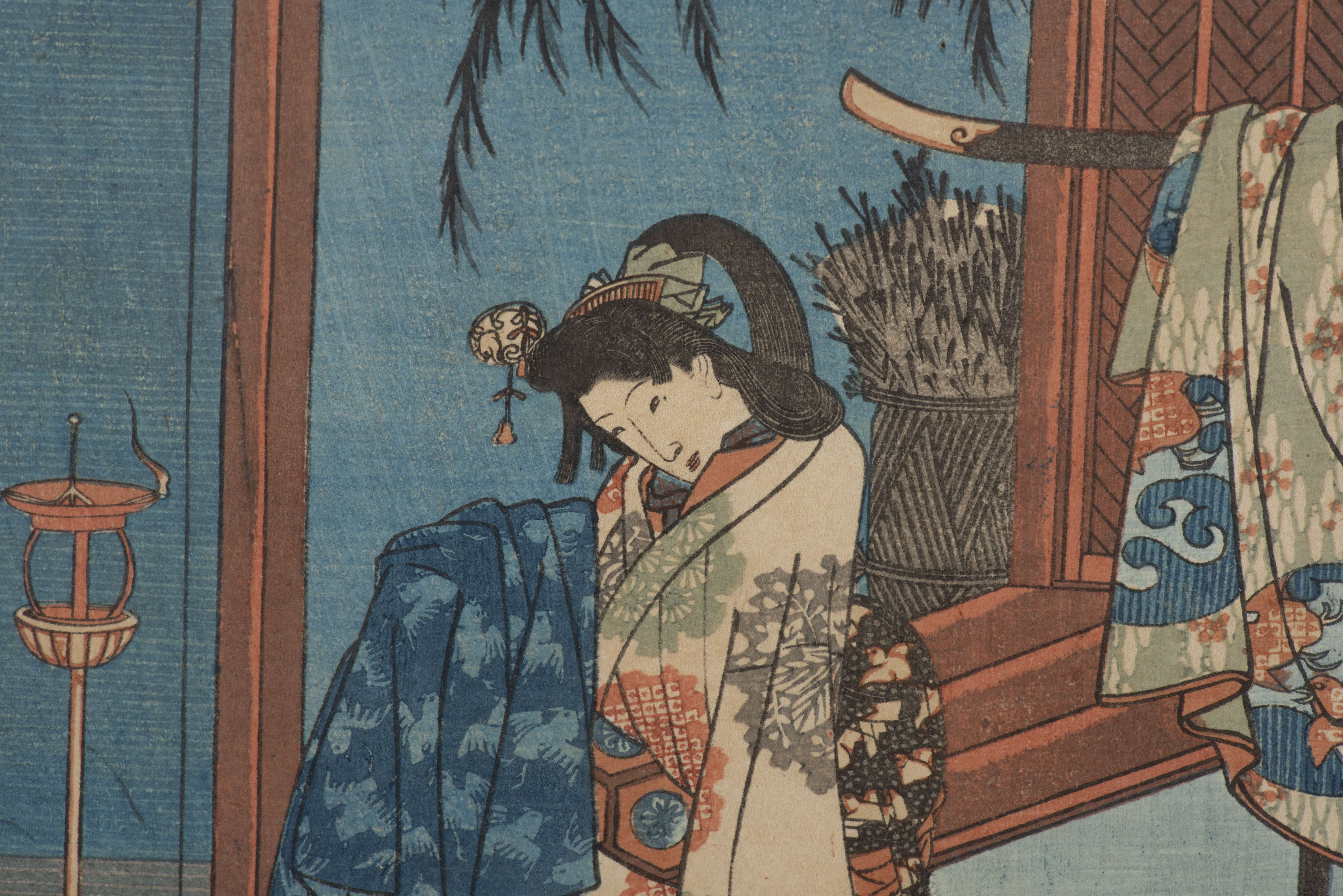 -Hiroshge "La femme attendant son rapace", 33x22.5cm.