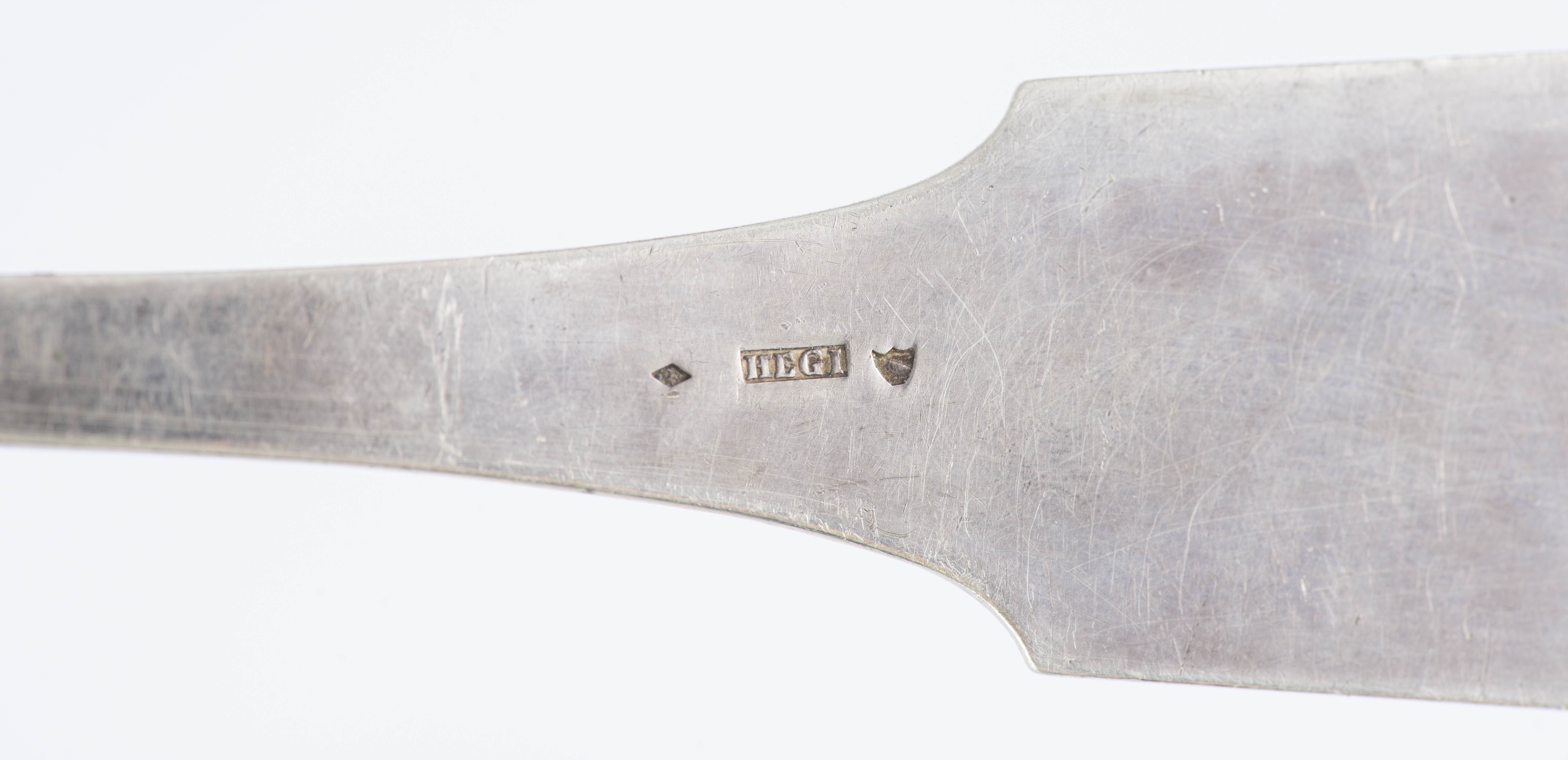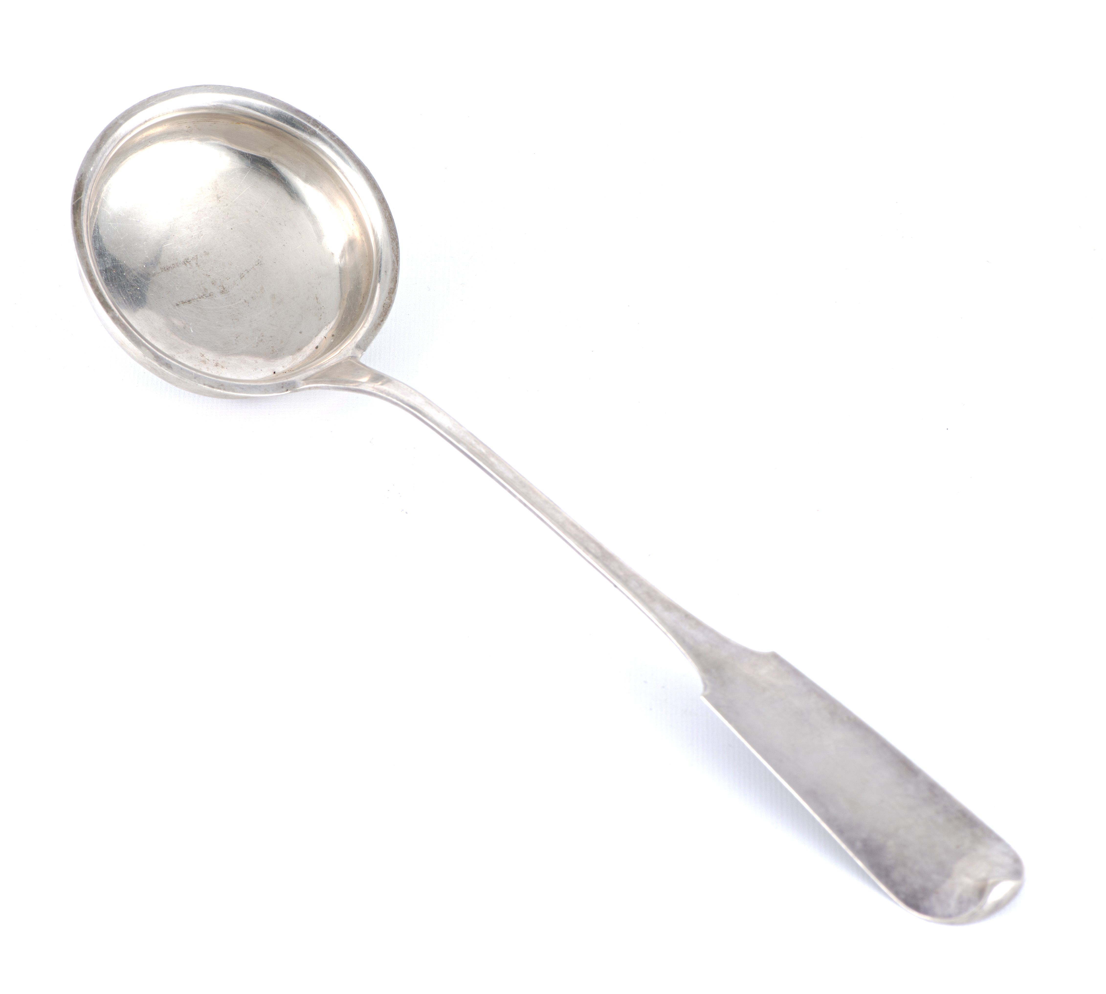Louche en argent .800 Vieux Lausanne par HEGI monogrammé EM.