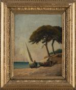 Louis Bonnot (1855-1936) "Paysage du bord de mer en Méditerranée - Côtes de Provence"