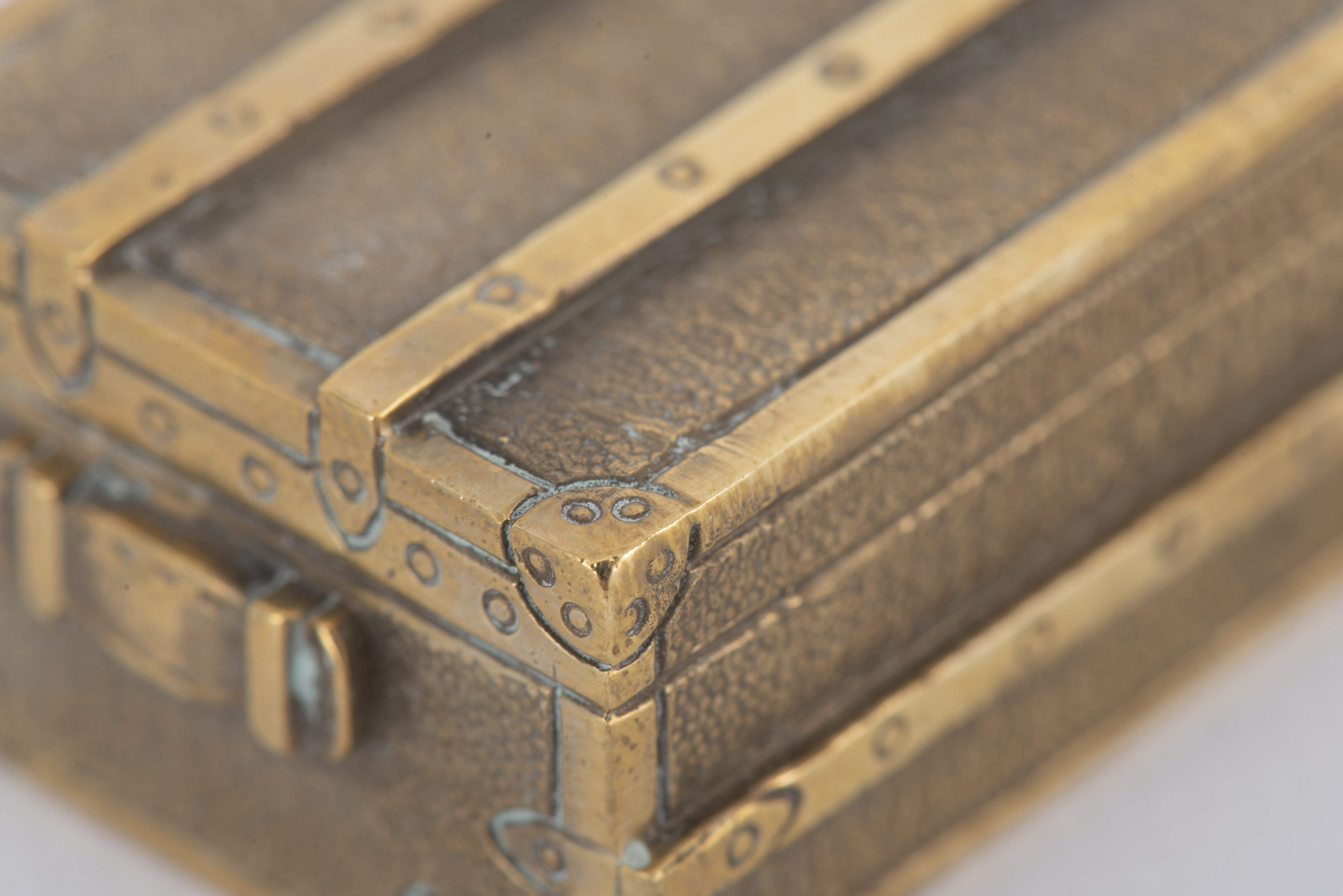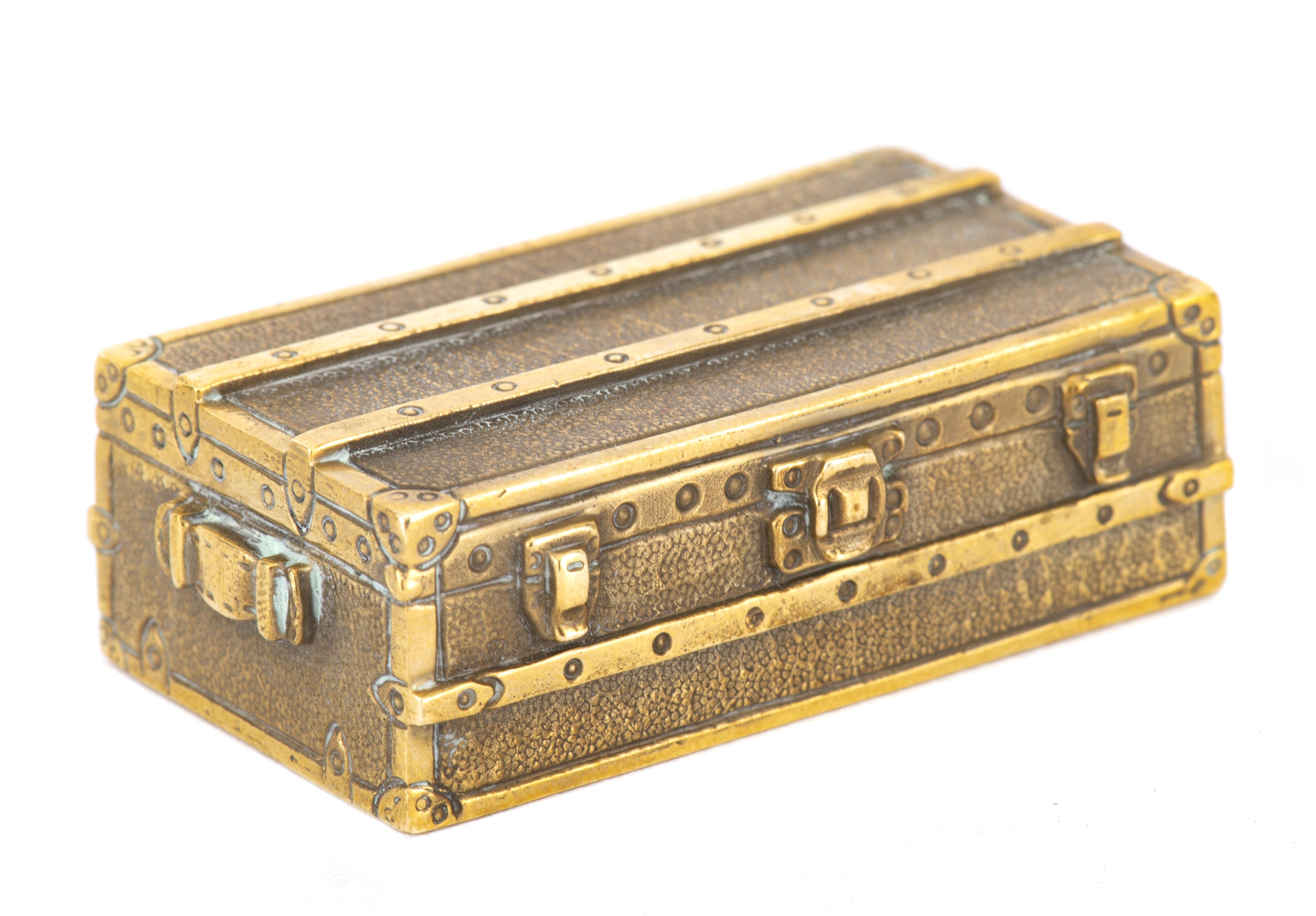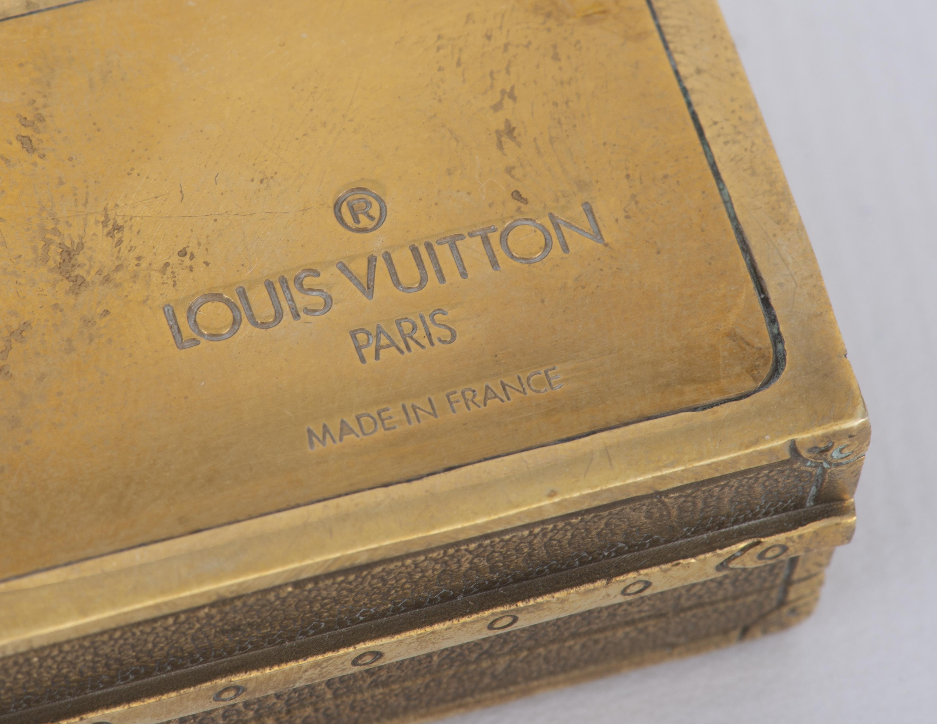 Louis Vuitton Paris, presse-papier rectangulaire en bronze en forme de malle miniature, marque sous la base.