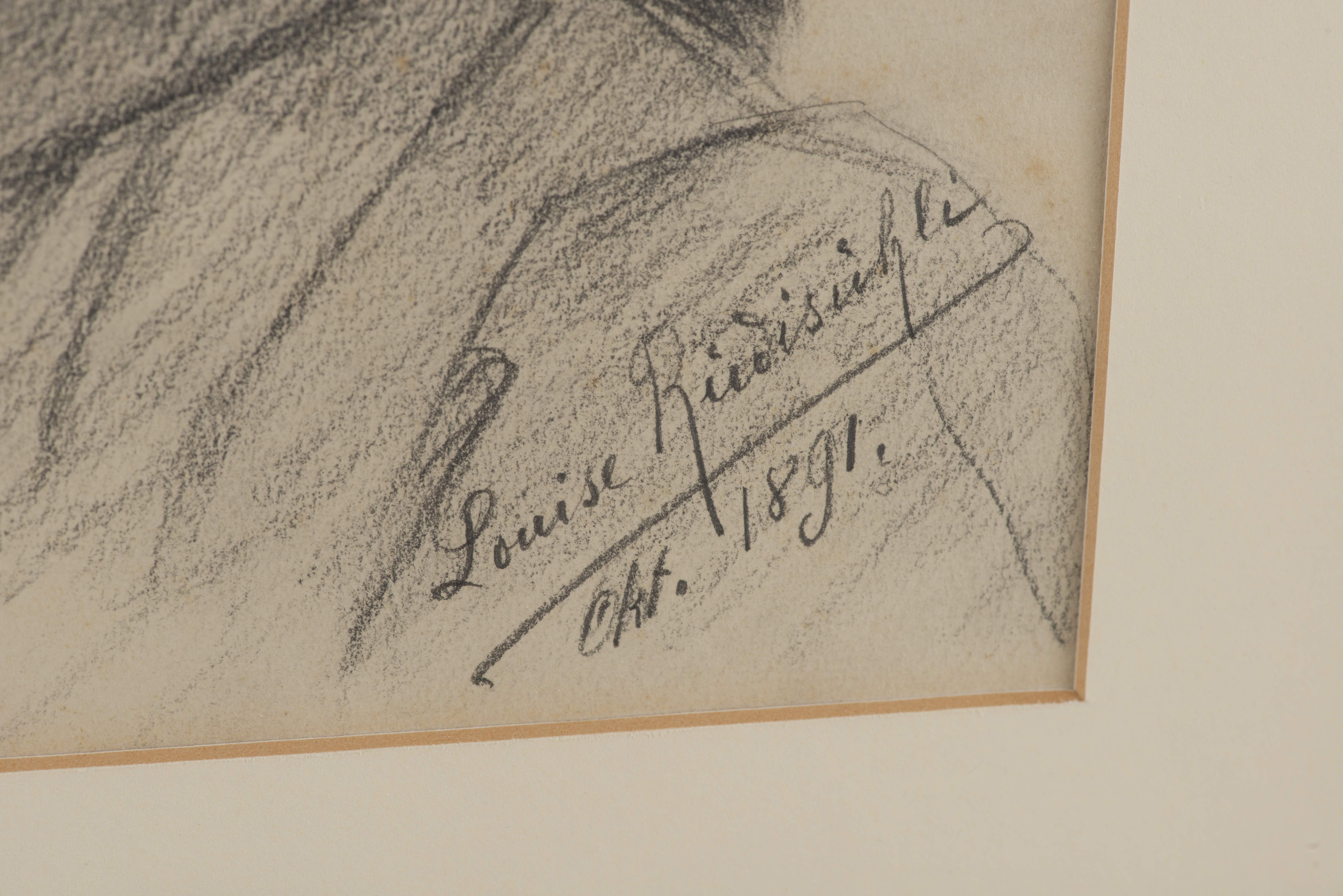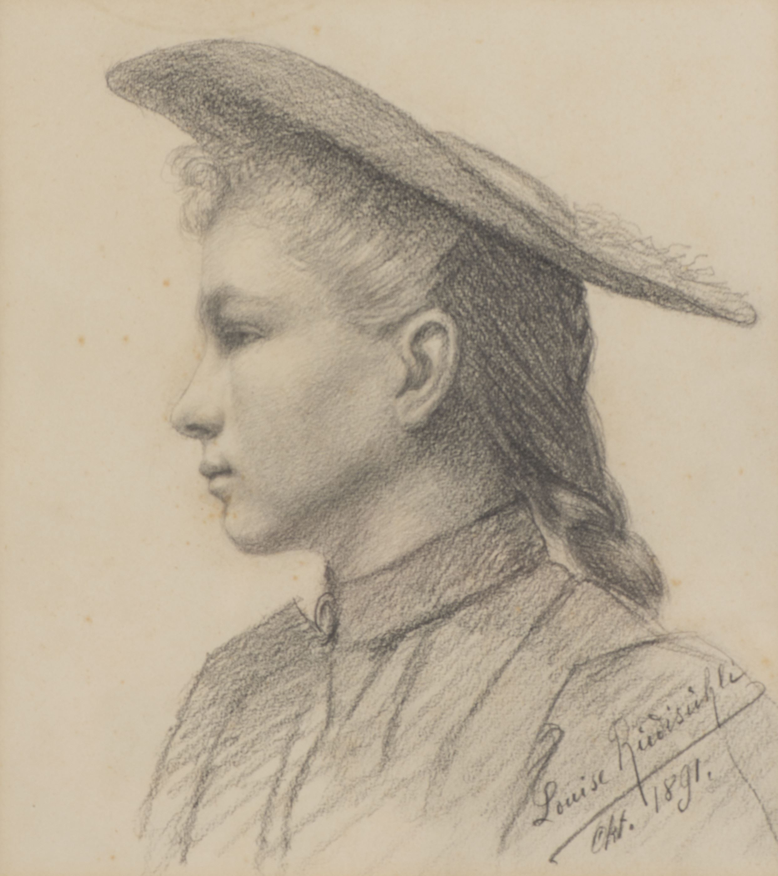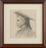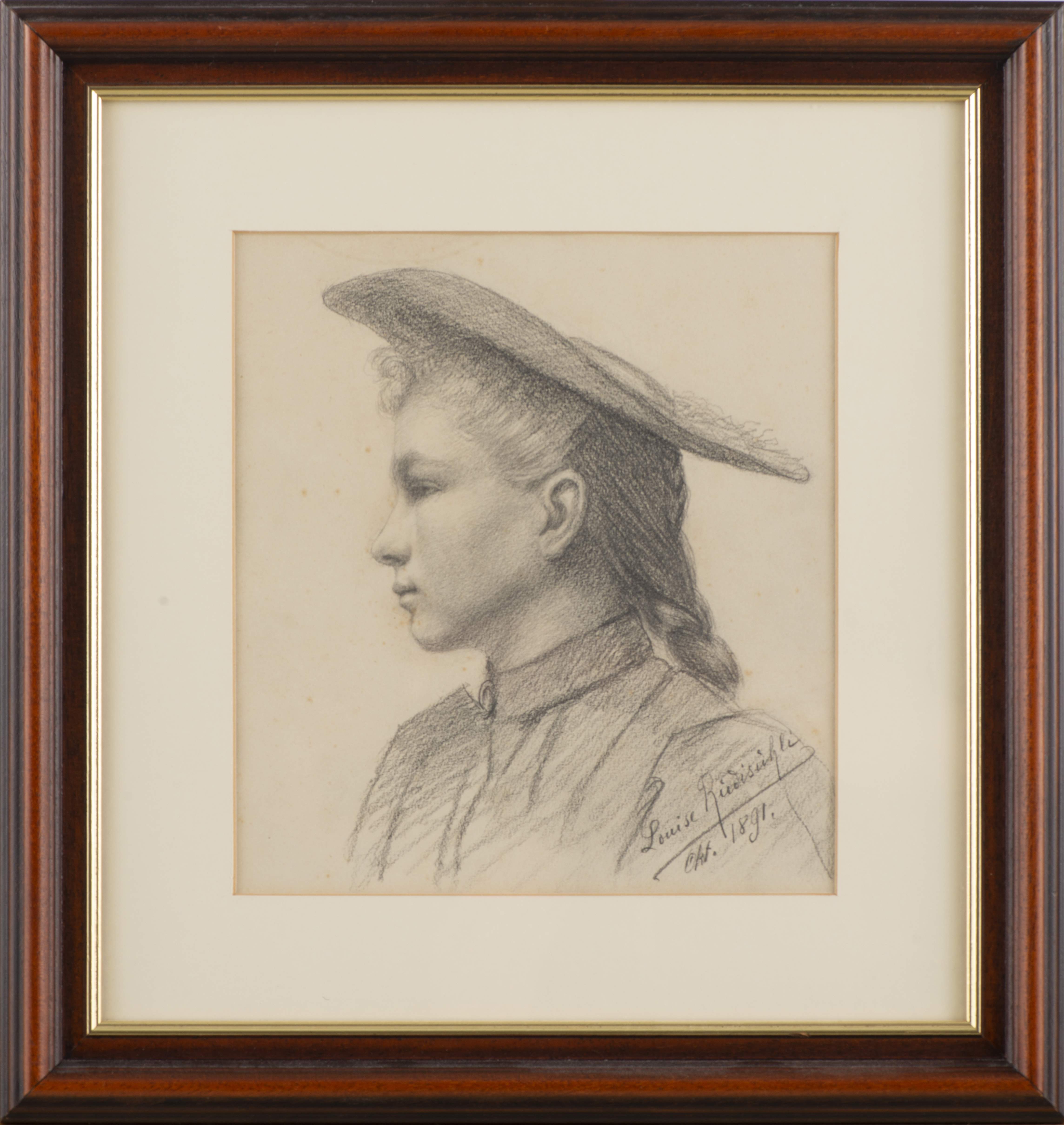 Louise RÜDISÜHLI (1867-1928) "Profil de jeune femme", crayon sur papier, sbd et daté oct. 1891.