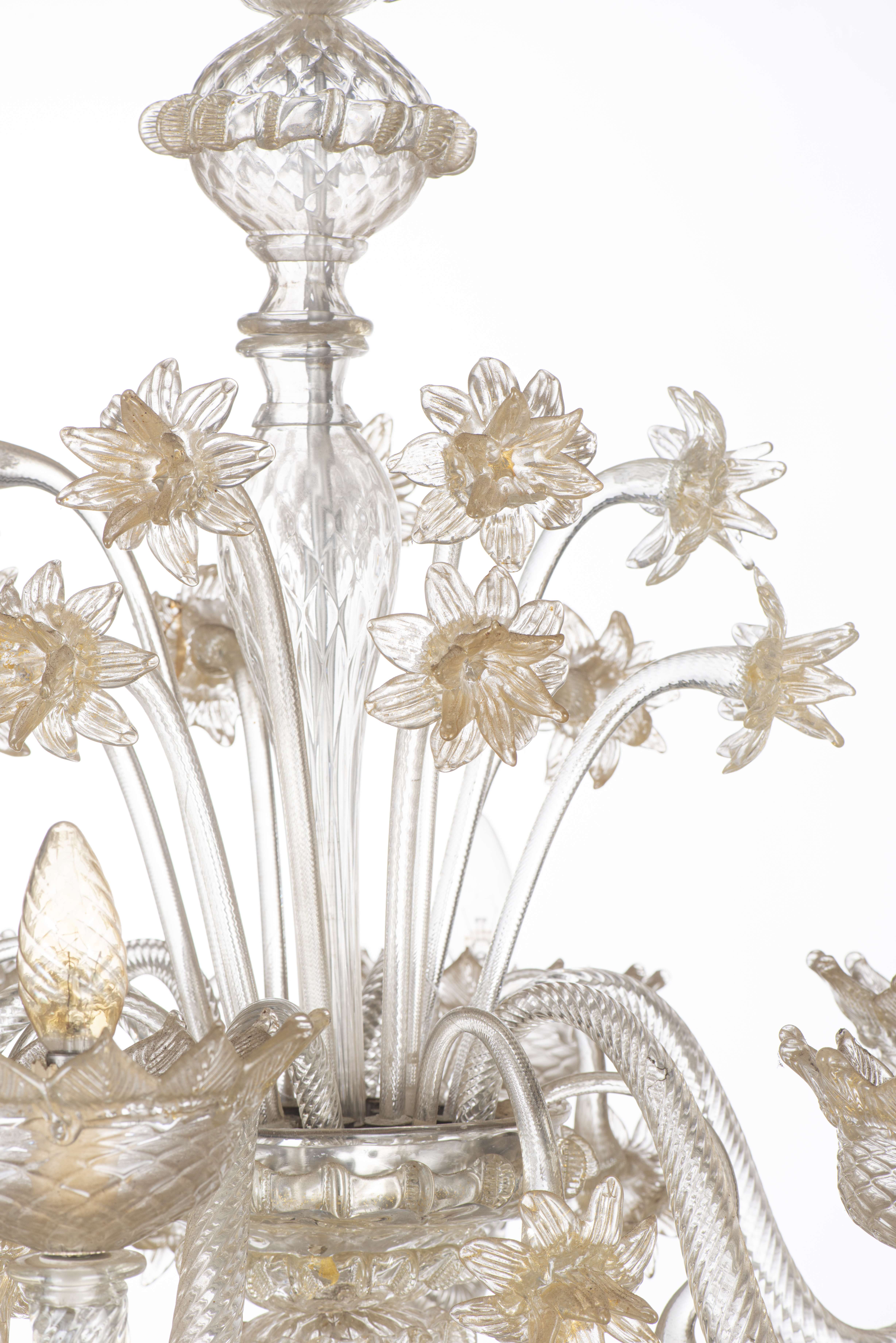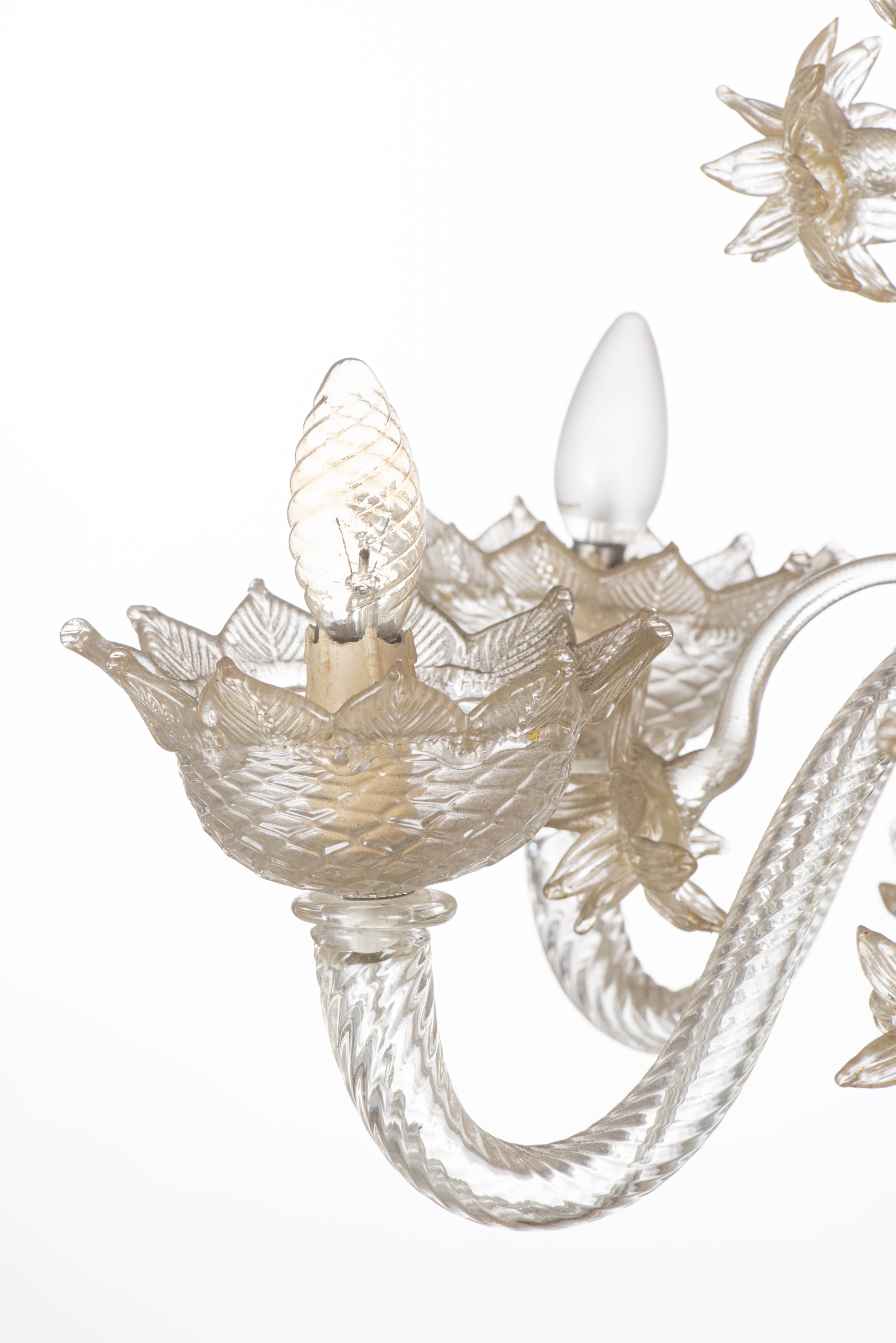 Lustre à 6 feux en verre de Murano par Ercole Barovier pour Barovier & Toso, années 40.