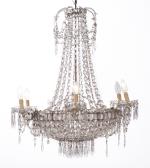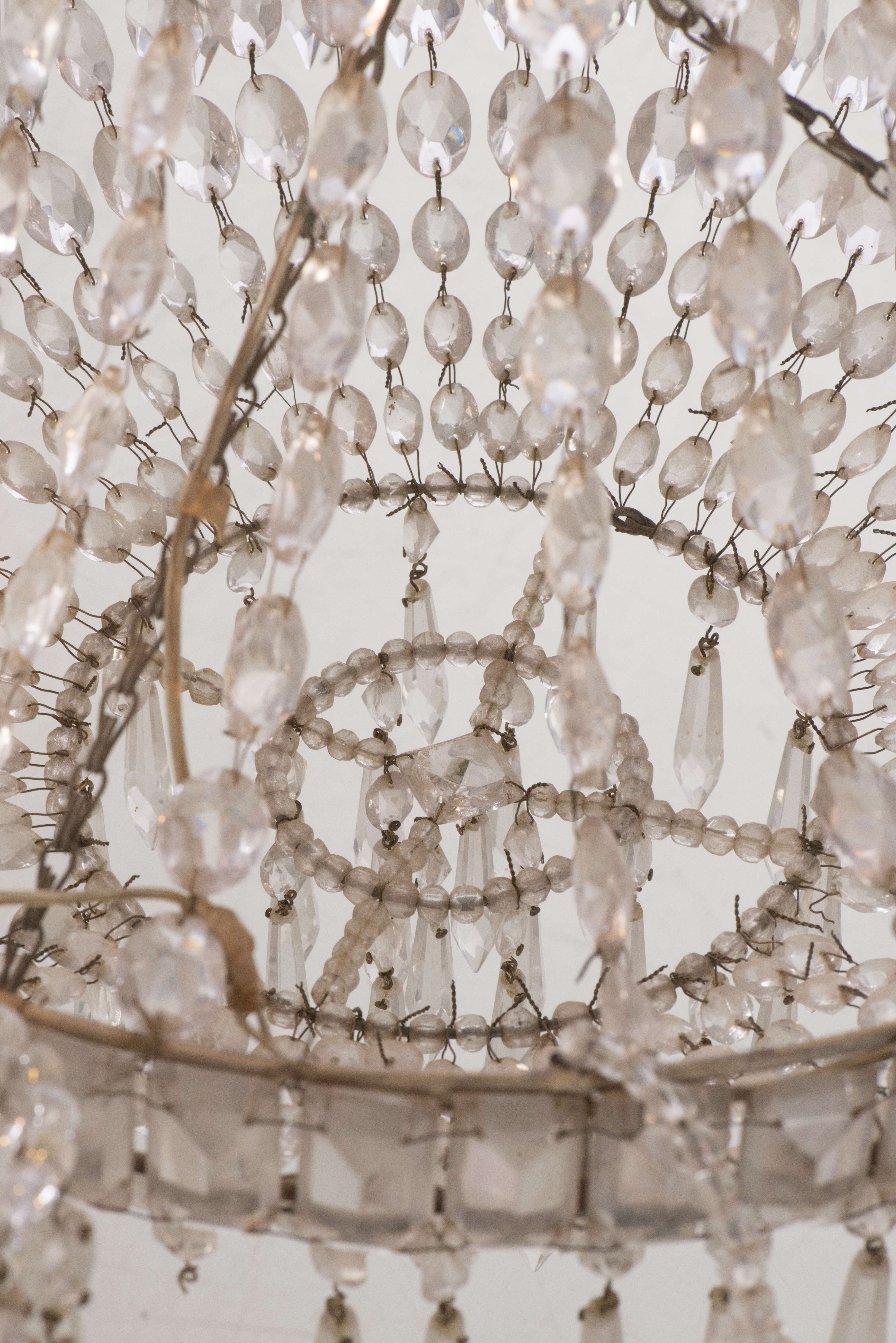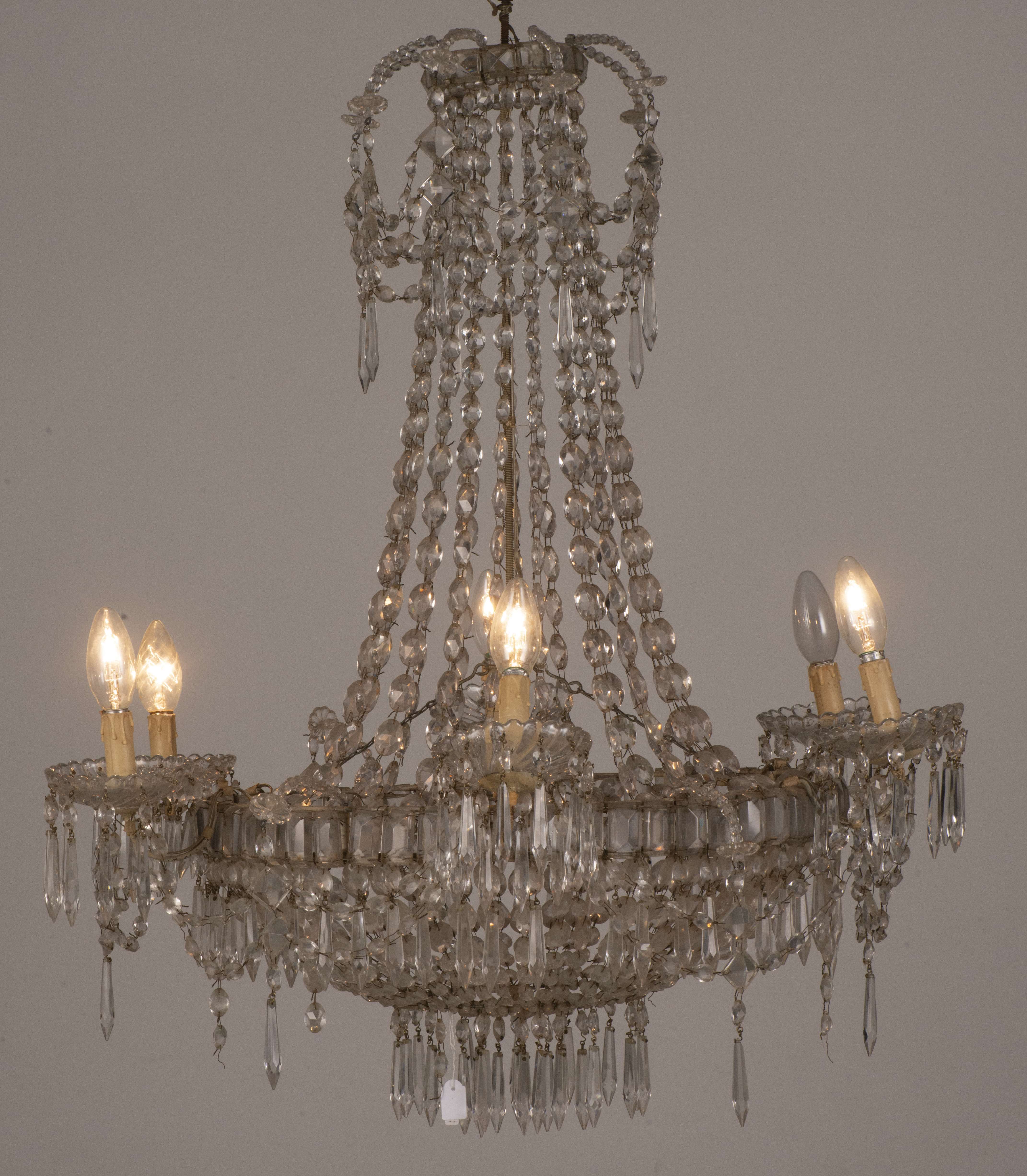Lustre montgolfière en cristal et fer peint à 6 feux. XVIII-XIXe