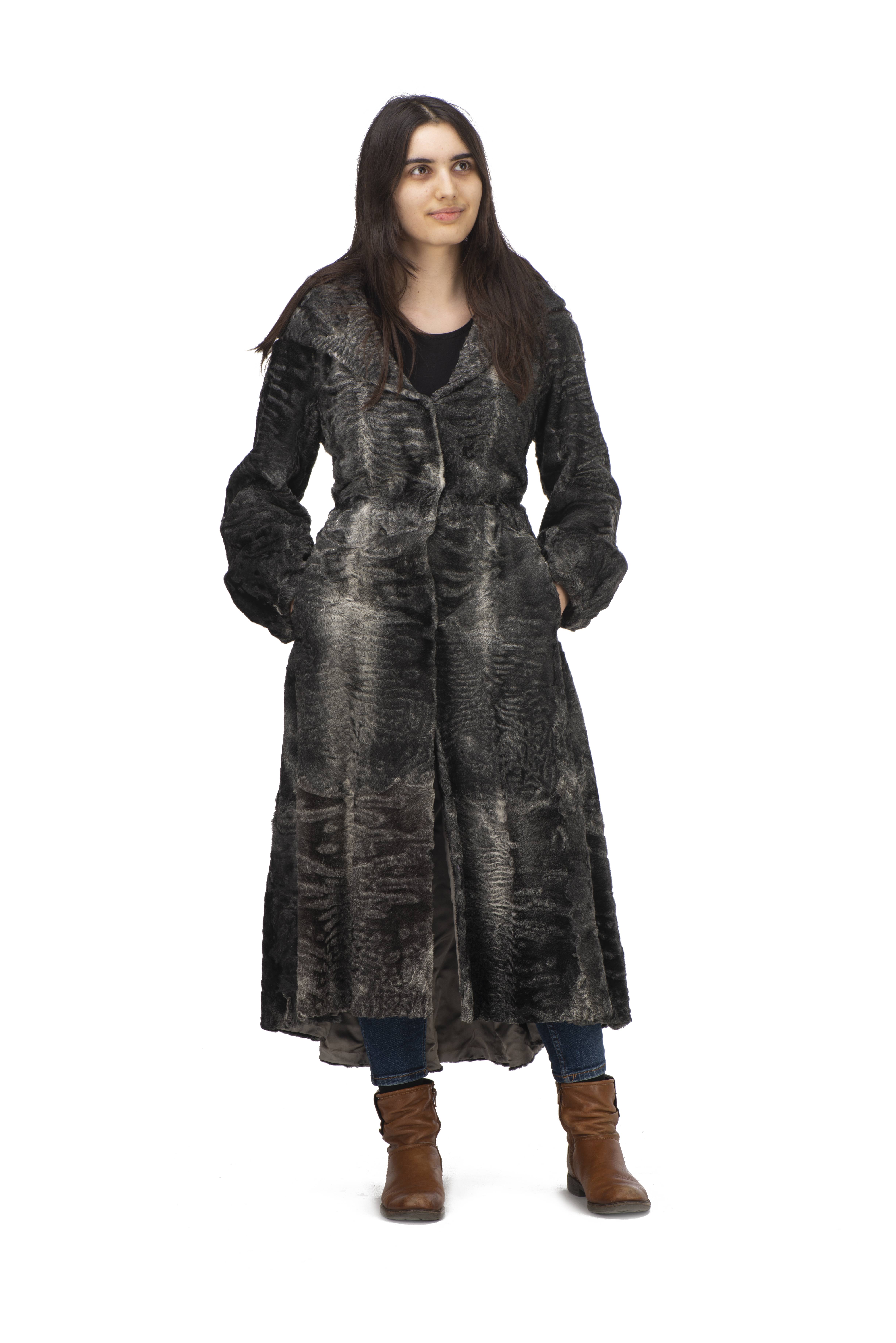 Manteau en astrakan gris "Breitschwanz" modèle M par Wegner design Düsseldorf