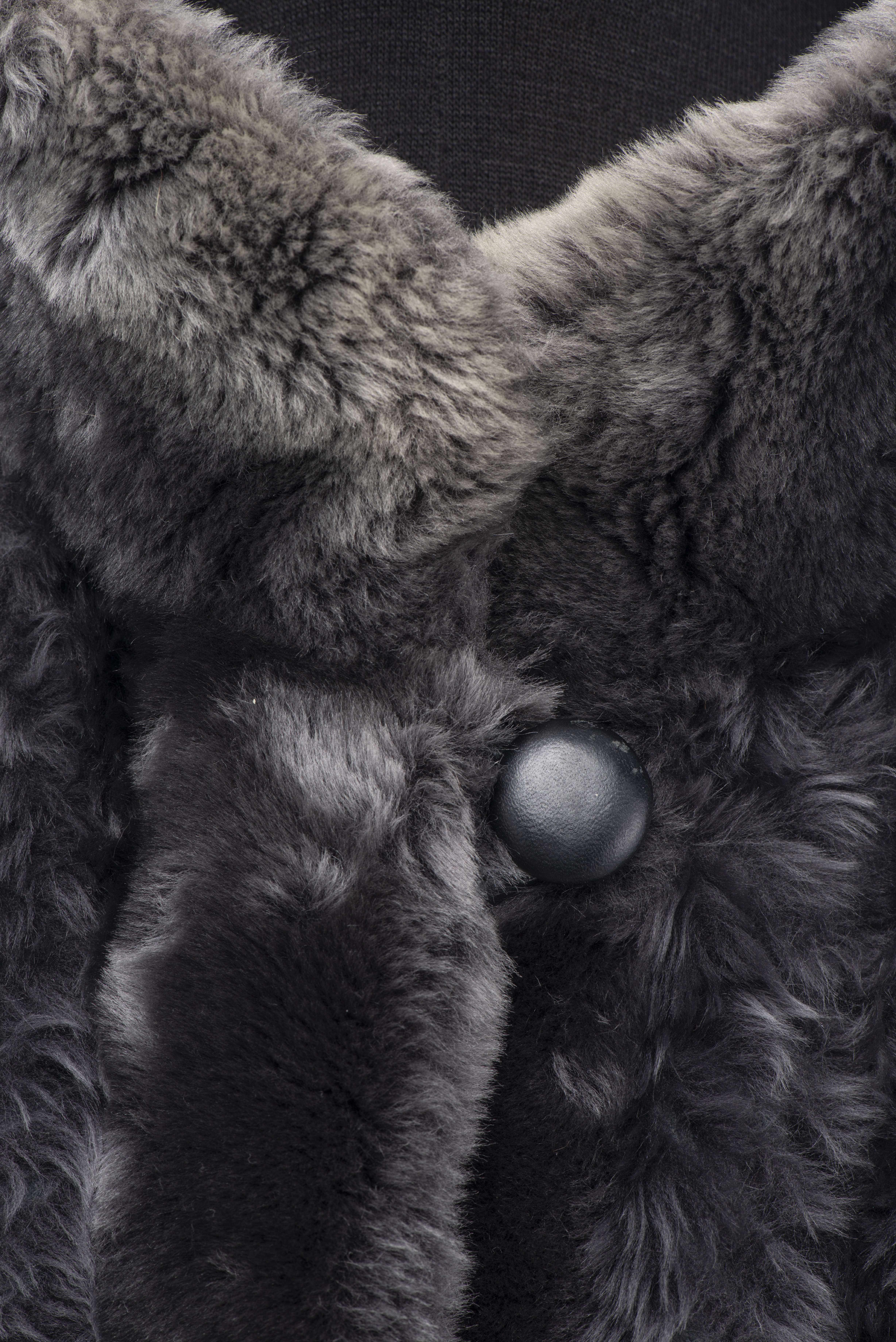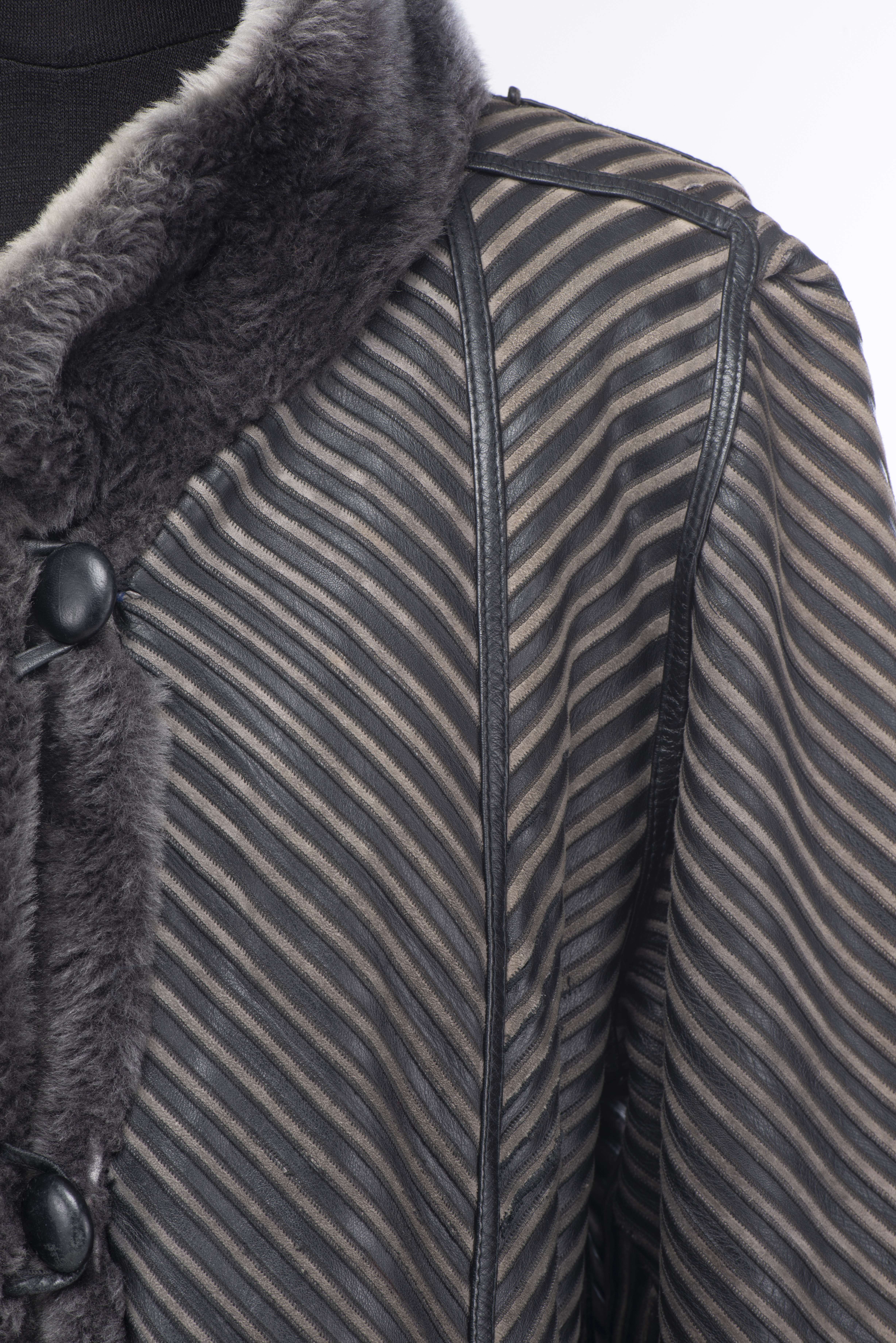 Coté fourrure, légères usures en bas au milieu, aux aisselles et au poignet. Coté cuir, condition optimale.