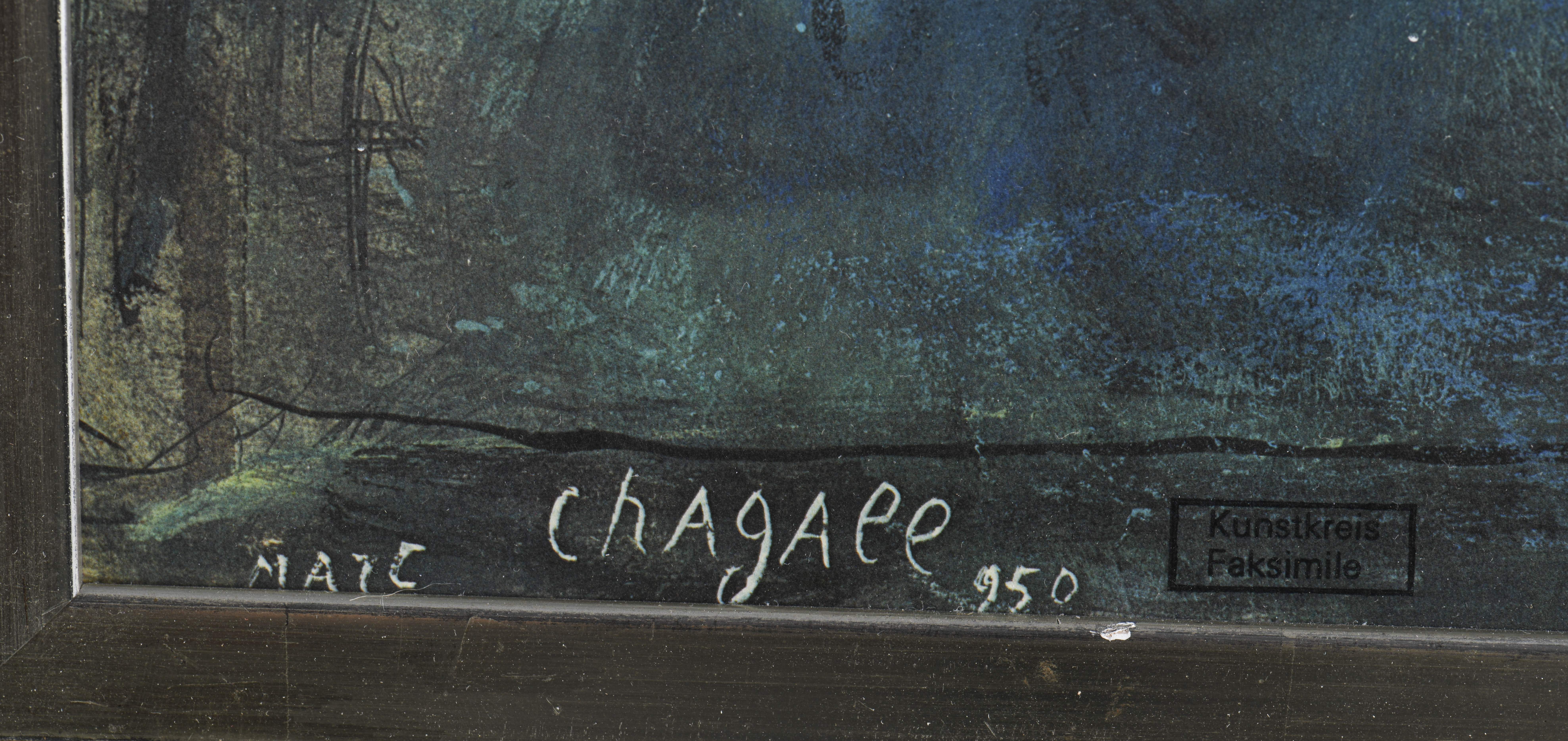 Marc Chagall (1887-1985) "Abend am Fenster", 1950, facsimile d'une gouache tiré à 950 exemplaires par les éditions Kunstkreis Im ex Libris verlag, de 1979, signé et num. 950 et inscrit Kunstkreis Faksimile en noir en bas à gauche.