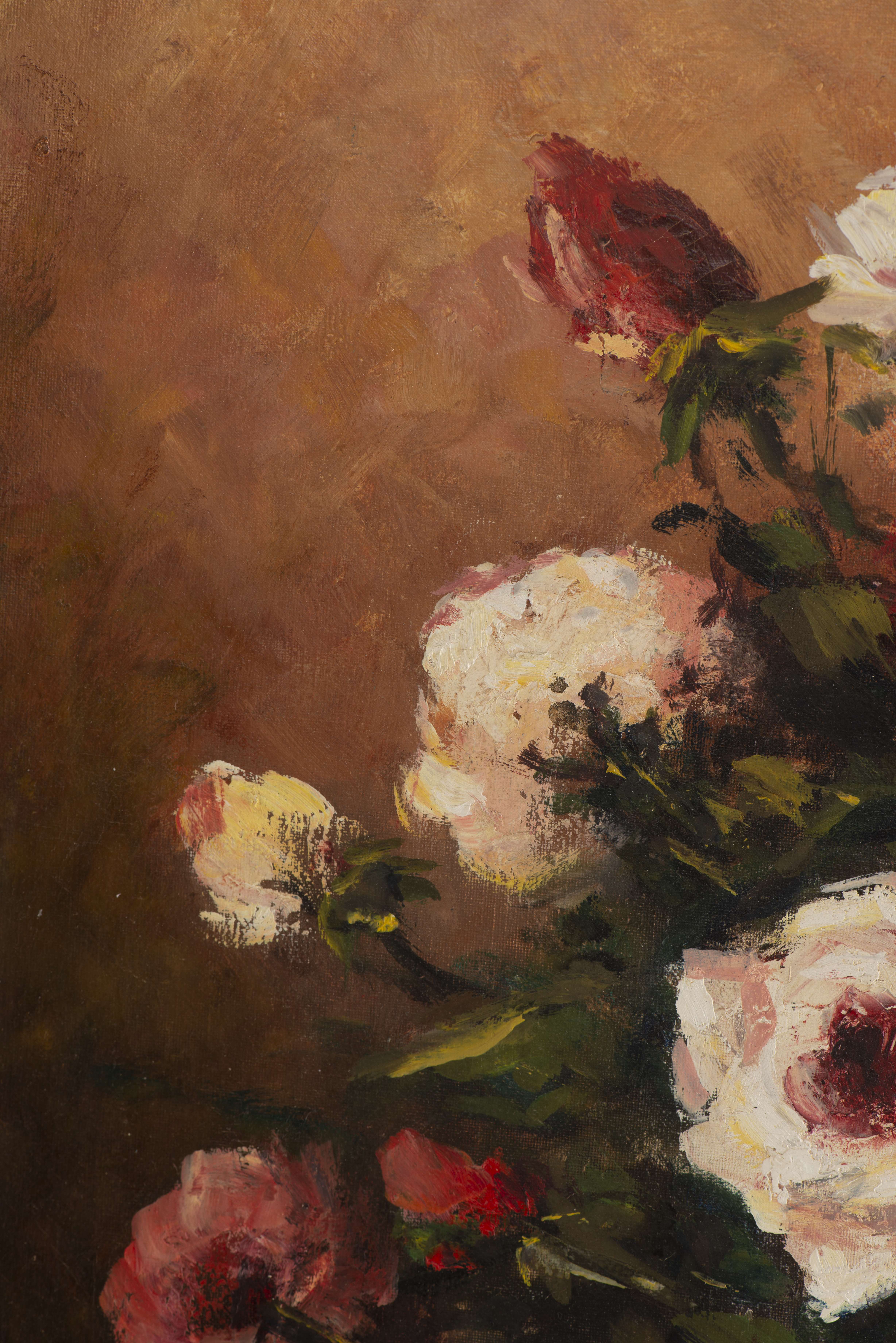 Maurice DU PRÉ (XXe) "Roses", huile sur toile, signé en bas à droite.