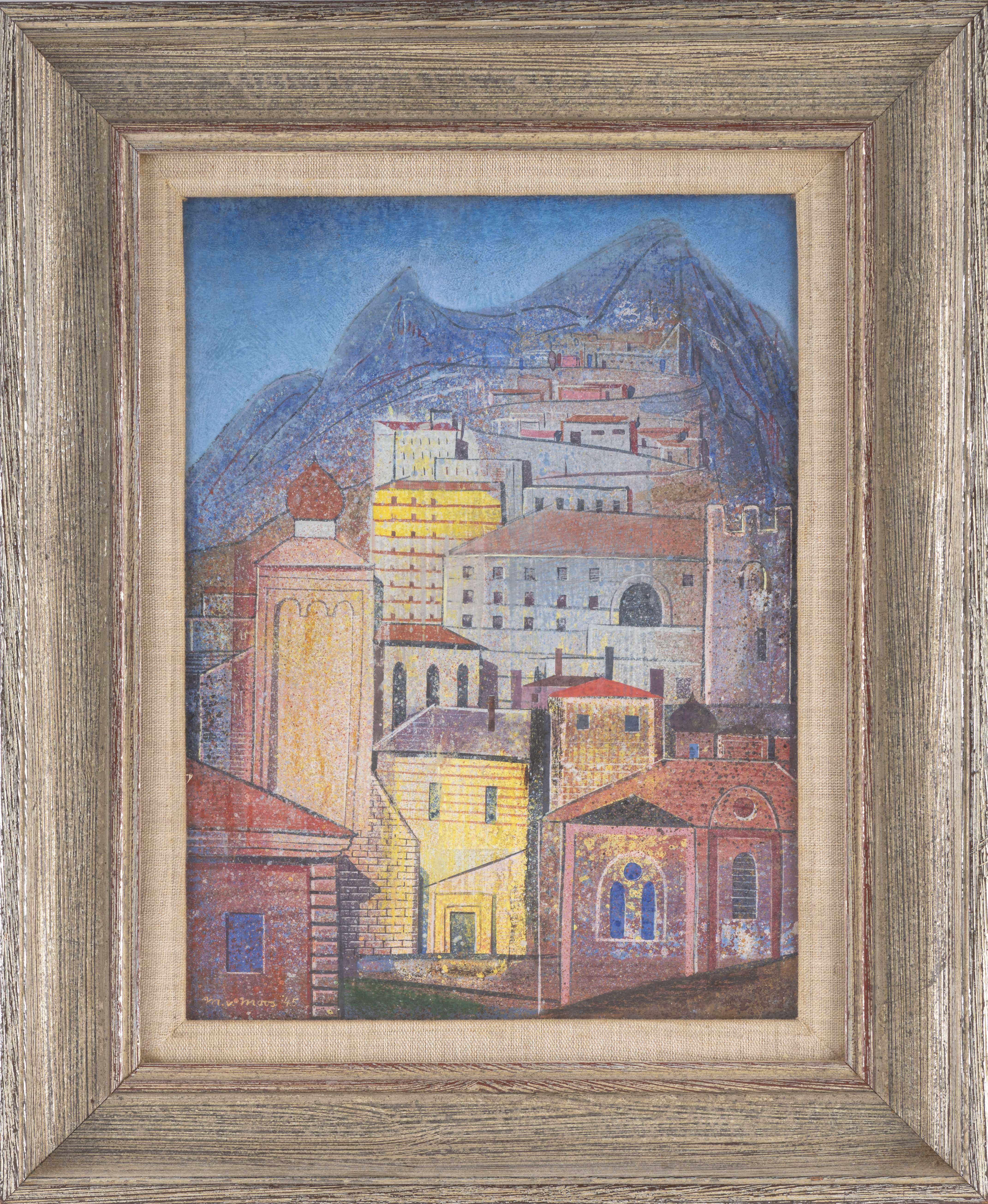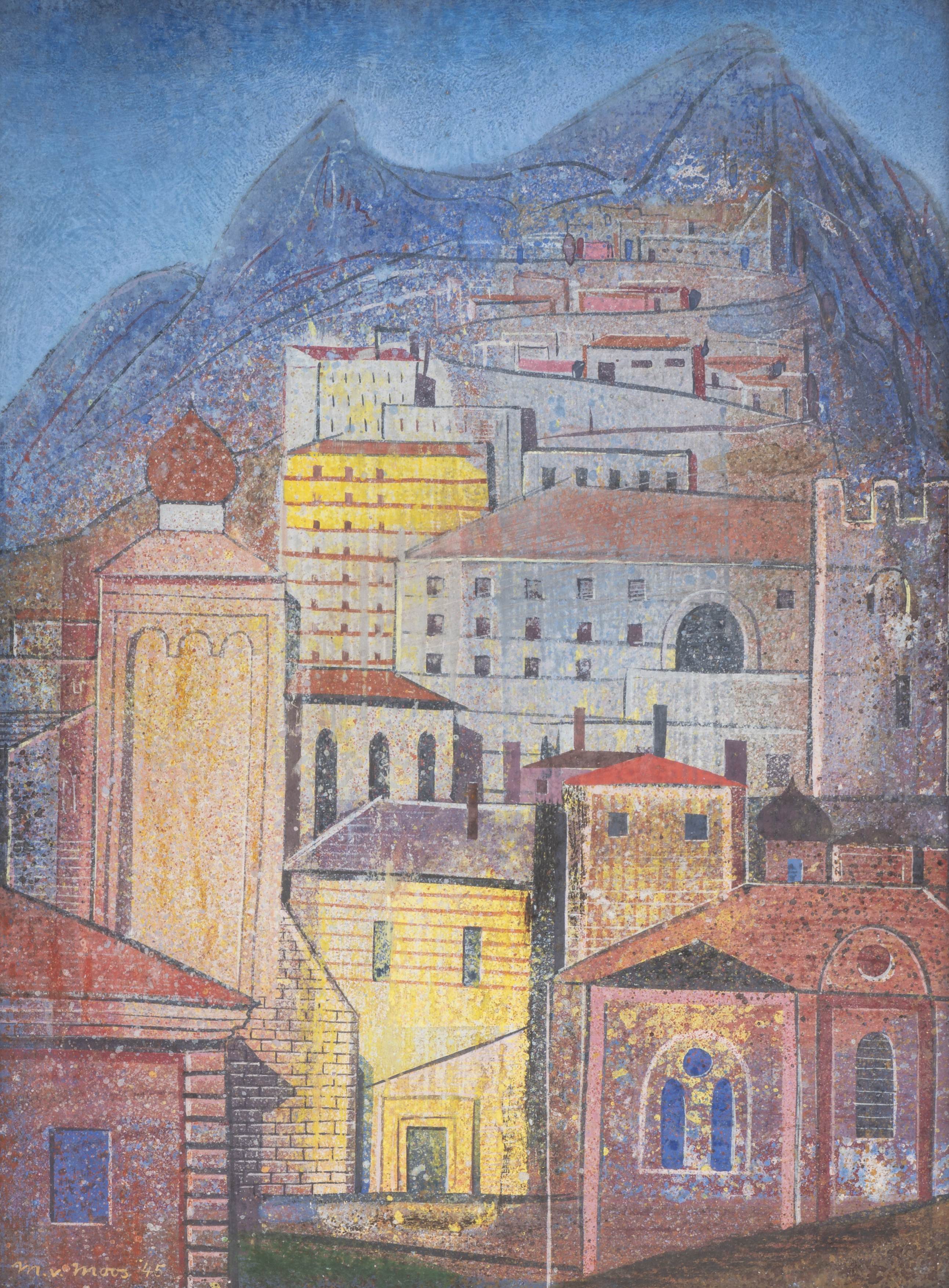 Max von MOOS (1903-1978), Paysage urbain, tempera sur carton, paysage urbain