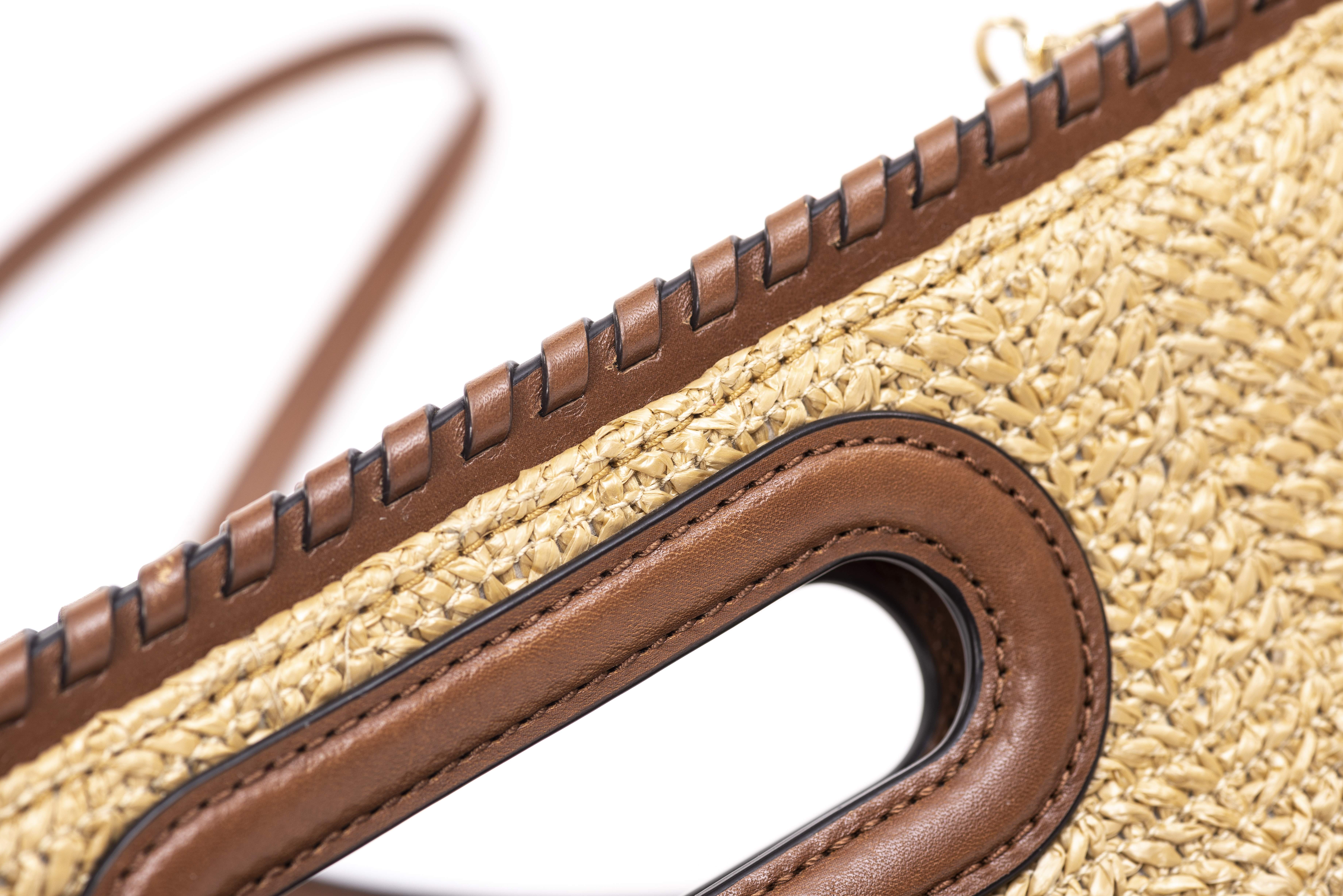 Michael Kors, sac Rosalie en paille tressée et cuir brun